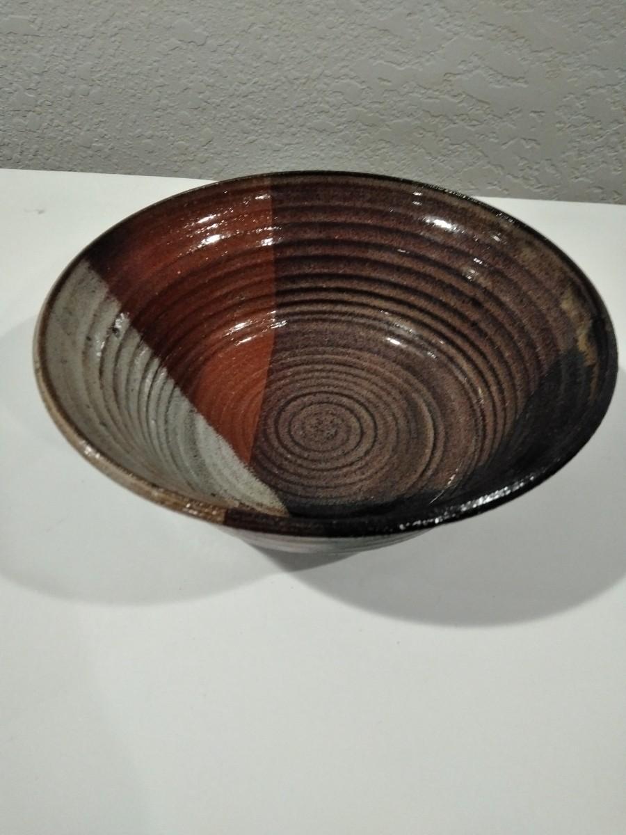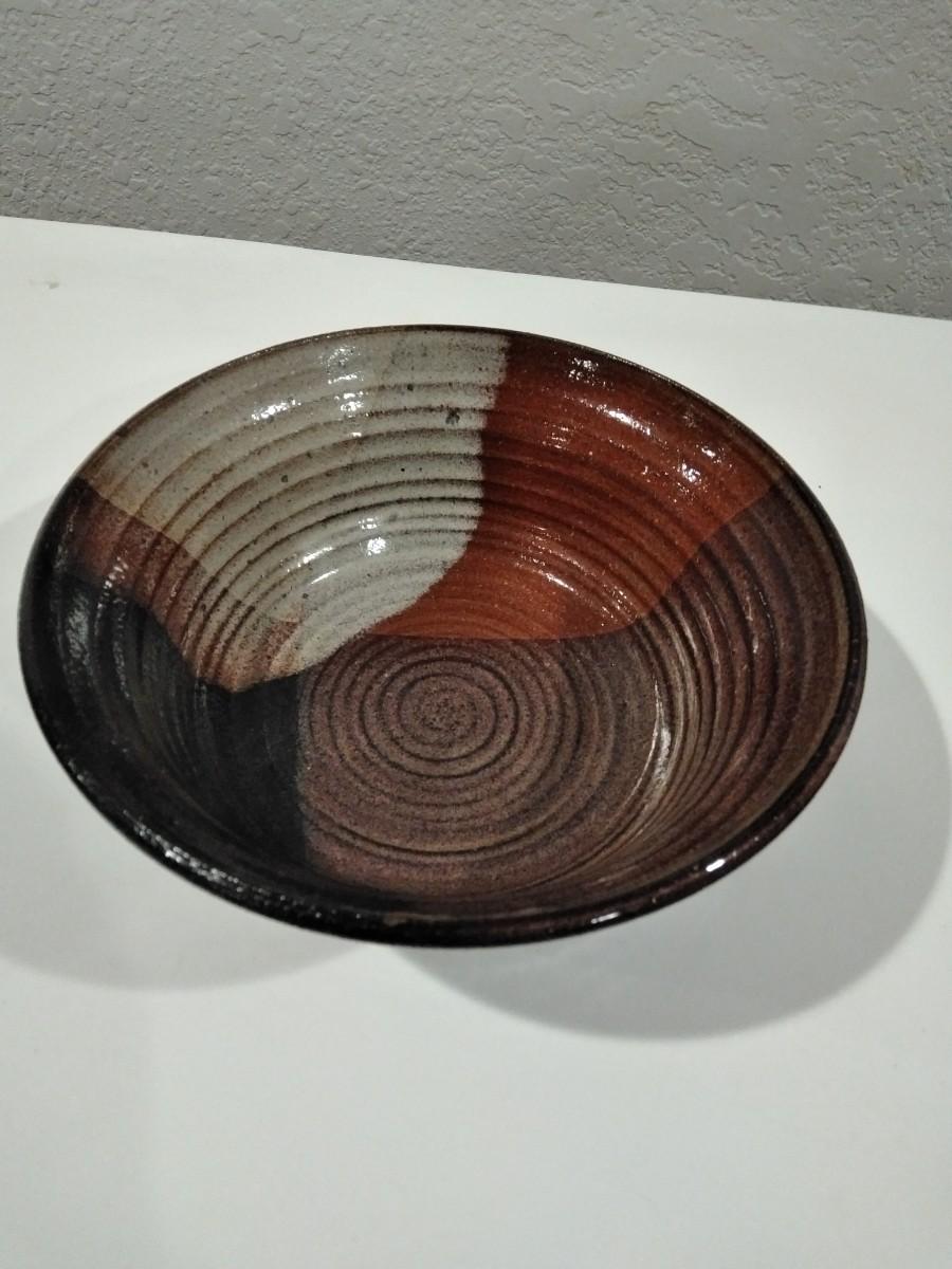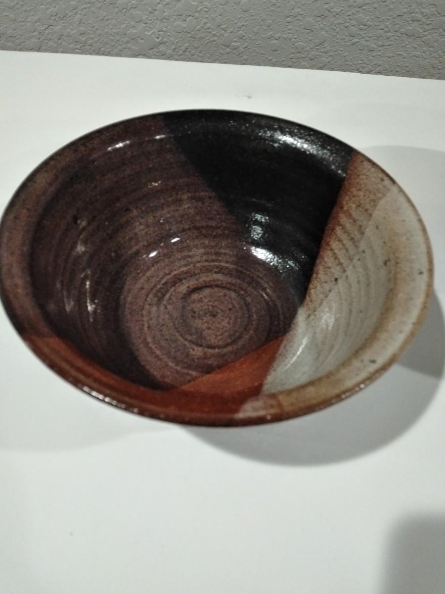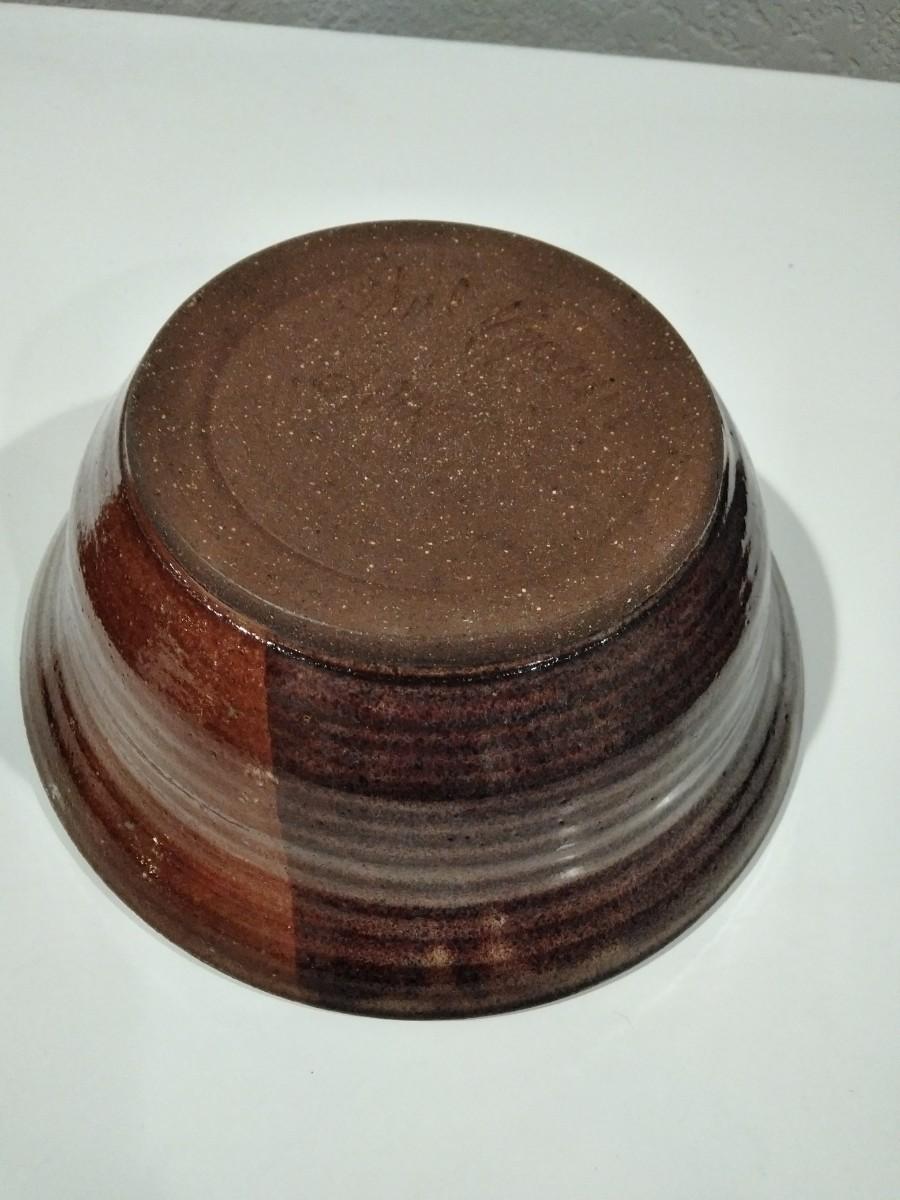 TWO CLAY POTTERY BOWLS, SIGNED BY MAKER ON BASE.