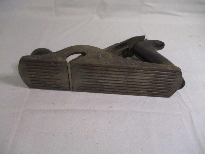 This piece is in very good condition. It is all metal except for the knob at the front and the handle at the back. It is about 9.25" long and 4.75" tall.