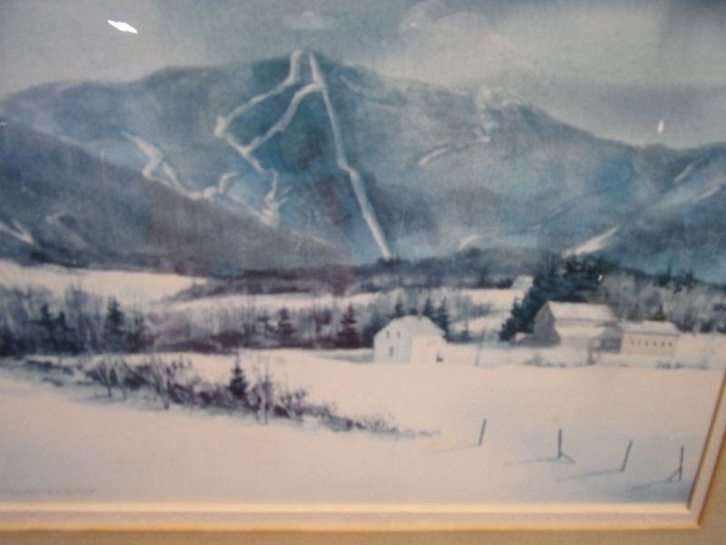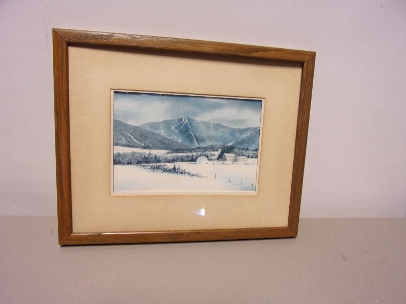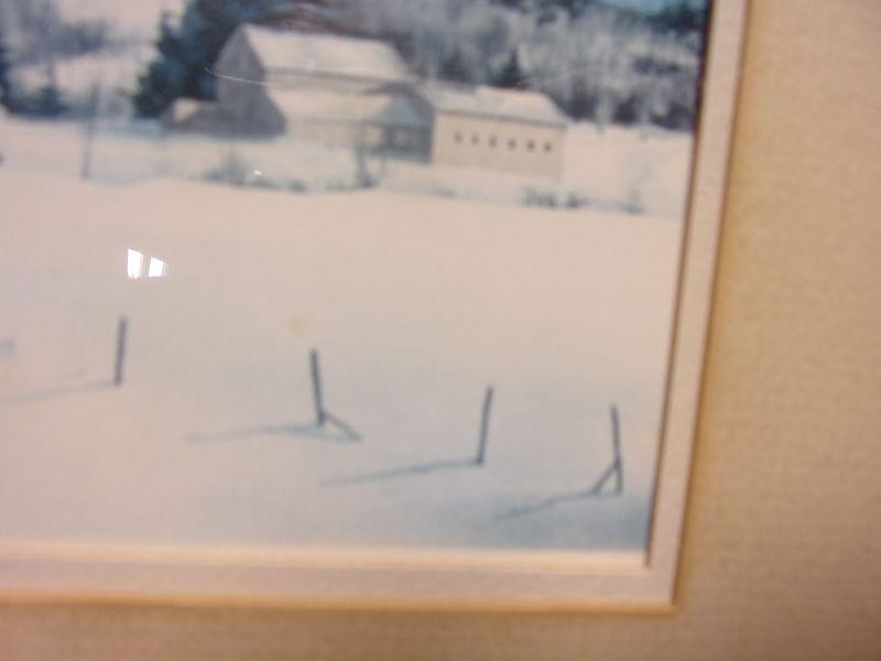 This picture captures a farm home with snow and mountain in the background. Size approx 12" x 15". I did notice 1 spot on the picture. Please review picture for condition