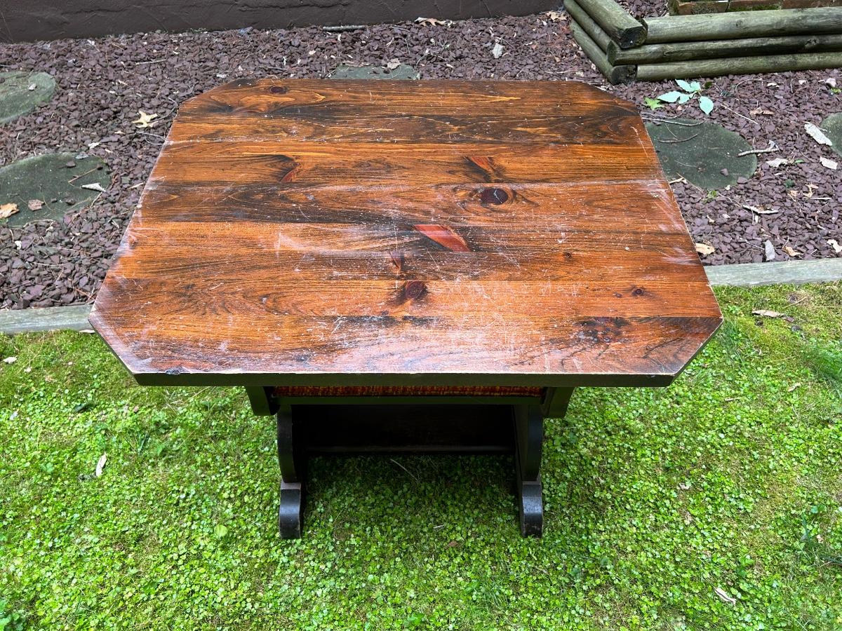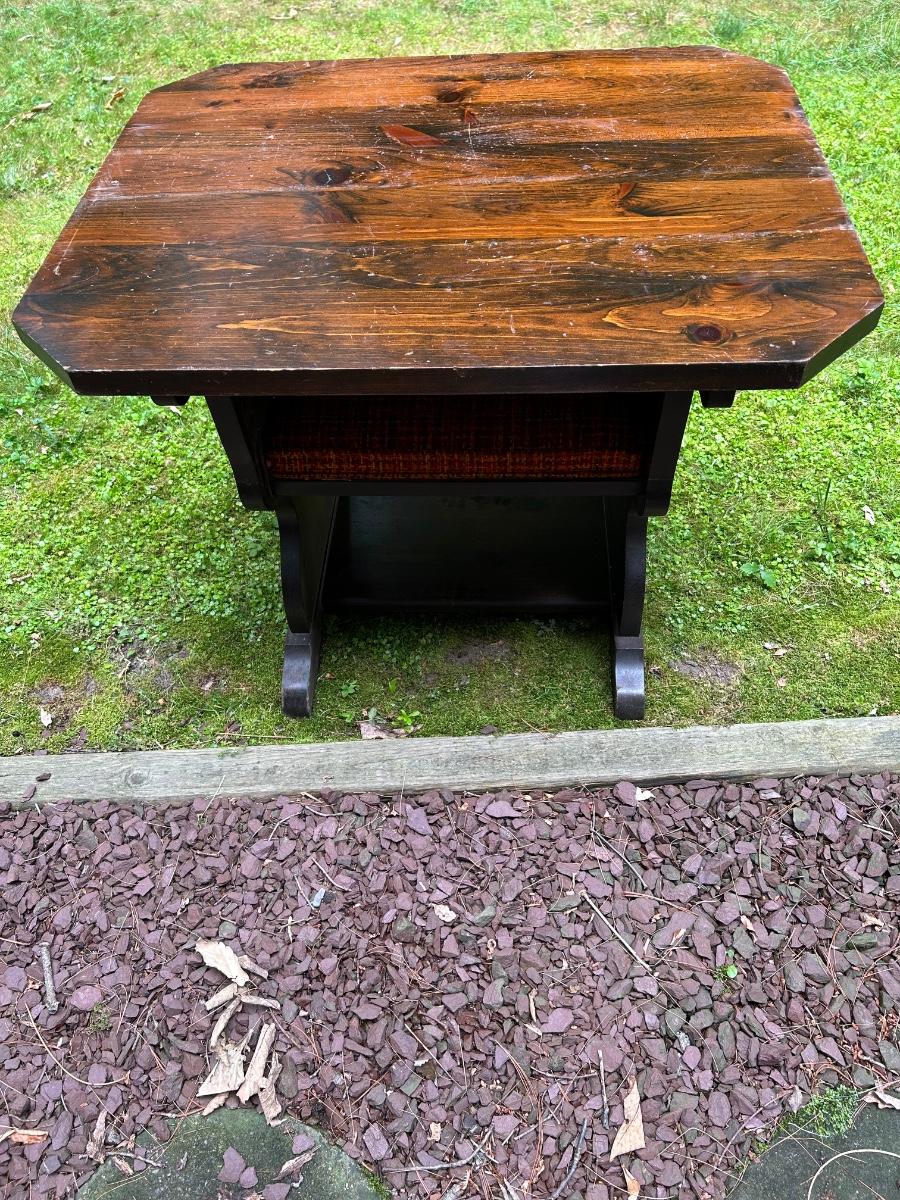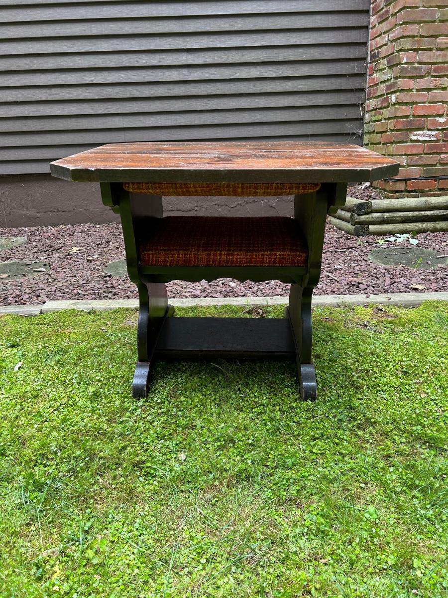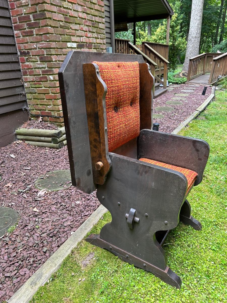 26”x34”x 27” Vintage Chair that turns into a table. Heavy wood frame. Please see all pictures as they are the best representation of the items. The pictures show condition, measurements if taken, and what is included in the lot. Due to the large amount that we photograph and the time frame, we are not always able to take measurements. All items unless noted, are pre-owned and have been used. If you purchased furniture, you must bring help. We do not allow one person to carry large furniture out on their own. Bring help, tools and a truck for the safety of our client’s homes, and your personal safety. Any damages that result to the property including walls, and floors due to moving of the furniture will be charged to the buyer. Company policy. Thank you.`q