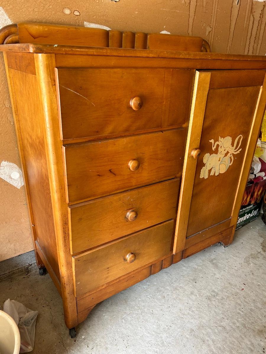 LOT 34: Vintage Wood Baby’s Changing Table & Mobile