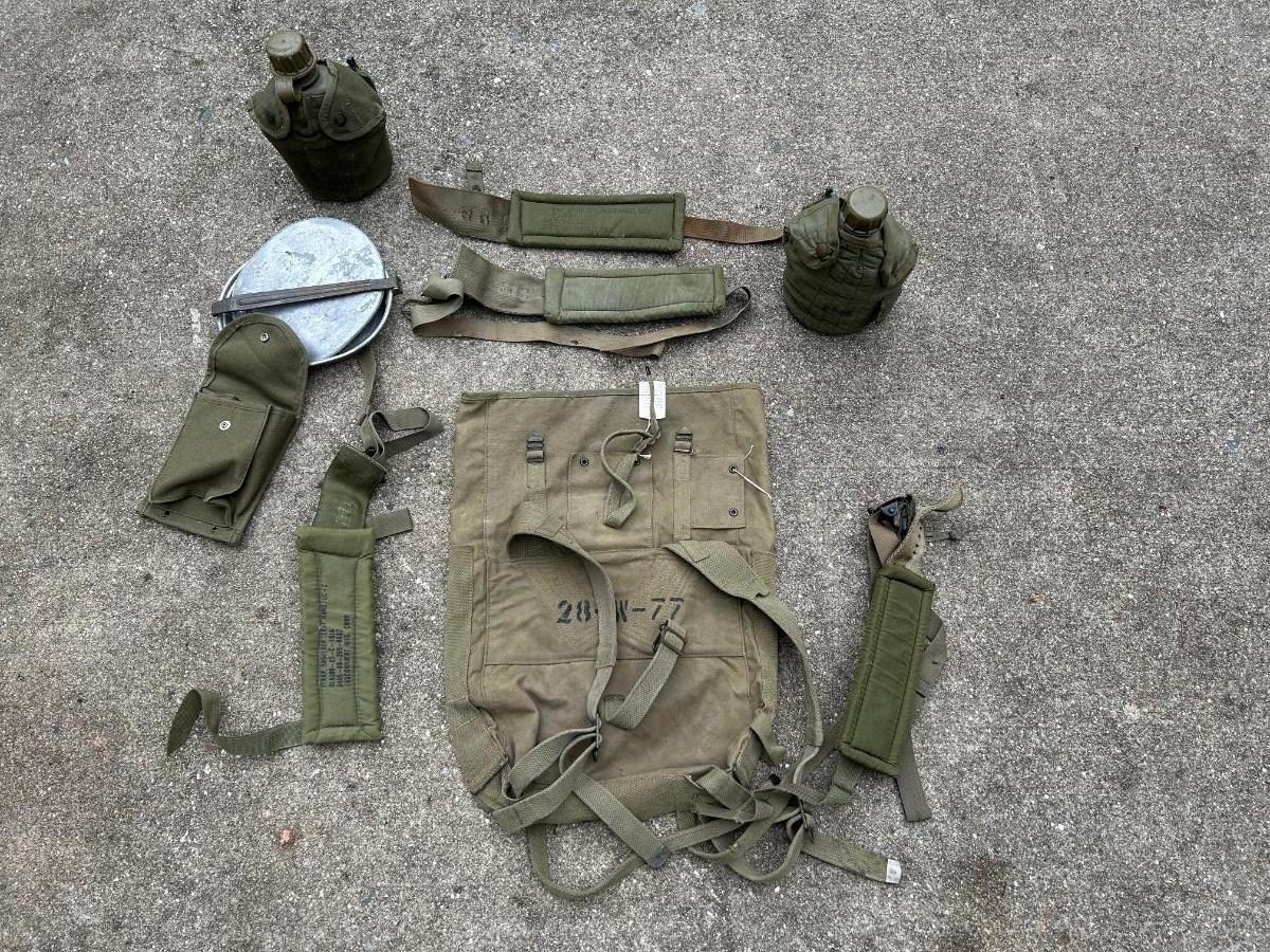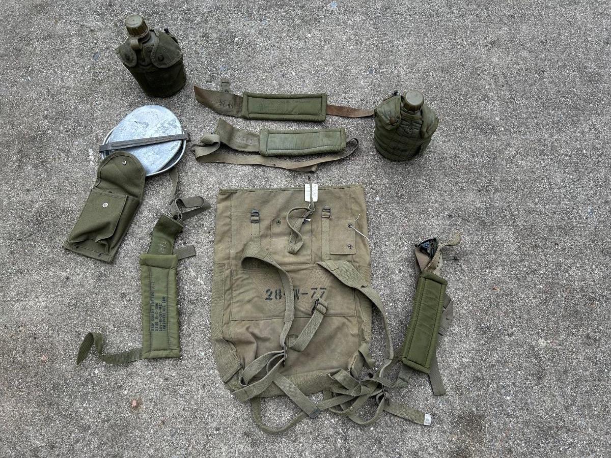LOT 36: US Military Water Sterilizing Canvas Lister (Lyster) Bag, Canteens/Gear & More