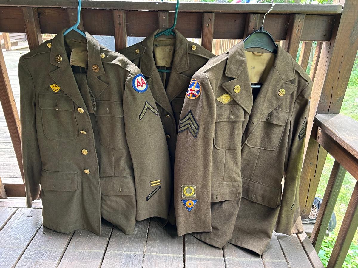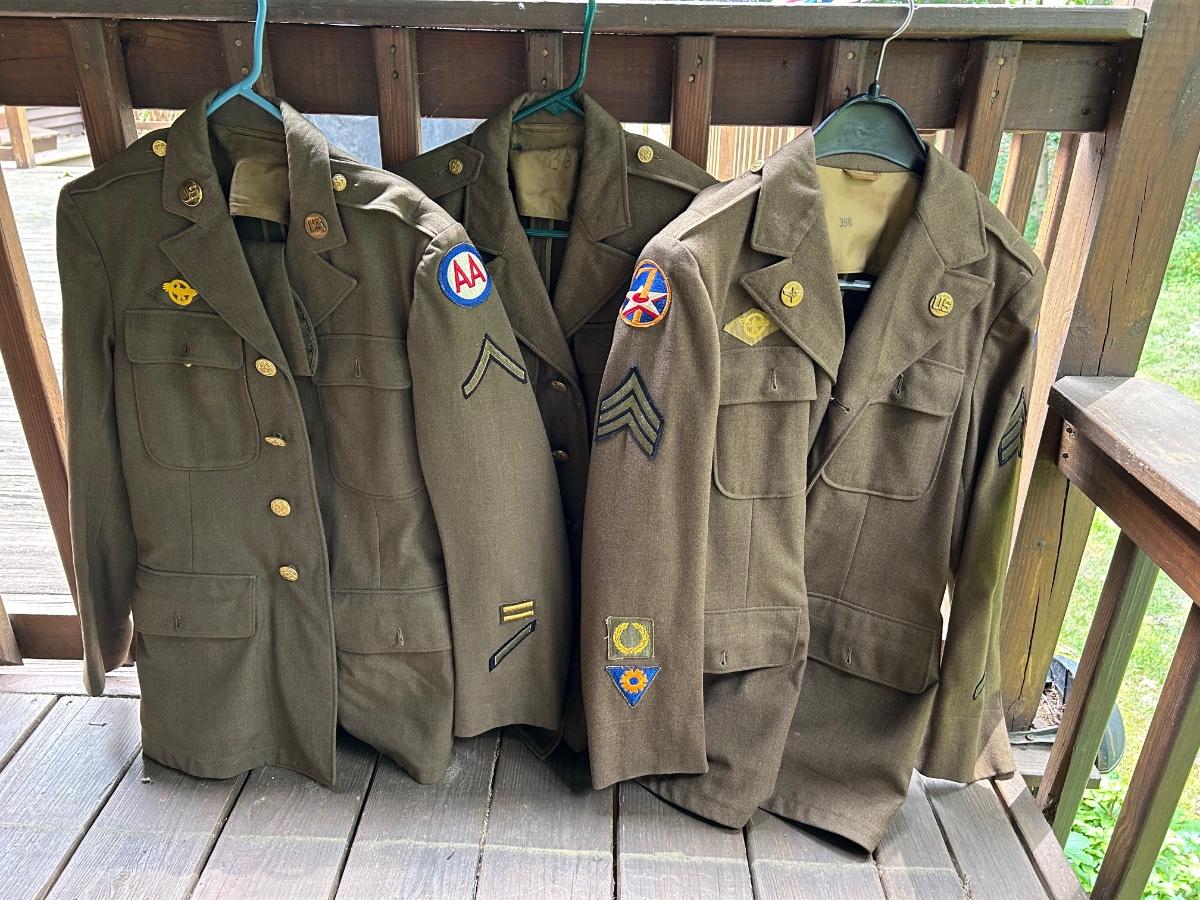 Three Military Jackets. Please see all pictures as they are the best representation of the items. The pictures show condition, measurements if taken, and what is included in the lot. Due to the large amount that we photograph and the time frame, we are not always able to take measurements. All items unless noted, are pre-owned and have been used. If you purchased furniture, you must bring help. We do not allow one person to carry large furniture out on their own. Bring help, tools and a truck for the safety of our client’s homes, and your personal safety. Any damages that result to the property including walls, and floors due to moving of the furniture will be charged to the buyer. Company policy. Thank you.