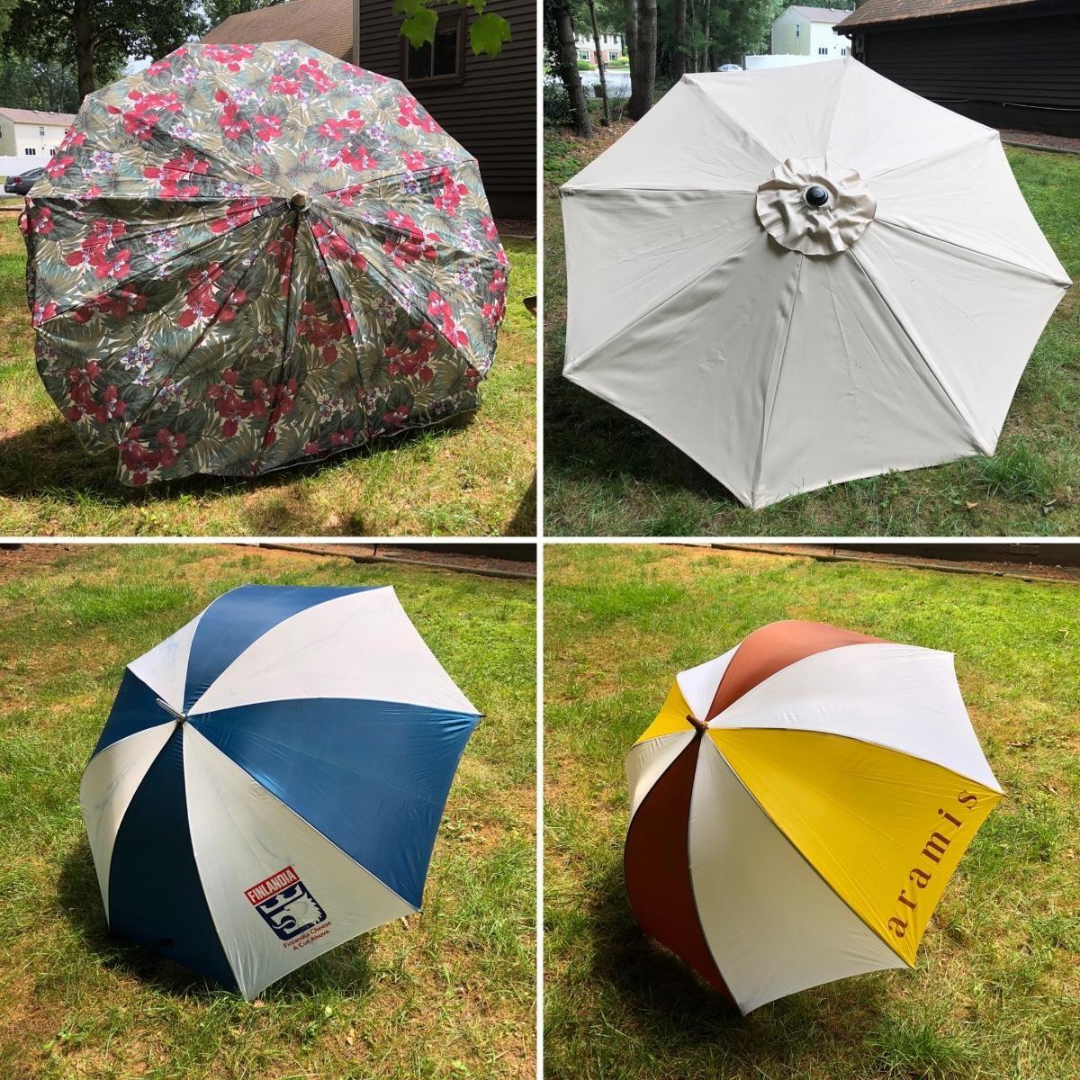 LOT 59M: Two Table Umbrellas & Two Large Hand Held Umbrellas