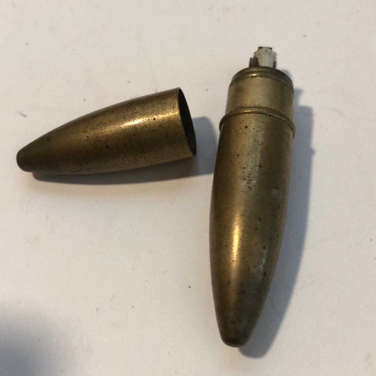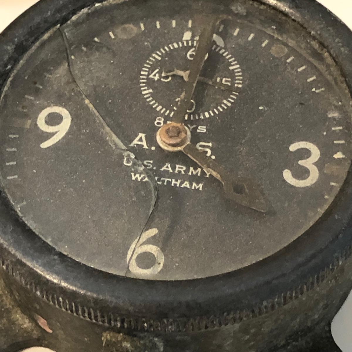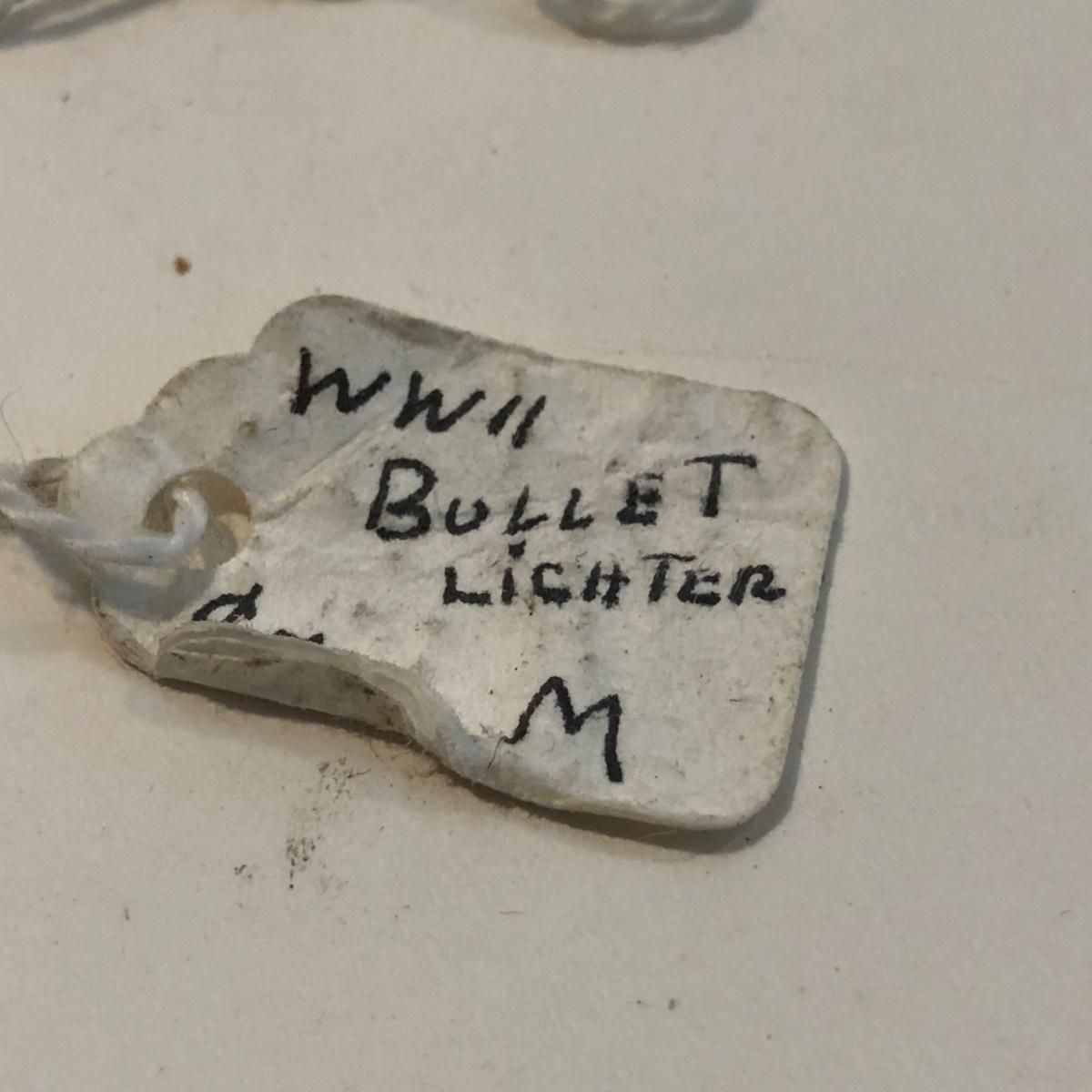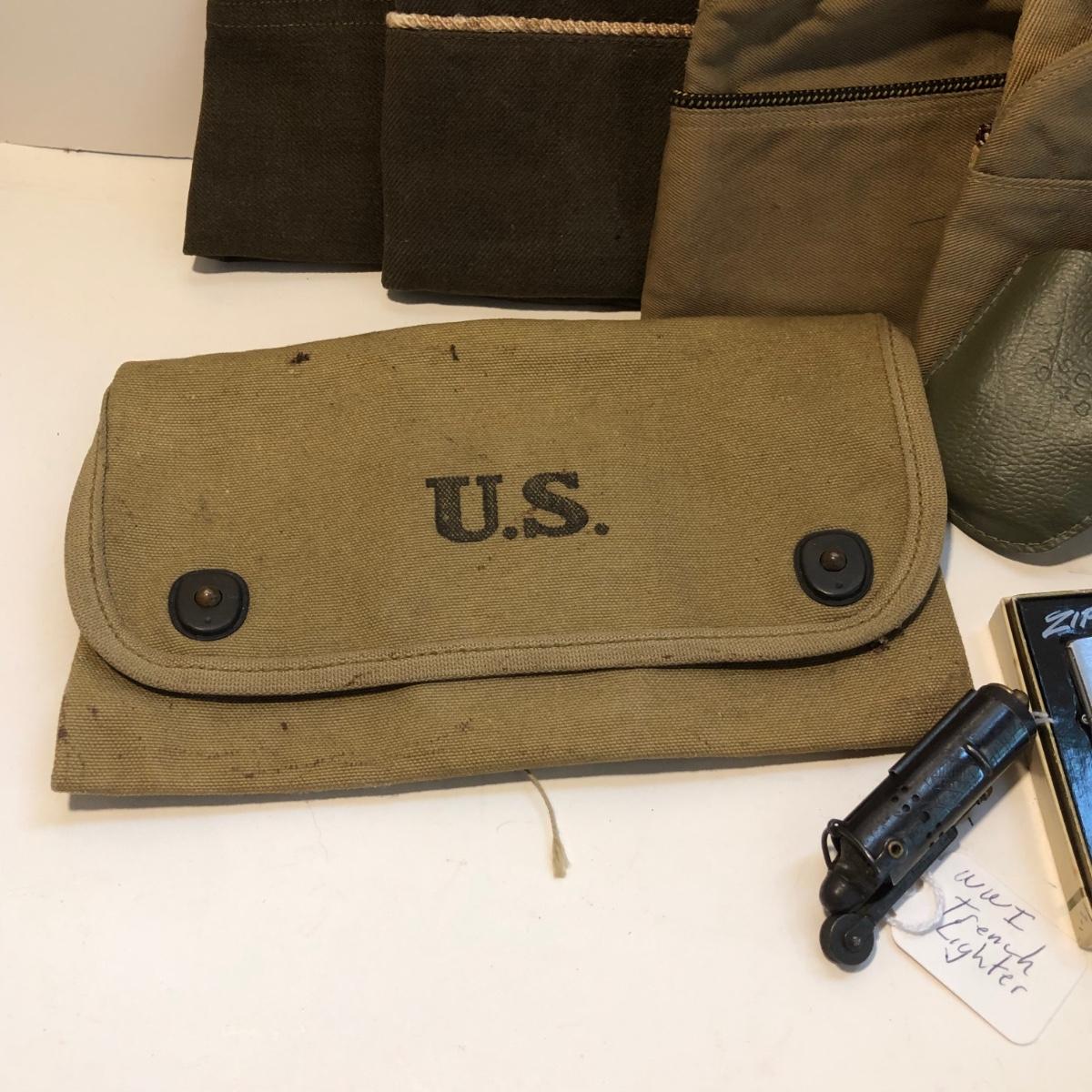 LOT 83M: WWI Trench Lighter, US Army Waltham Clock/Compass, WWII Bullet Lighter, Military Hats, US Stamped Wallet & More