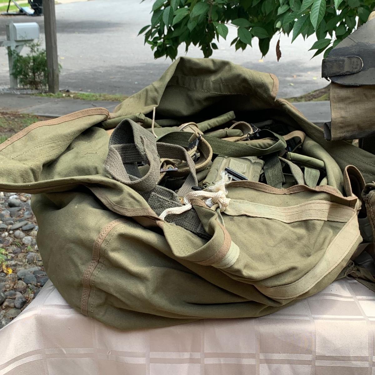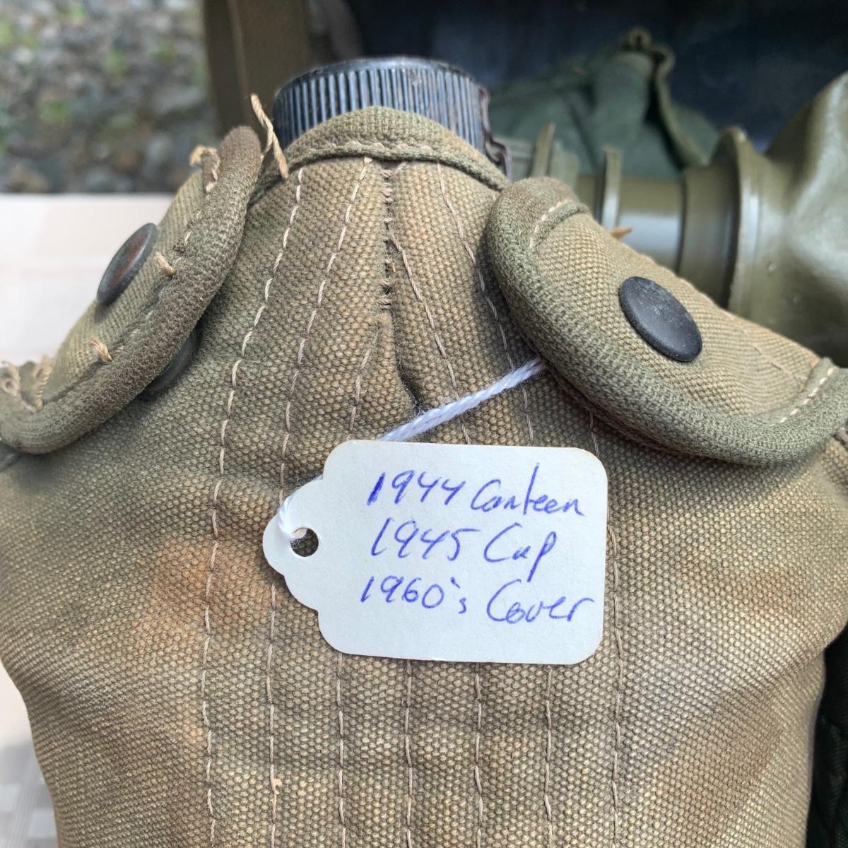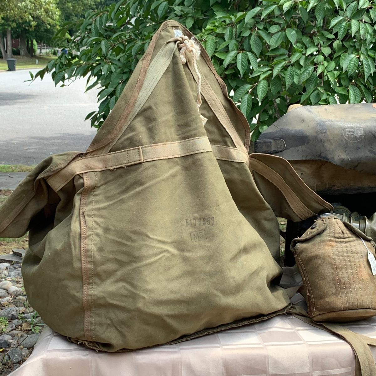 LOT 112R: Large Military Bag w/Straps. 1944 Canteens & More
