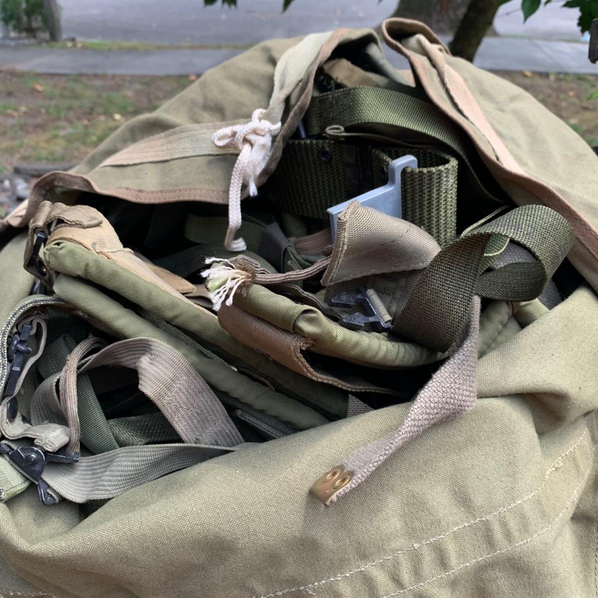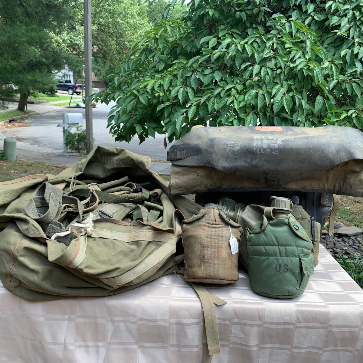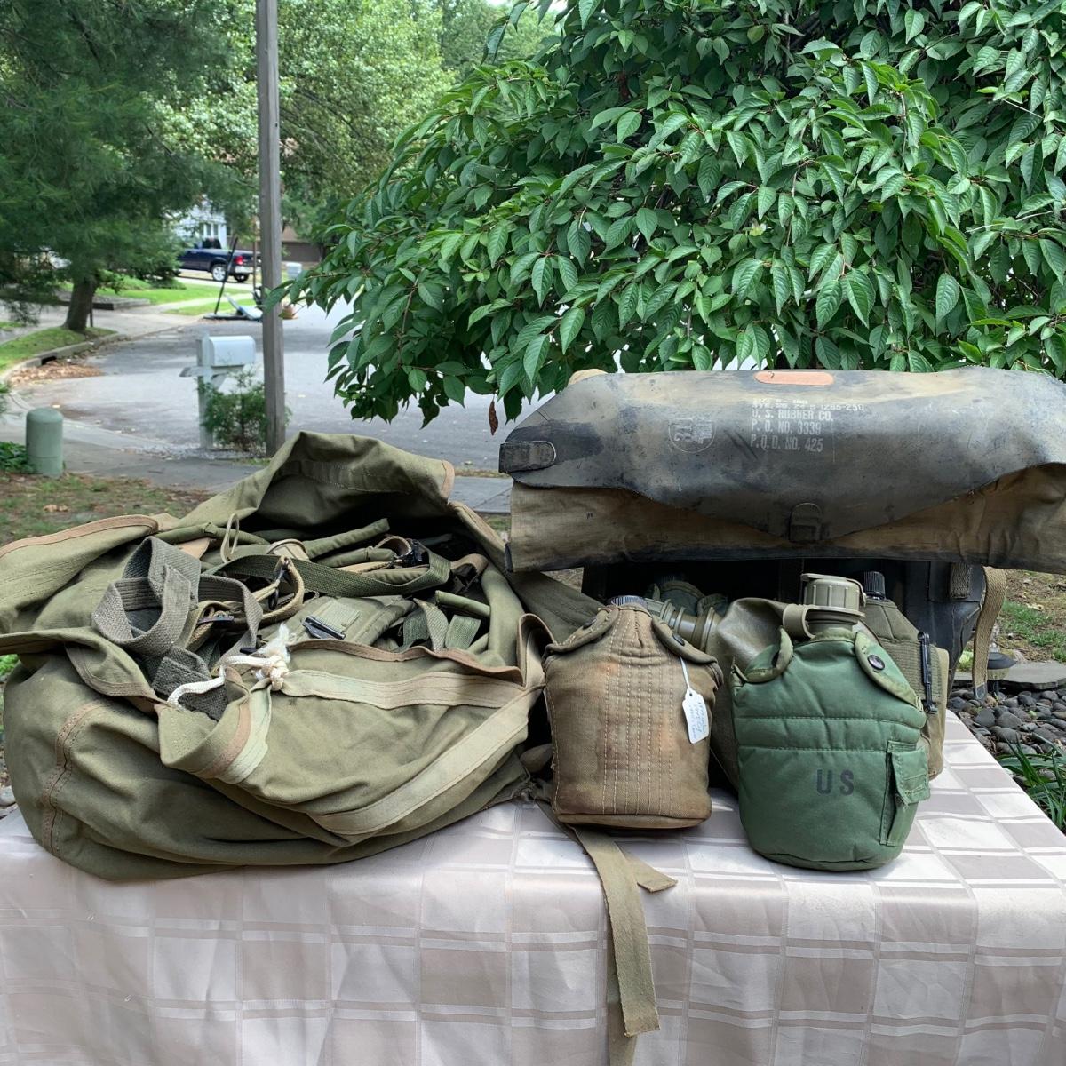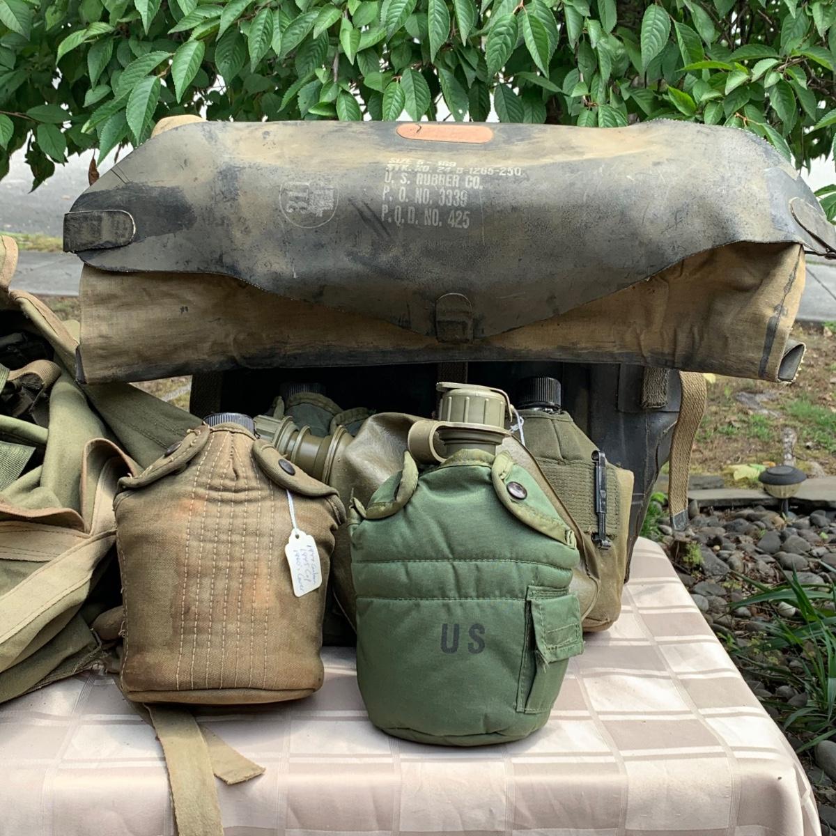 LOT 112R: Large Military Bag w/Straps. 1944 Canteens & More