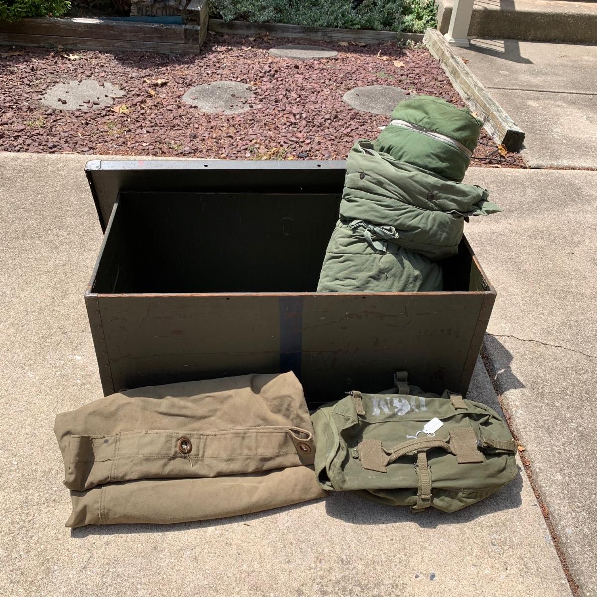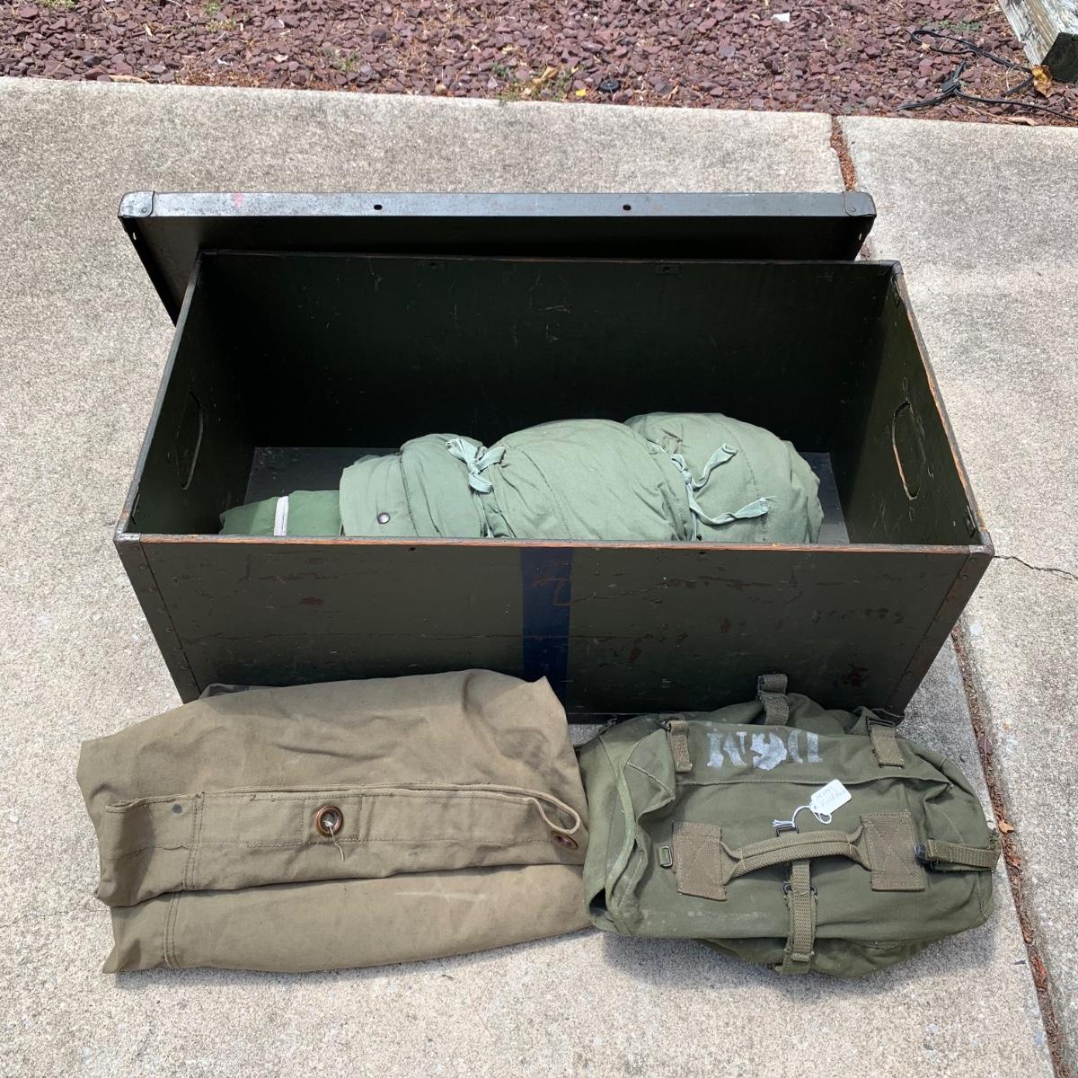 LOT 115R: 1945 Field Pack Bag, Sleeping Bag/Roll, Duffle Bag & Trunk