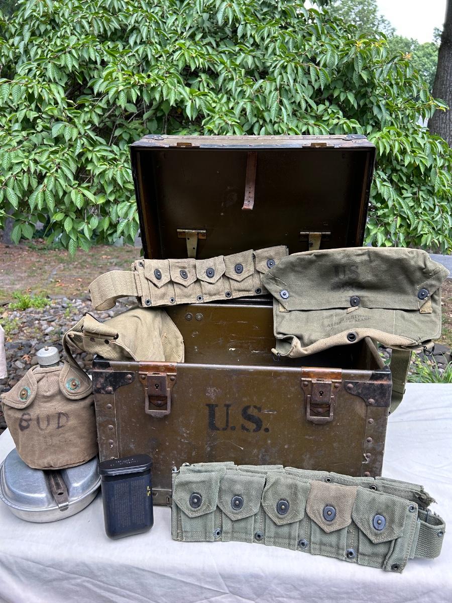 LOT 136: Military Chest With Bag, Mess Kit, Canteen And More