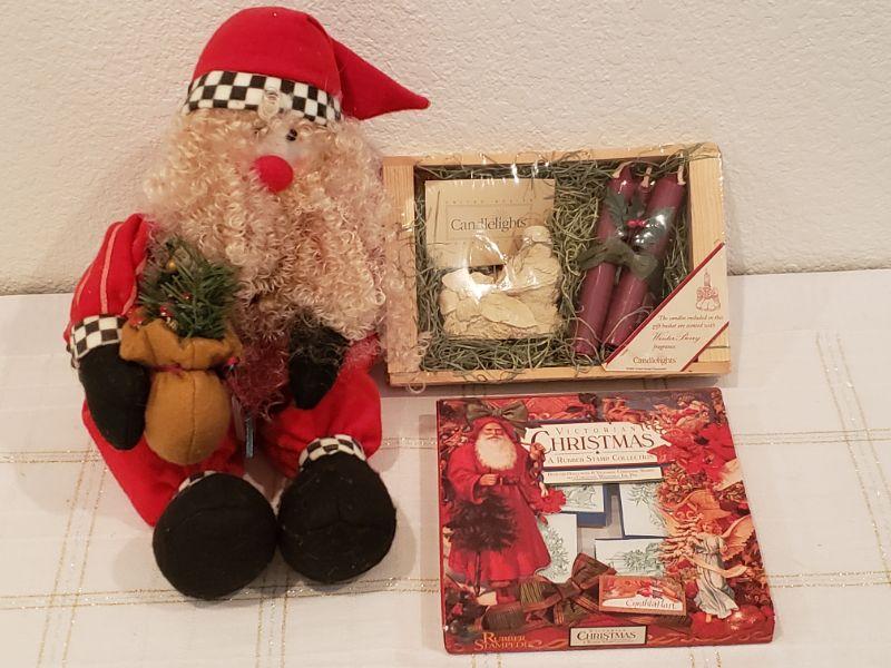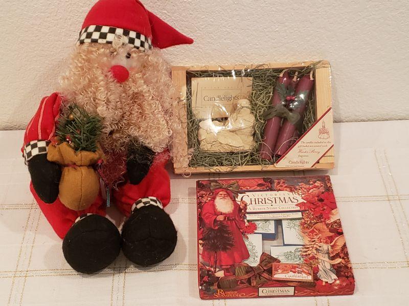 Lot 894: NEW  Victorian Christmas Rubber Stamps, Animated Santa and Candles and Holder