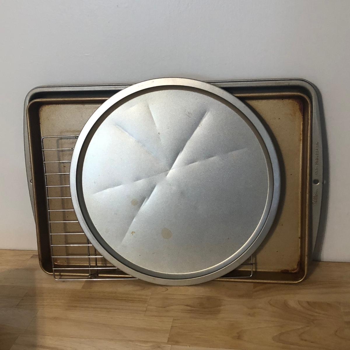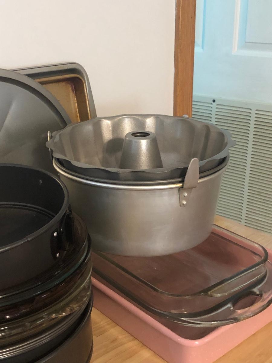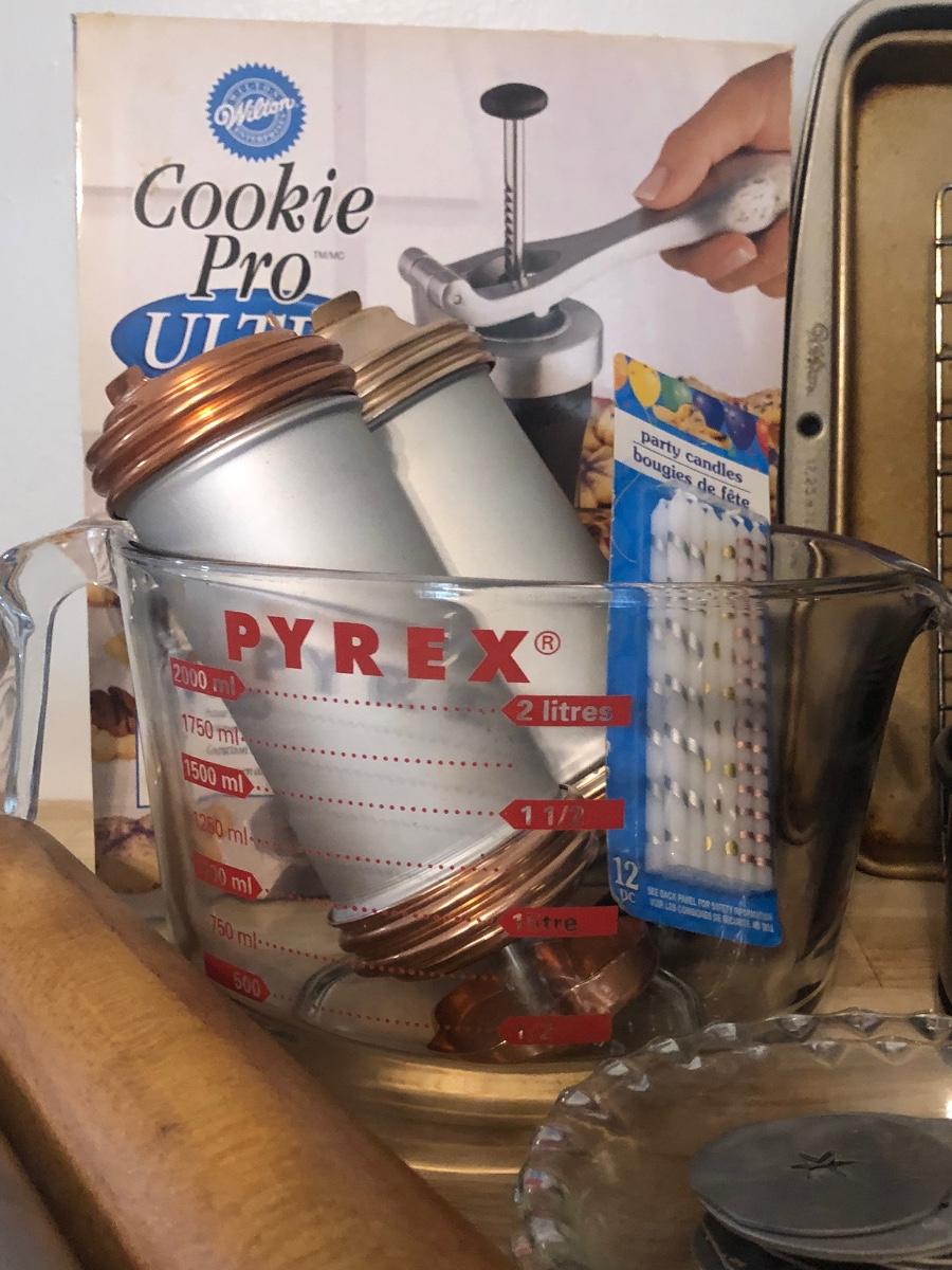 LOT 172M: Baking Collection - Cookie Presses, Pyrex Pie Dishes, Cake Pans & More