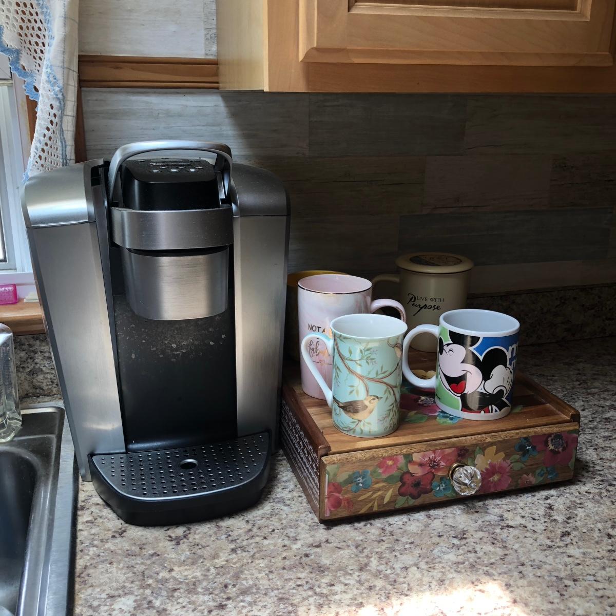 LOT 178M: Keurig K-Elite K90, Wooden K-Cup Drawer & Assortment of Mugs