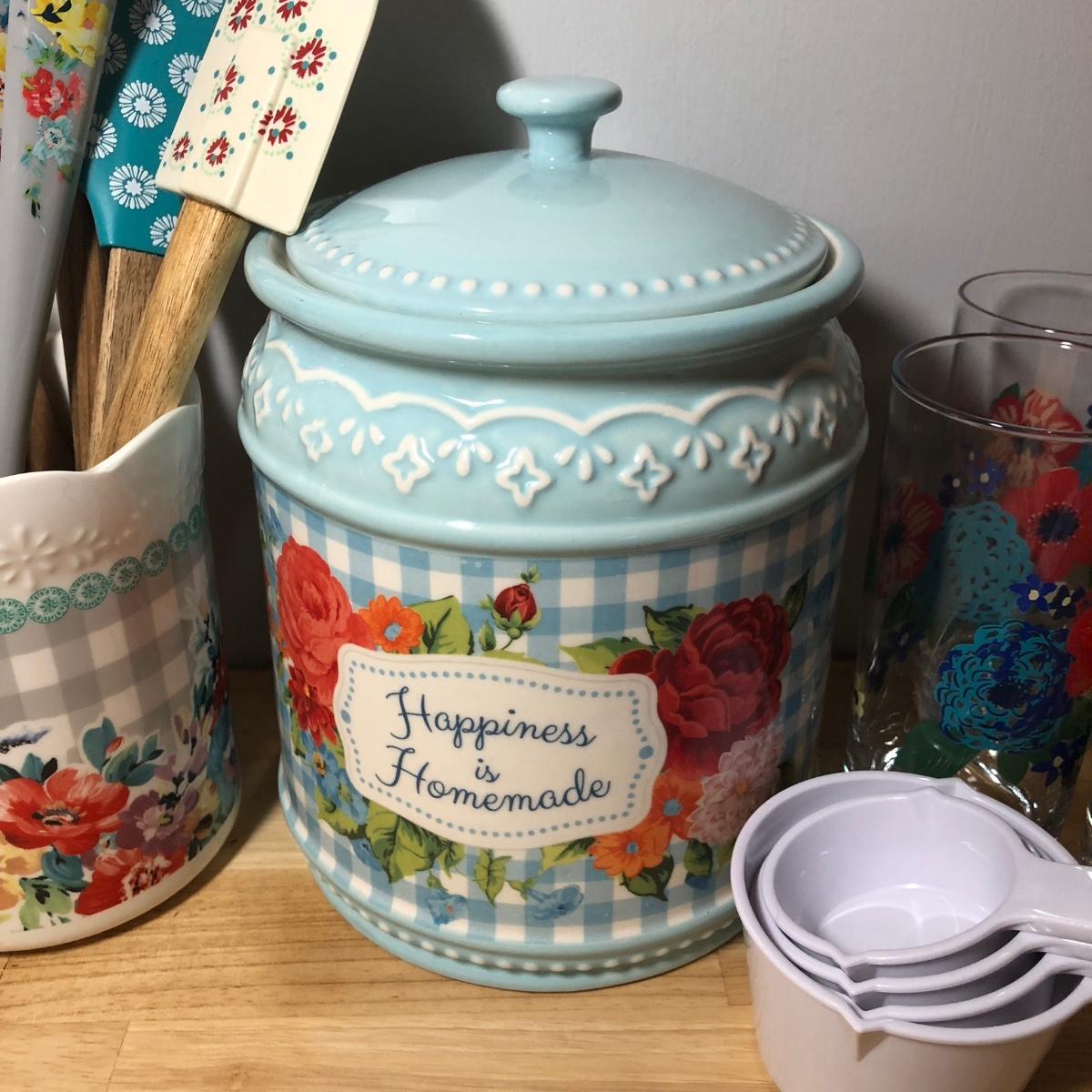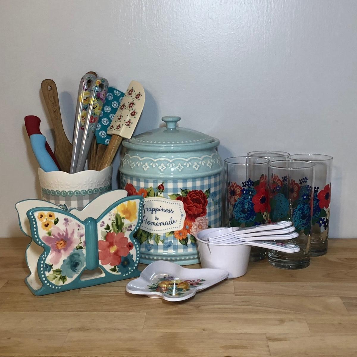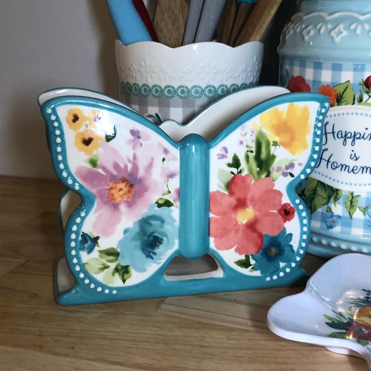 LOT 180M: Pioneer Woman Butterfly Napkin Holder & Measuring Cups, "Happiness is Homemade" Cookie Jar & More