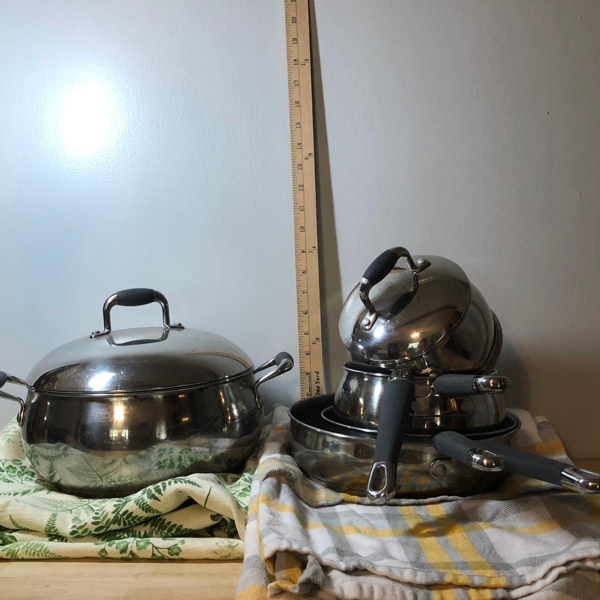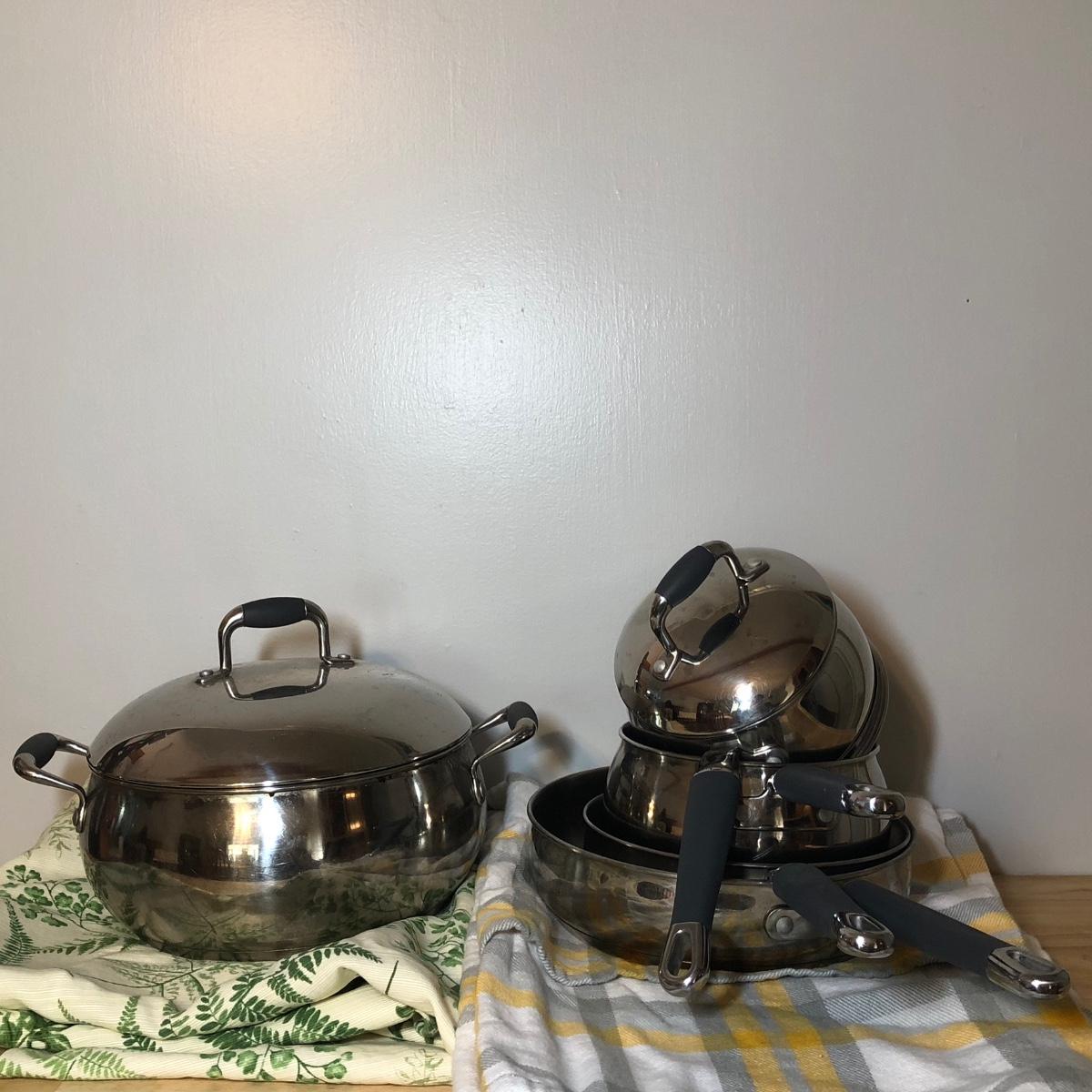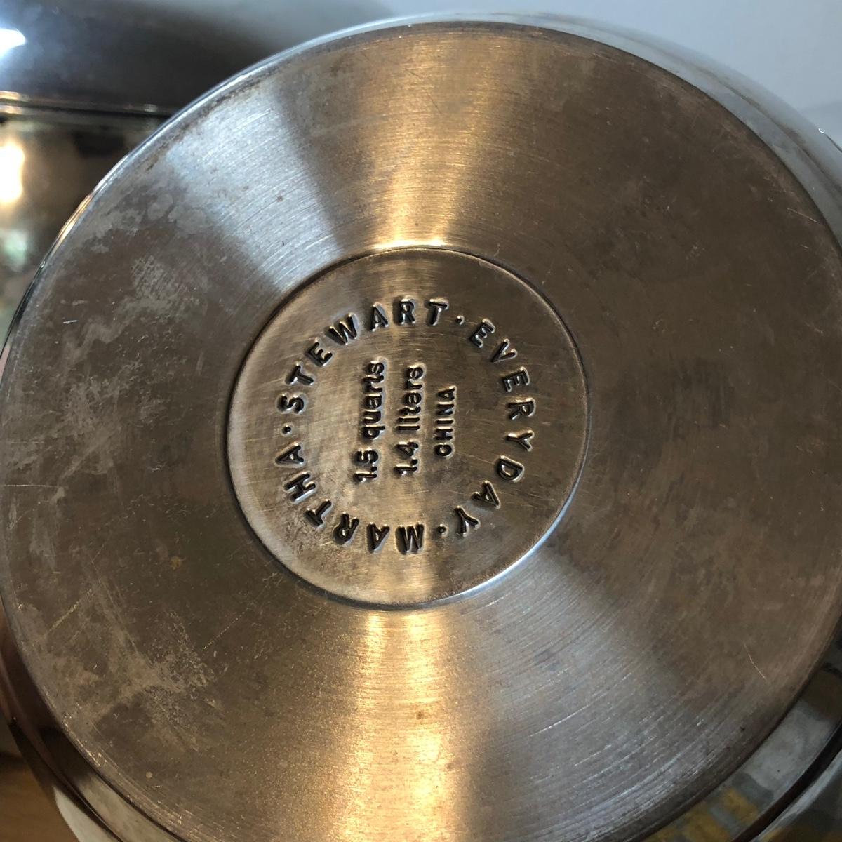 LOT 185M: Martha Stewart Everyday Pots & Pans Set & Tablecloths