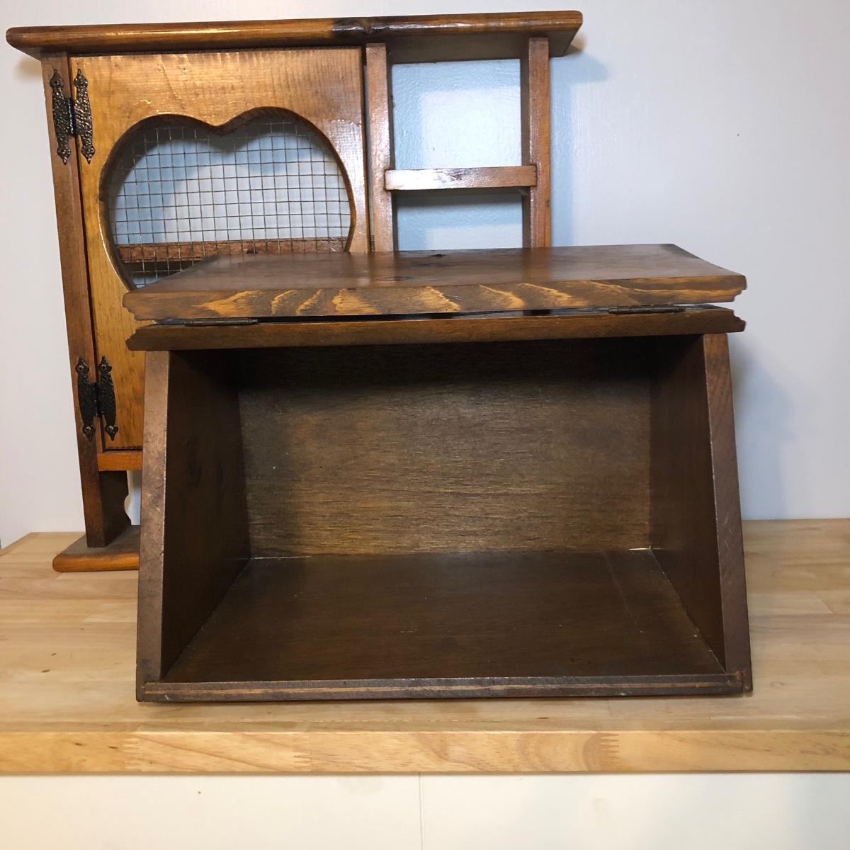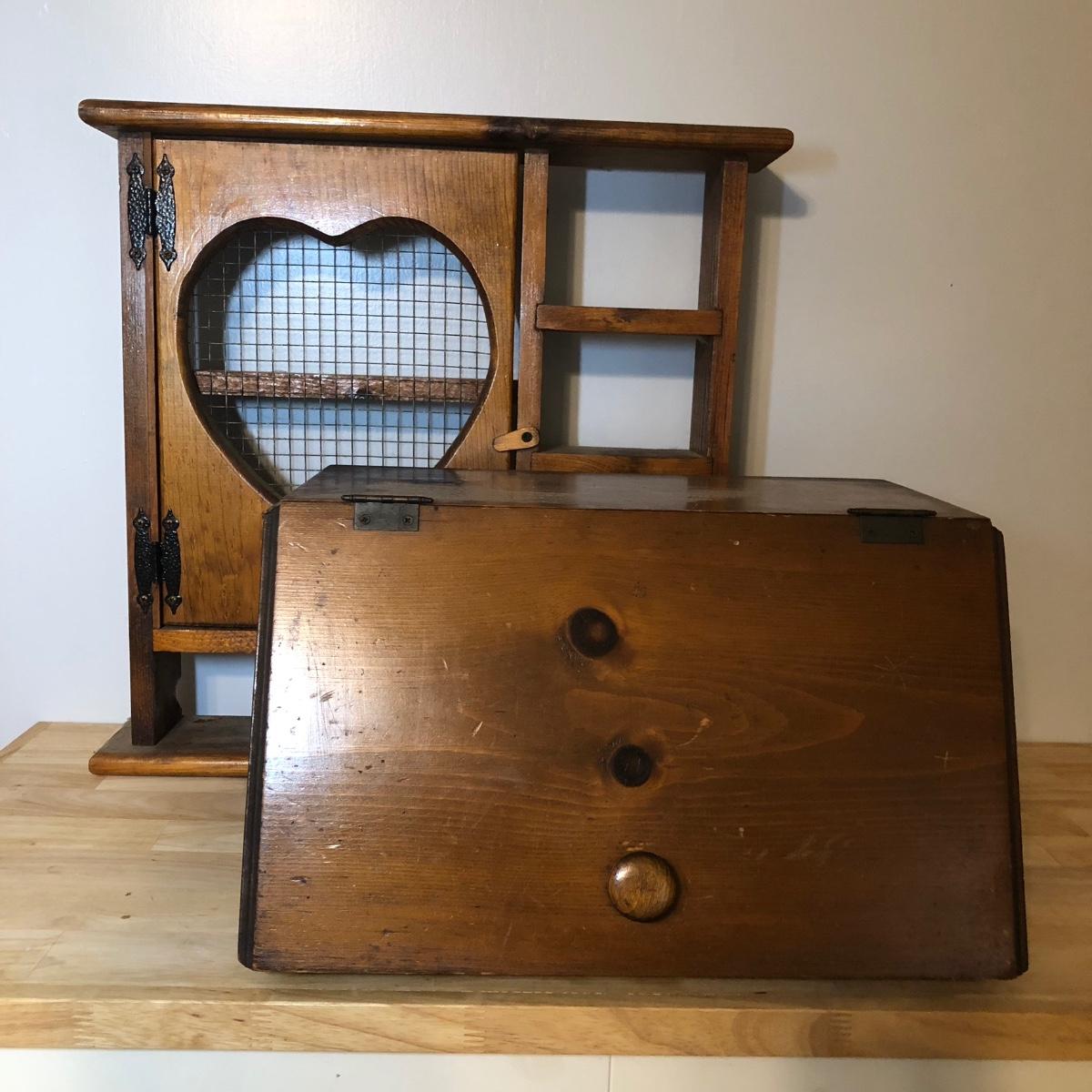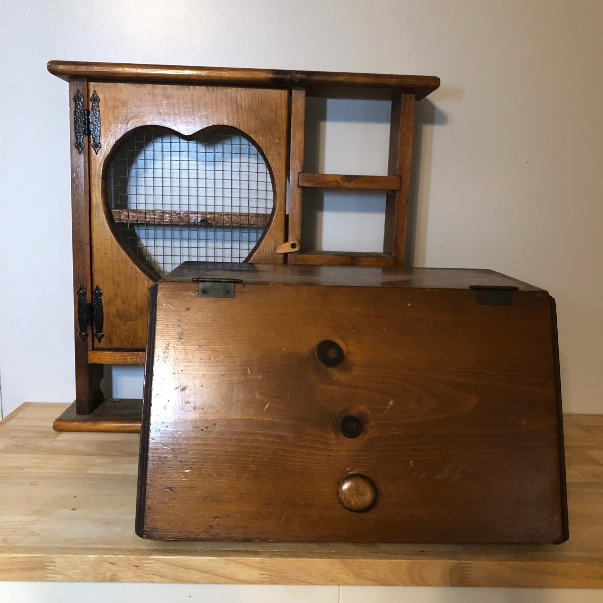 LOT 189M: Wooden Shelf w/ Heart Cutout & Large Wooden Bread Box