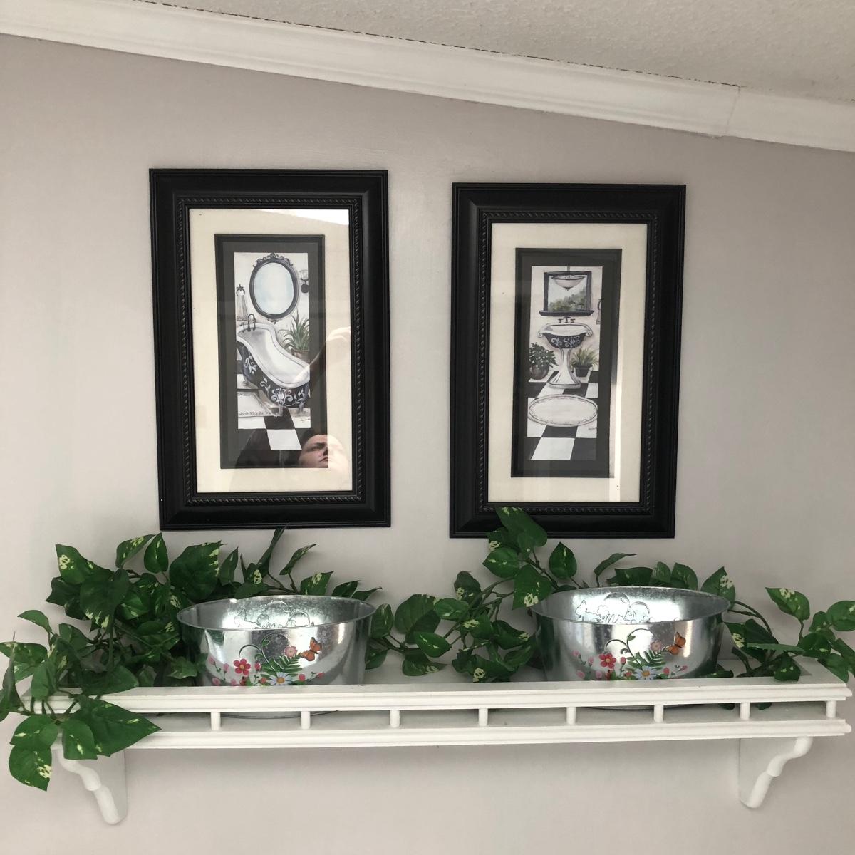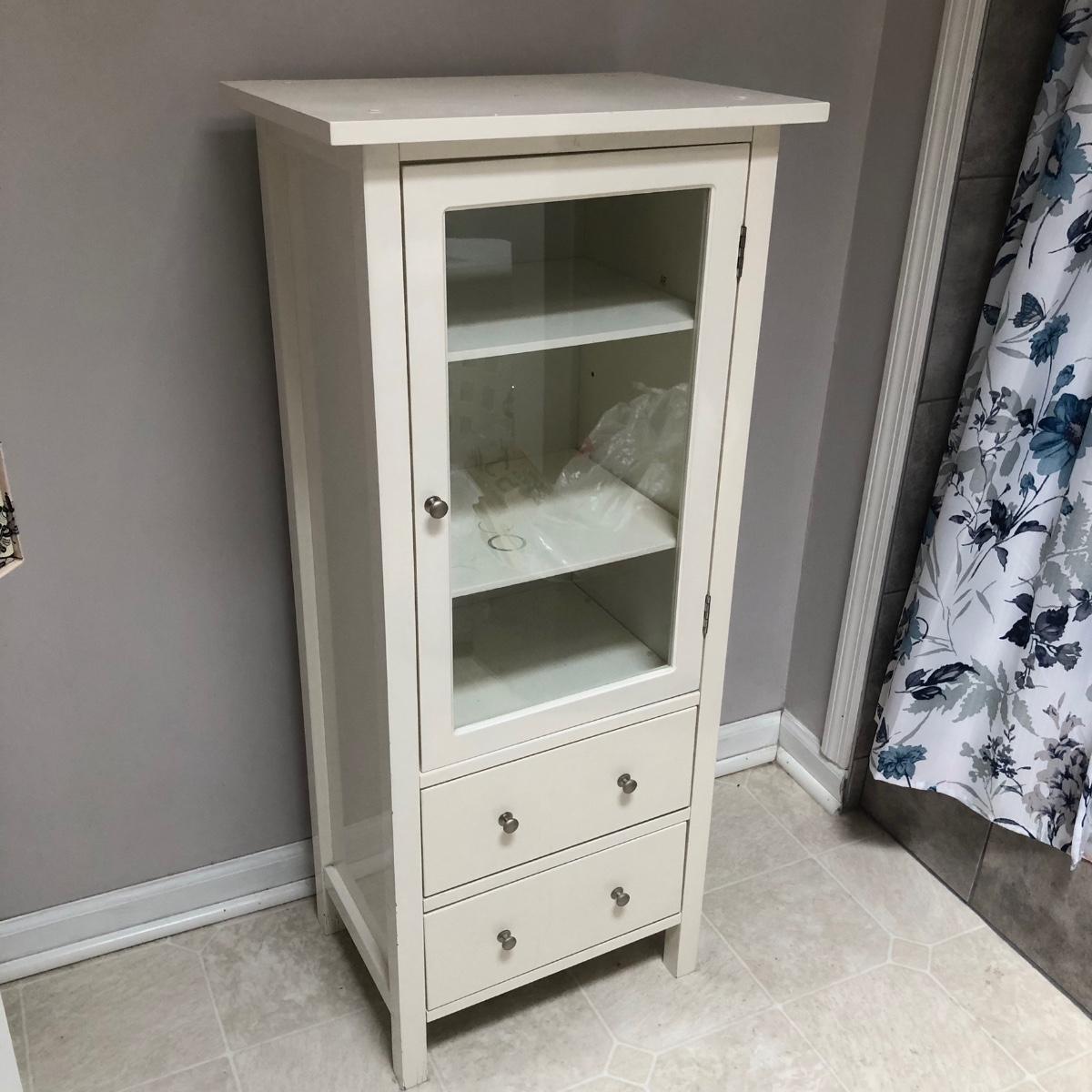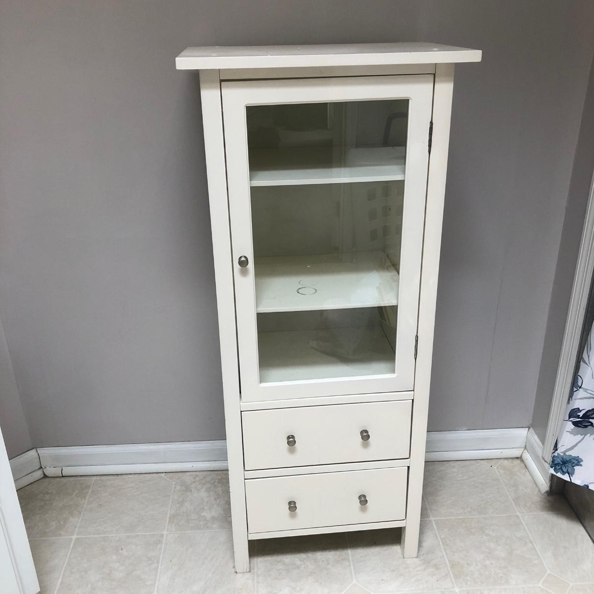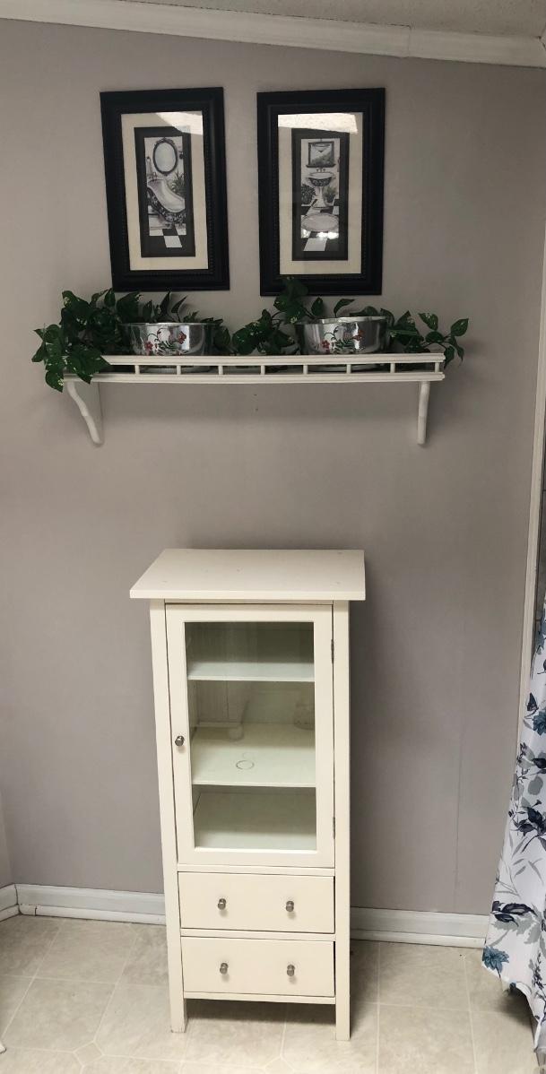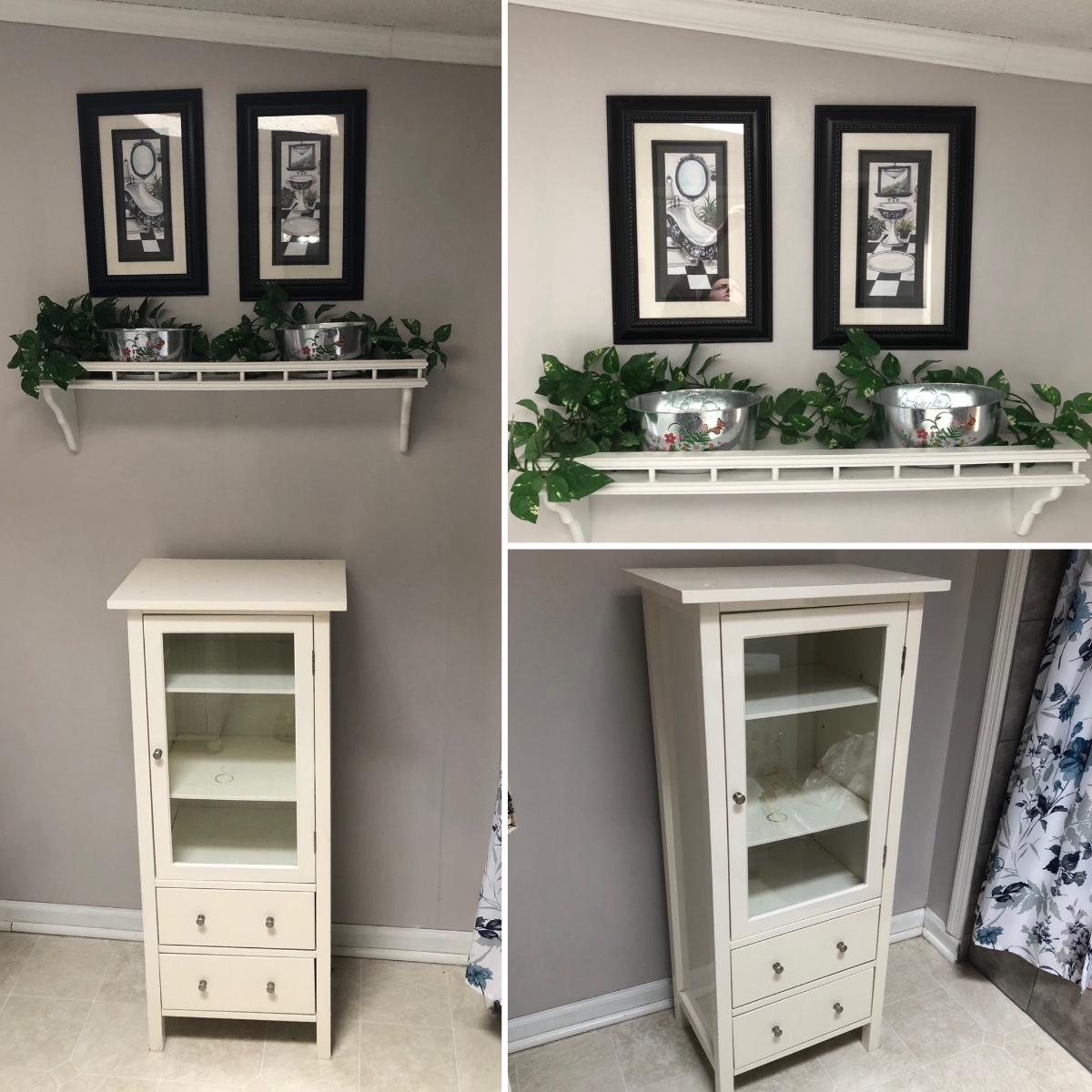 LOT 190M: White Bathroom Cabinet & Bathroom Decor