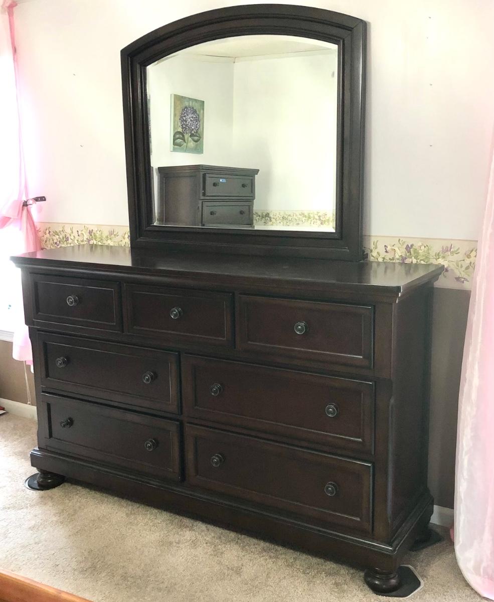 LOT 198M: 7-Drawer Dresser w/ Attached Vanity Mirror