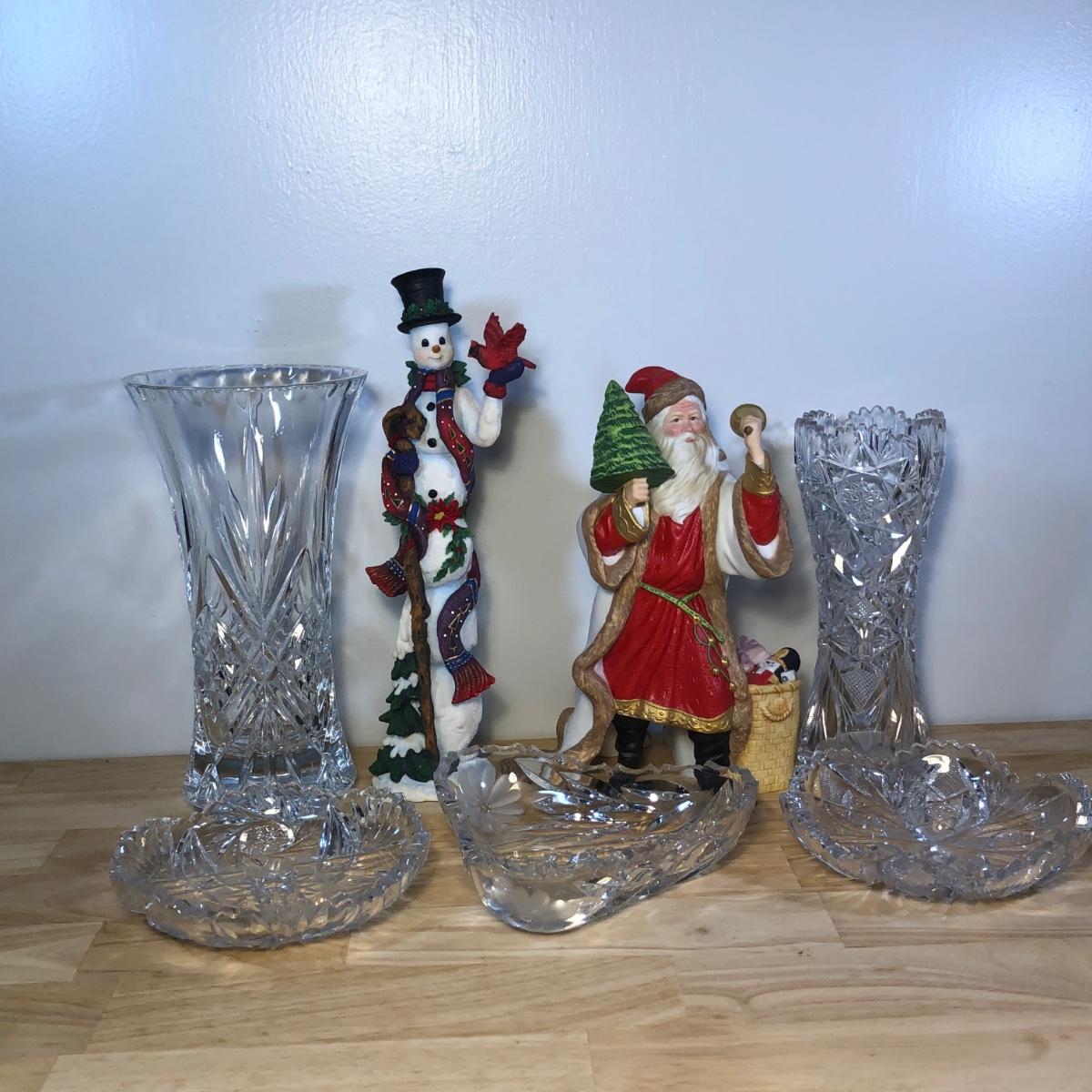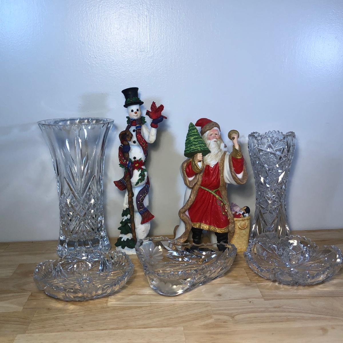 LOT 208M: Lenox & Crystal- 1991 Kris Kringle, 1999 Winter Friend & Crystal Vases/Dishes
