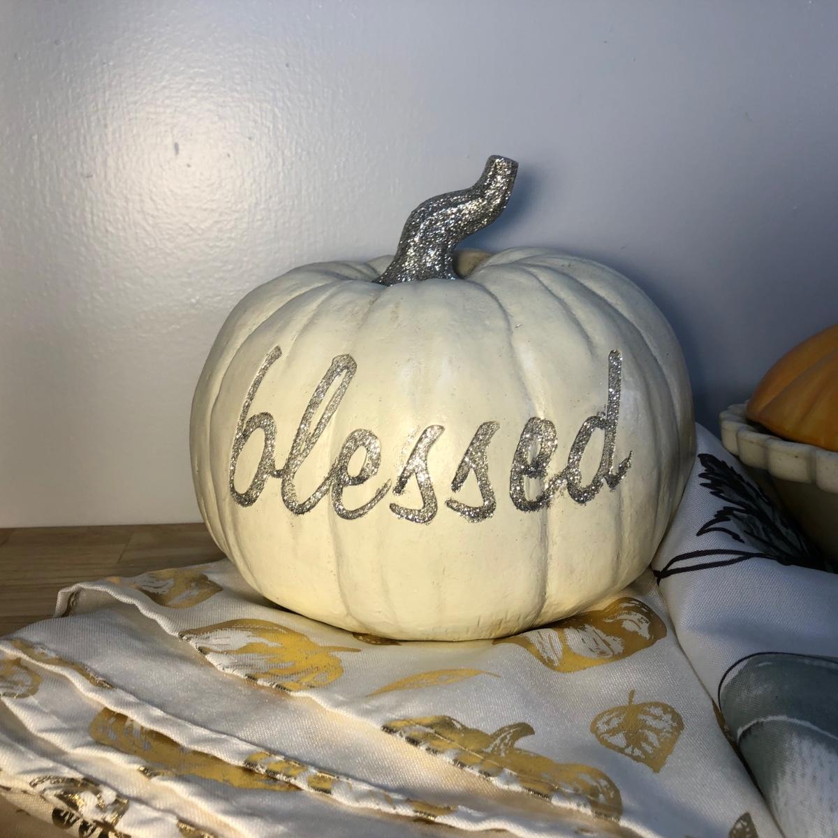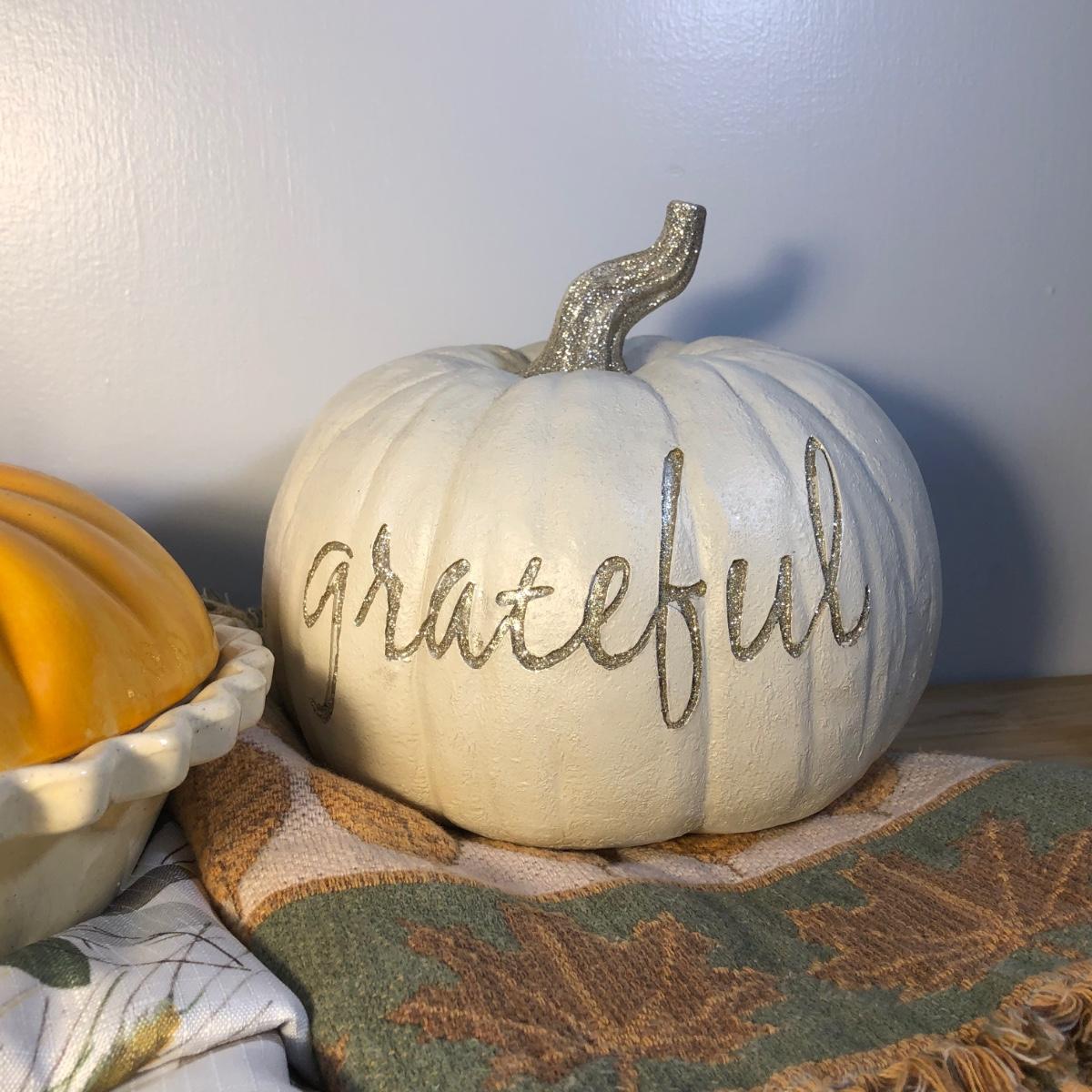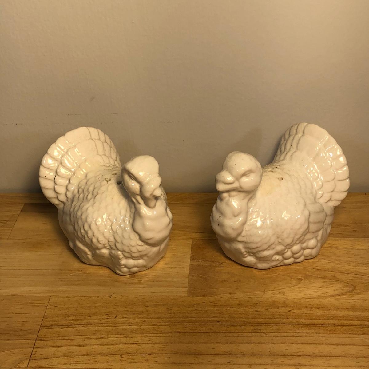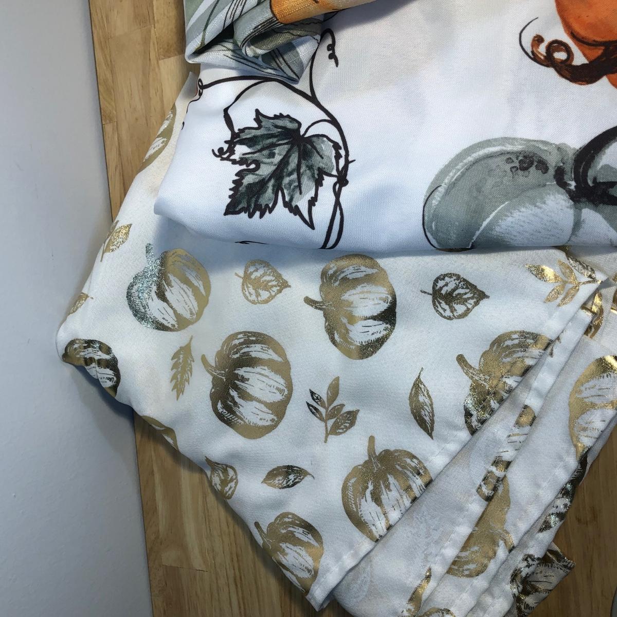 LOT 272M: Thanksgiving Home Decor - Ceramic Pumpkin Pie Dish, Pumpkins, Tablecloths & Turkey S&P Shakers
