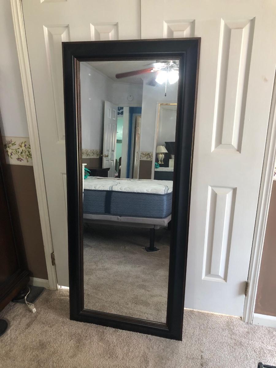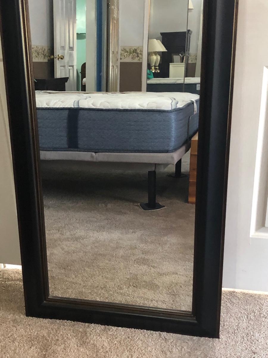 Mirror is 27 x 62 inches. Bench is 26W x 14D x 20H. Lamp is 26" tall and works.