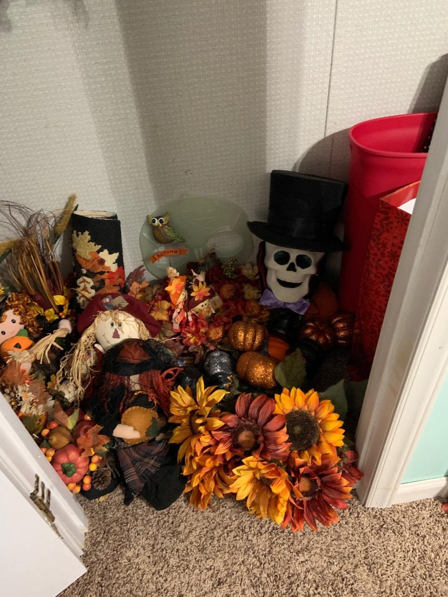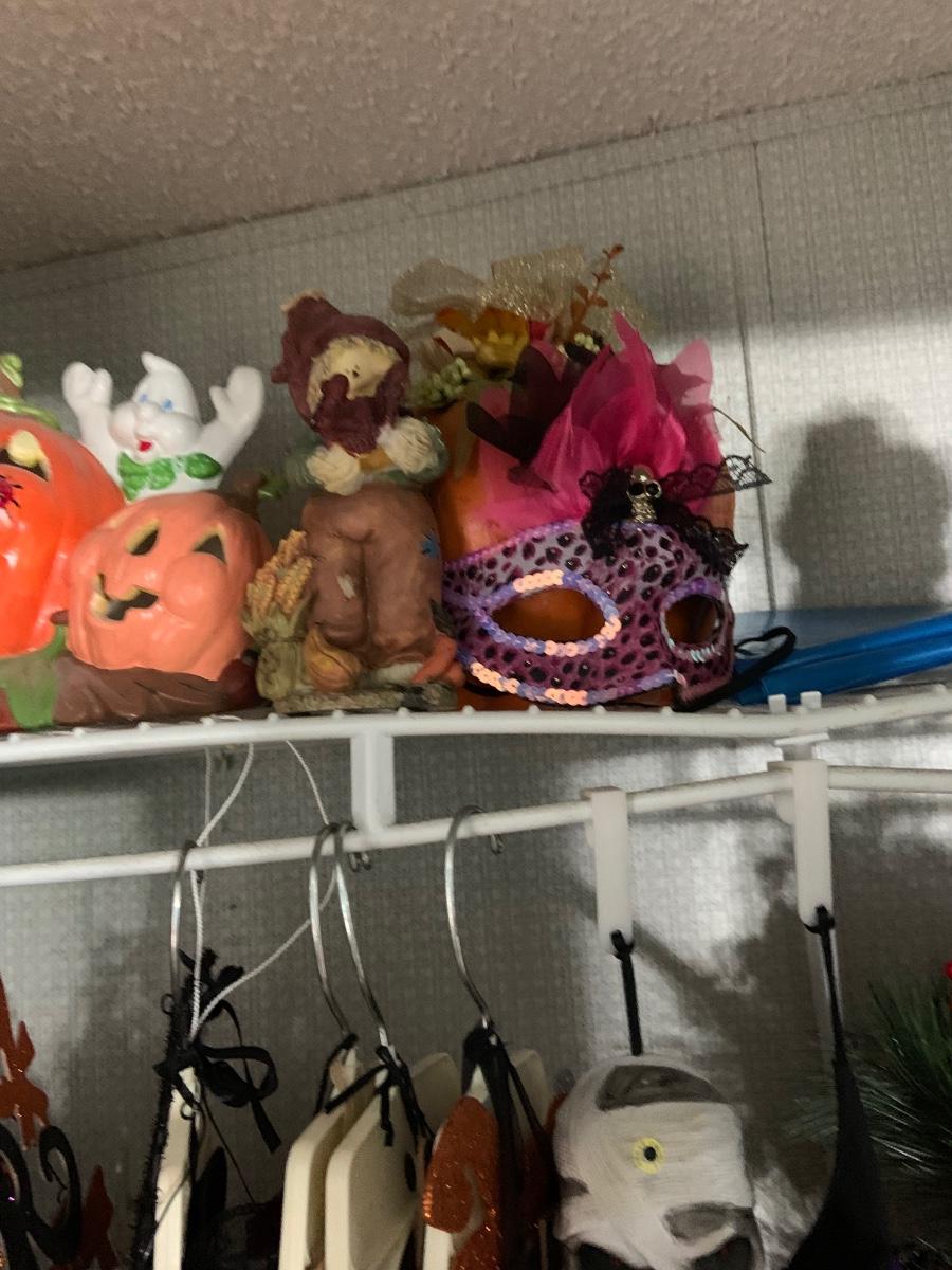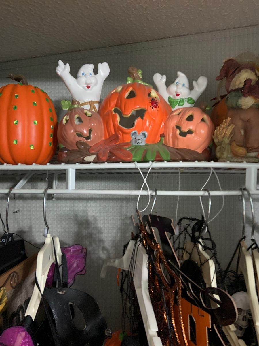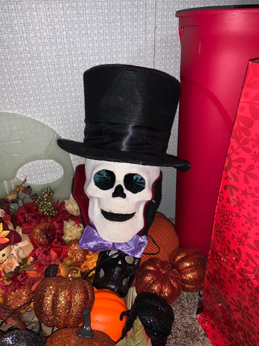 LOT:227G: Skeletons In The Closet and More Autum and Halloween Decoration, Costumes, Ceramics , Floral Decor and Much More