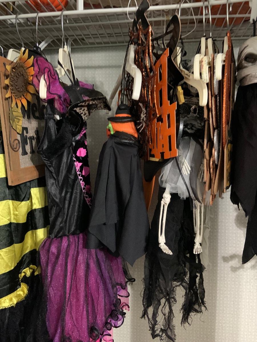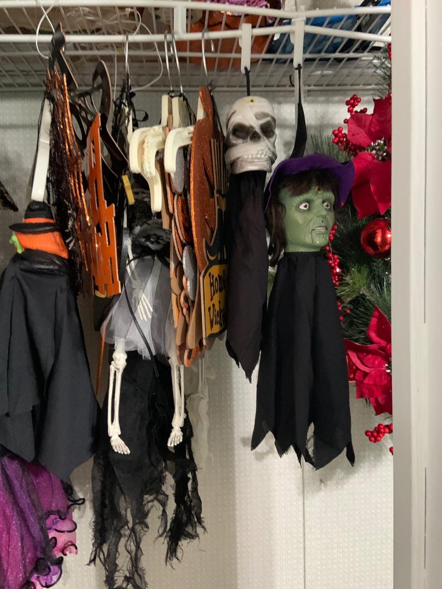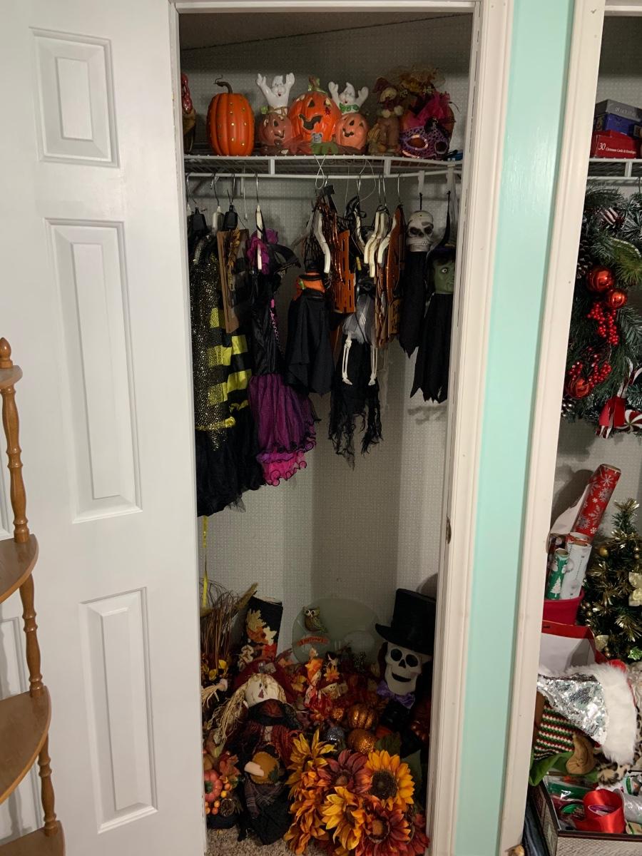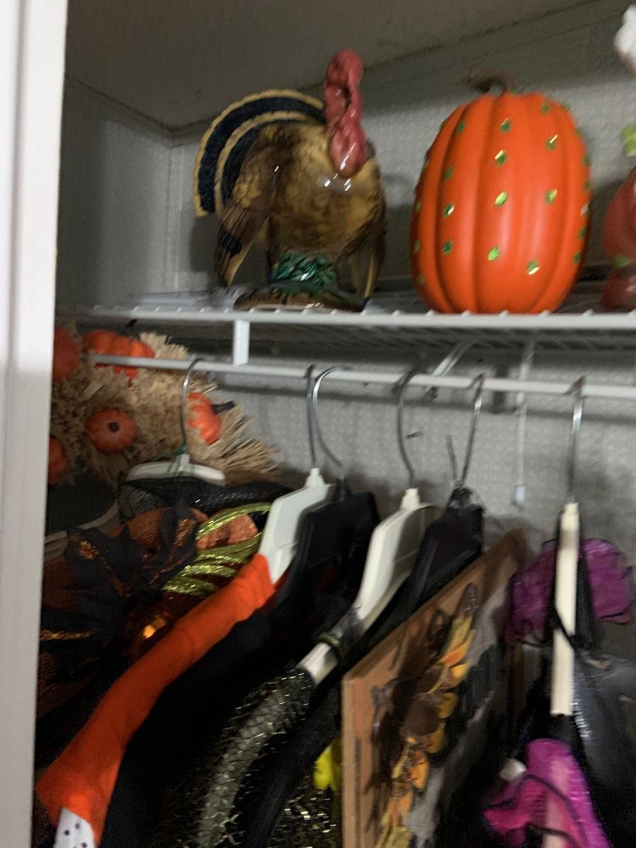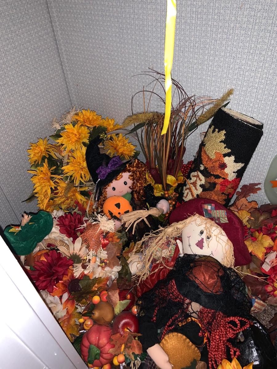 LOT:227G: Skeletons In The Closet and More Autum and Halloween Decoration, Costumes, Ceramics , Floral Decor and Much More