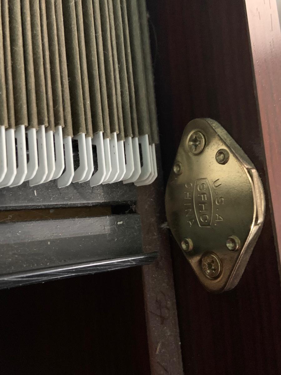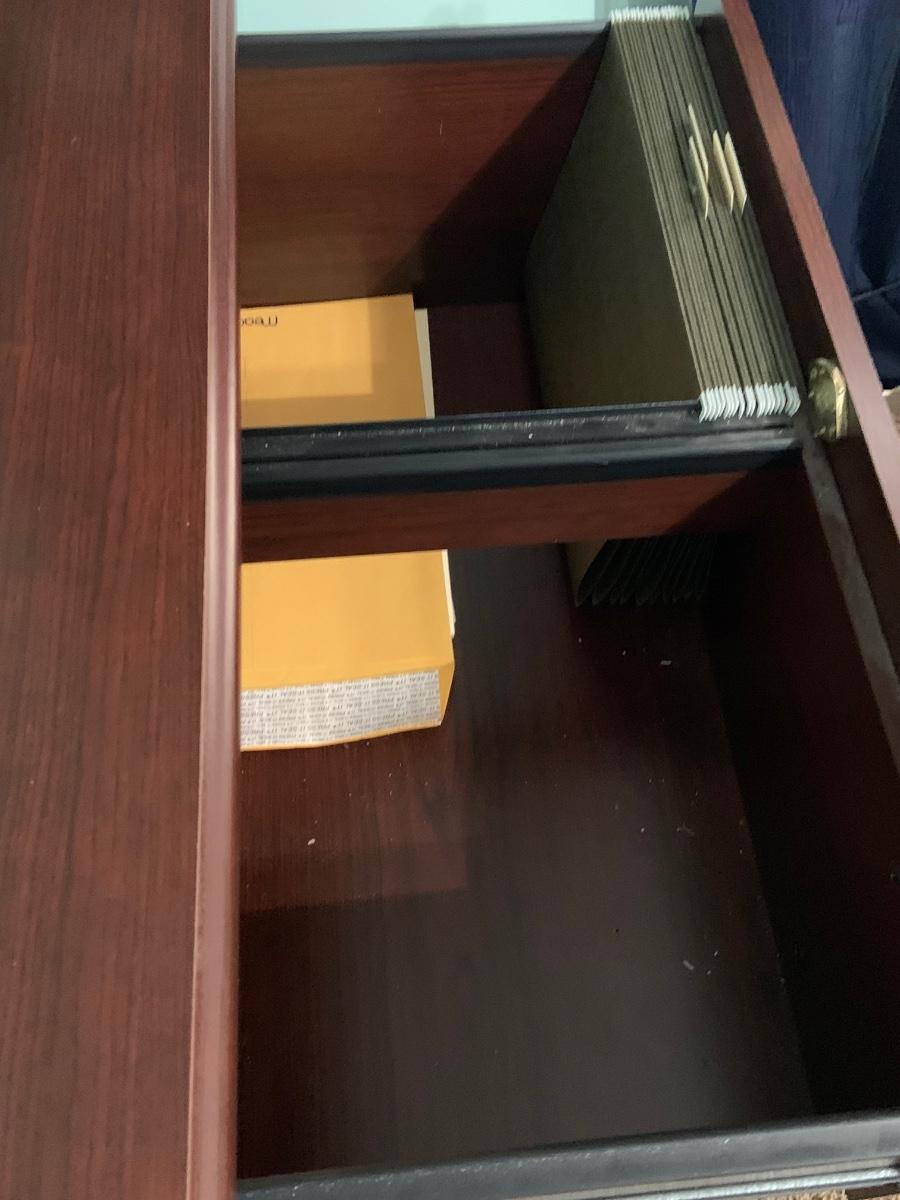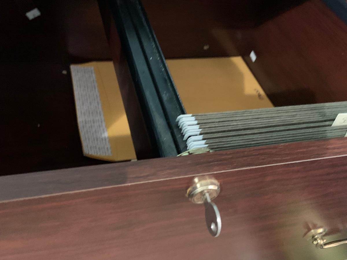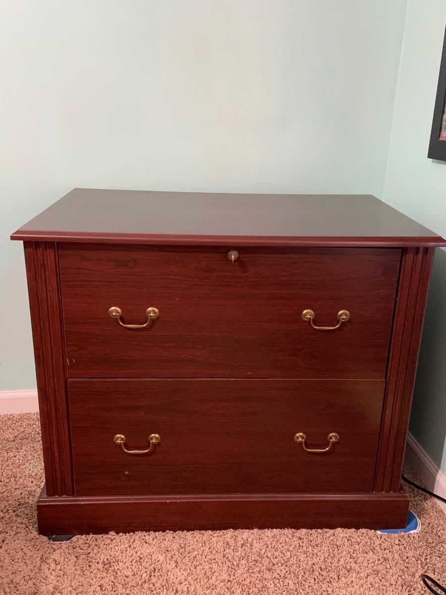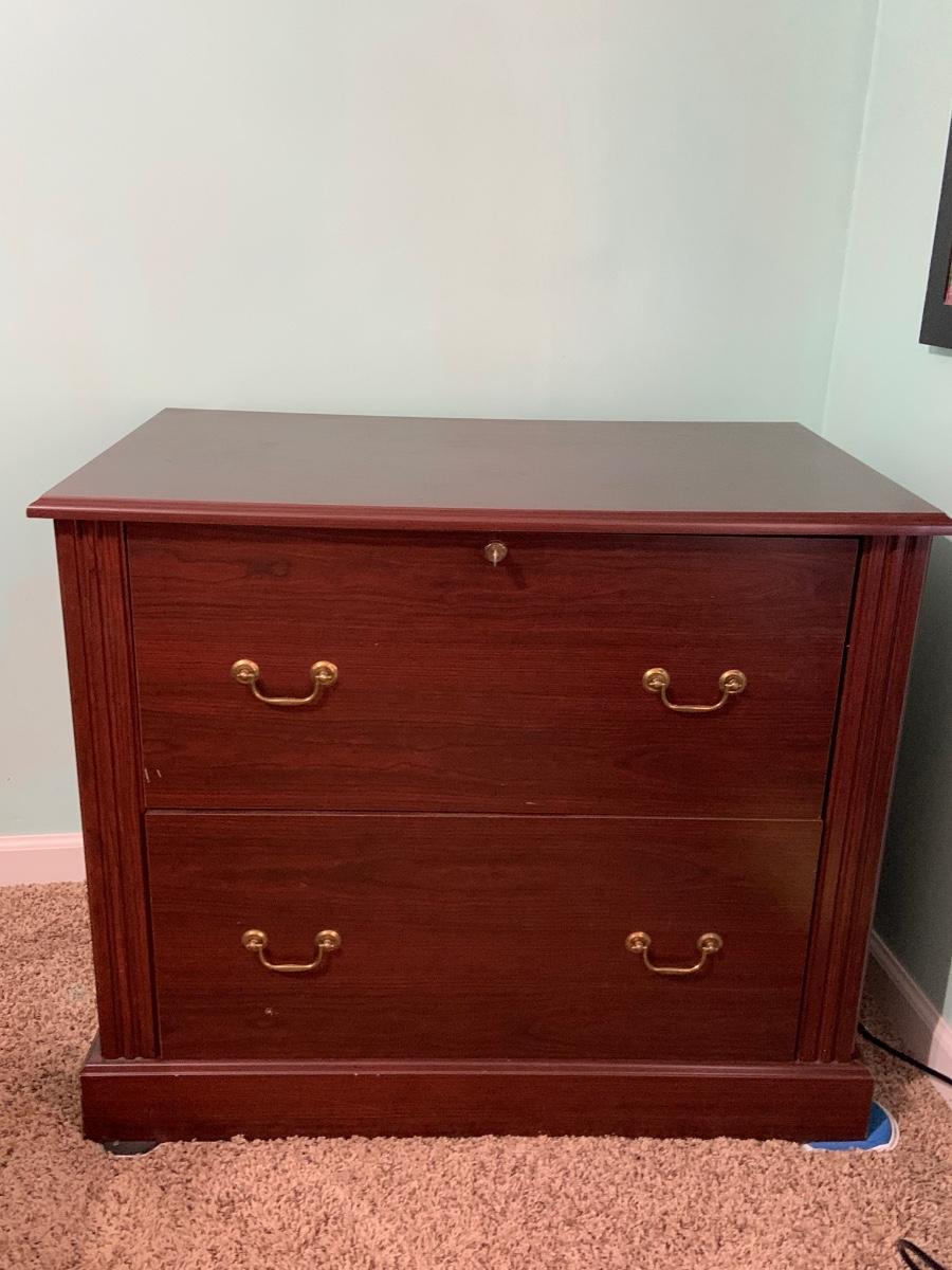 LOT:229G Large Wood 2 Drawer Locking Filing Cabinet.