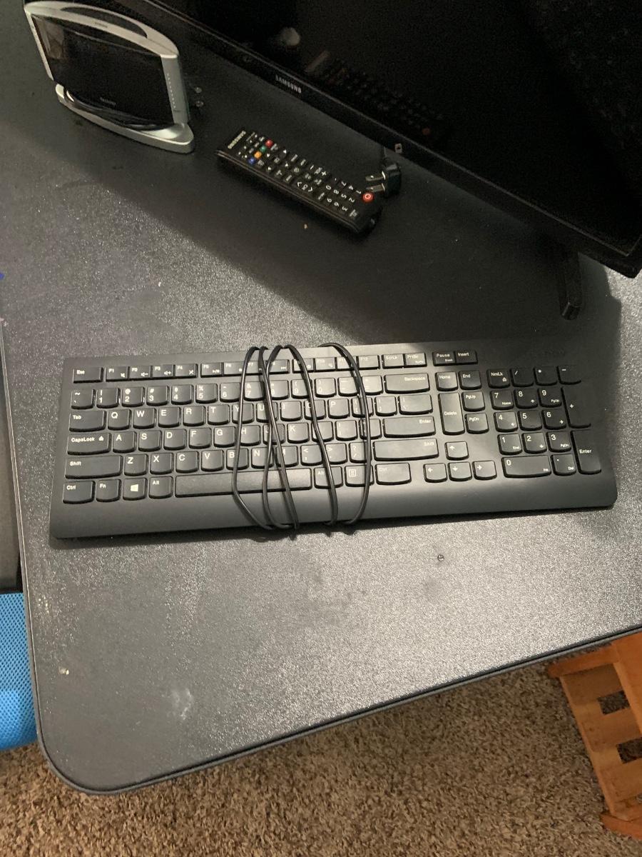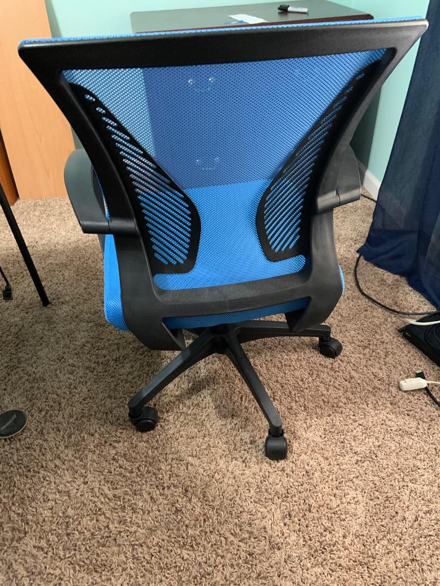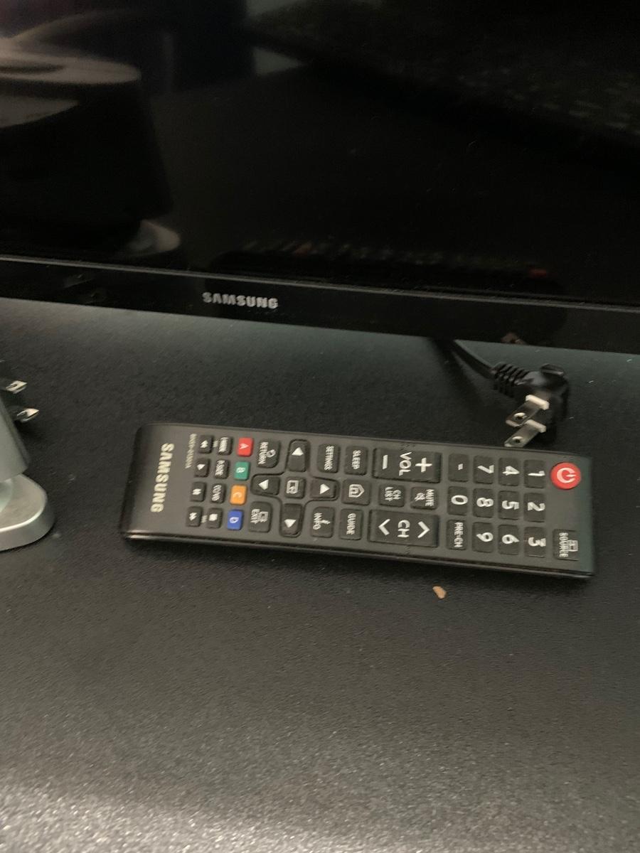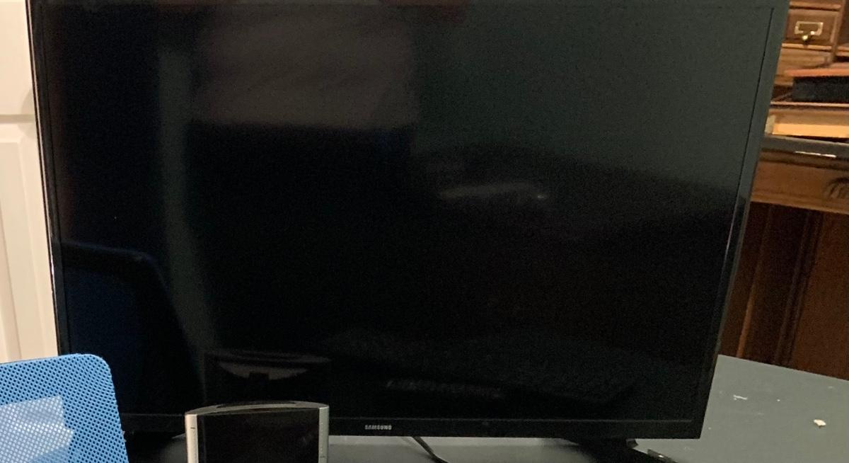 LOT:230G: Office Essentials Including a Samsung TV with Remote an LG Blueray Player with Remote, Blue Desk Chair, a Keyboard Clocks and a Mickey Mouse Pay with Mice..