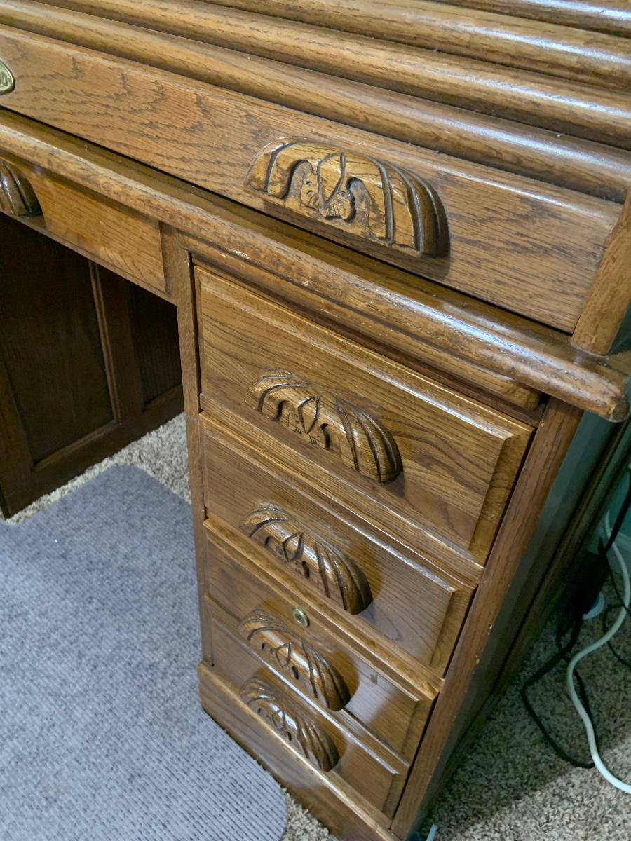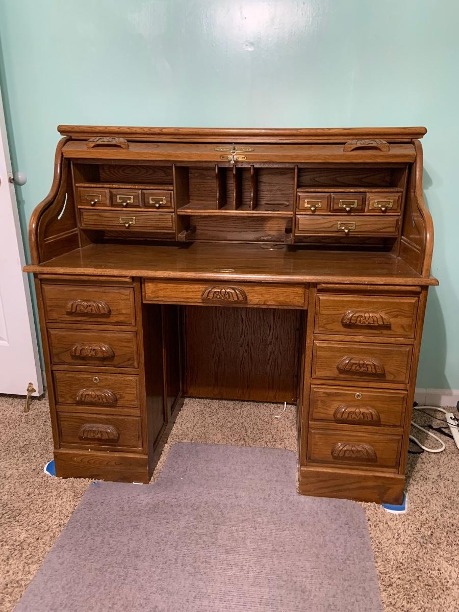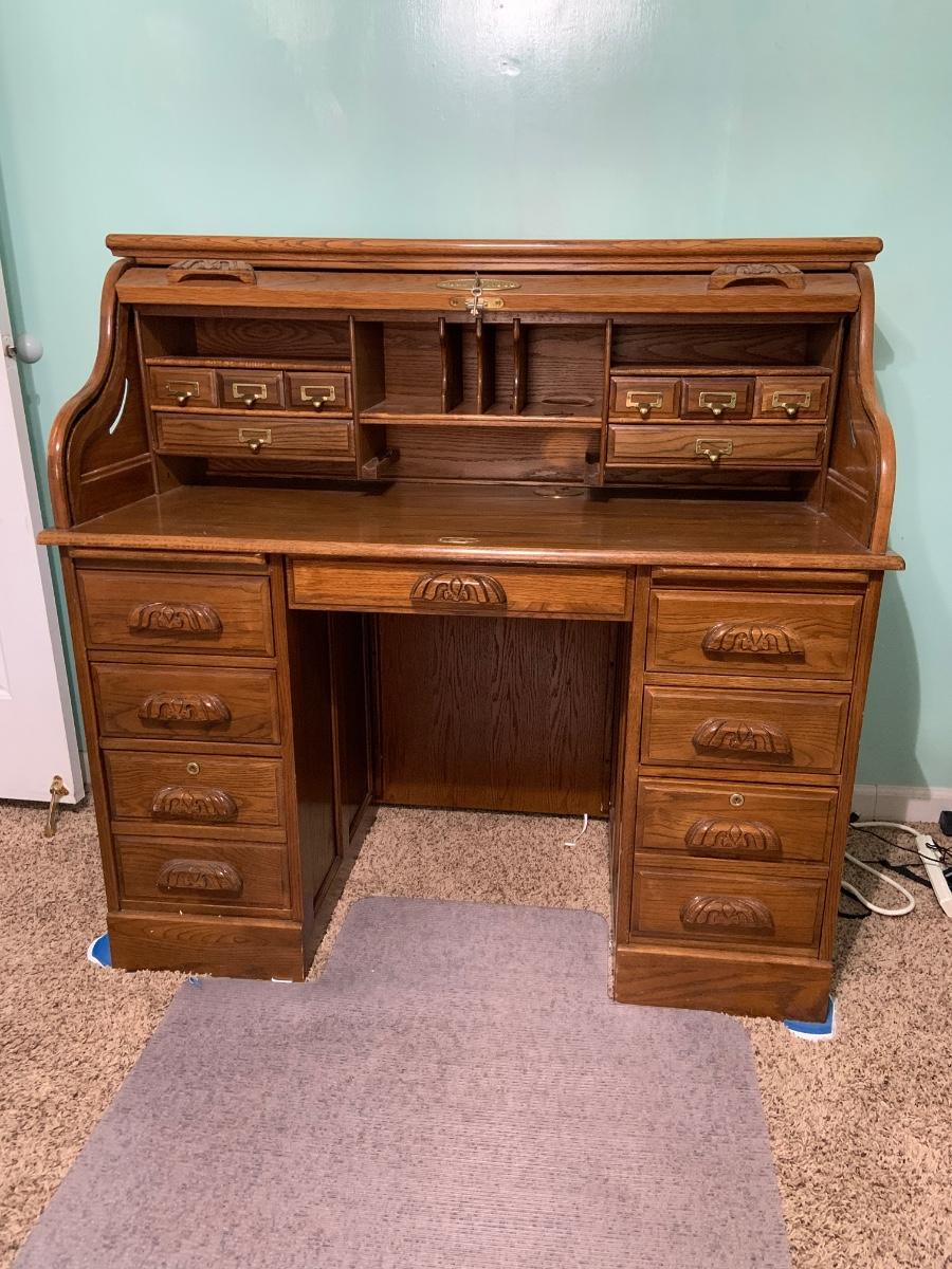 The desk measure approx.48 x 24 x 46" Please see all pictures as they are the best representation of the items. The pictures show condition, measurements if taken, and what is included in the lot. Due to the large amount that we photograph and the time frame, we are not always able to take measurements. All items unless noted, are pre-owned and have been used. If you purchased furniture, you must bring help. We do not allow one person to carry large furniture out on their own. Bring help, tools and a truck for the safety of our client’s homes, and your personal safety. Any damages that result to the property including walls, and floors due to moving of the furniture will be charged to the buyer. Company policy. Thank you.