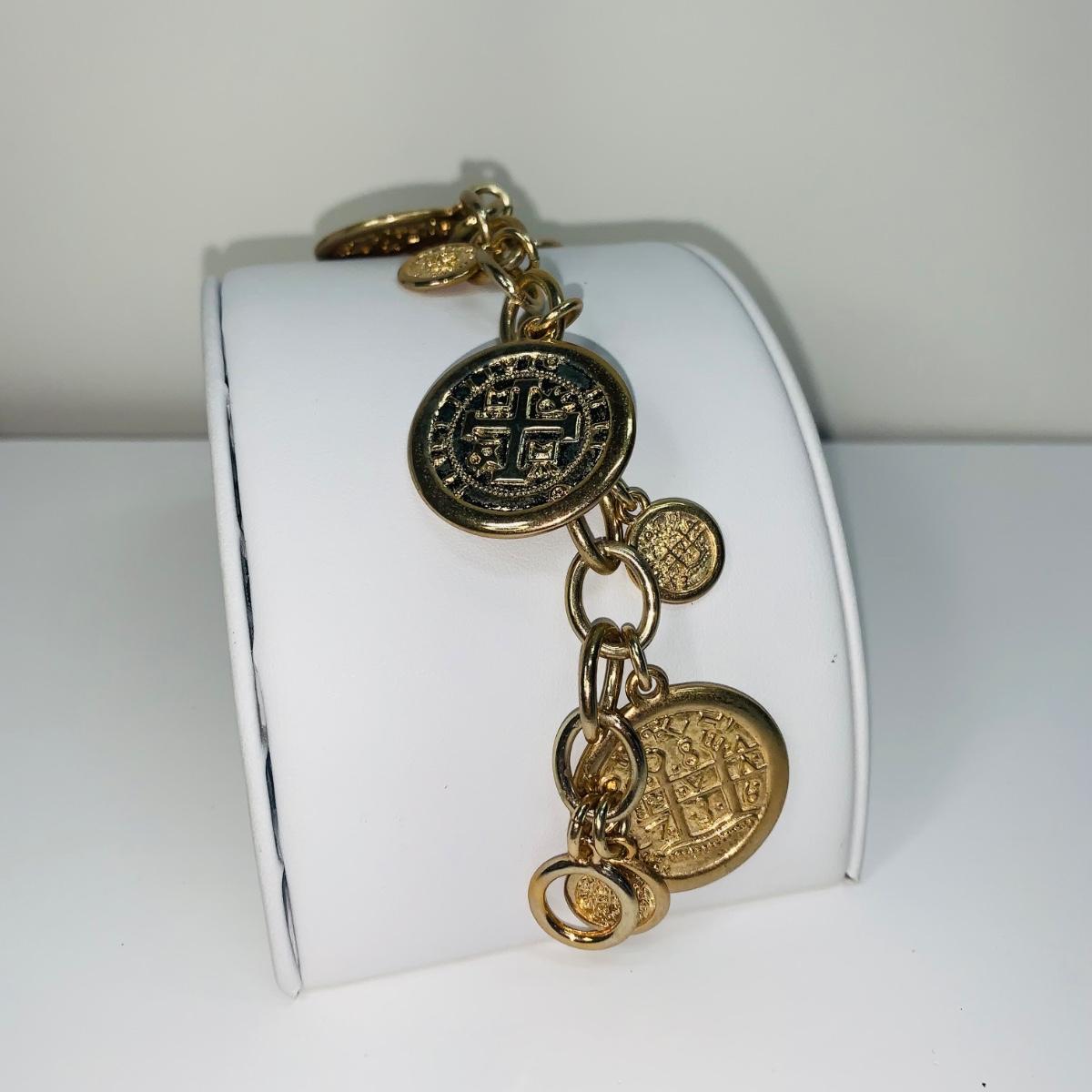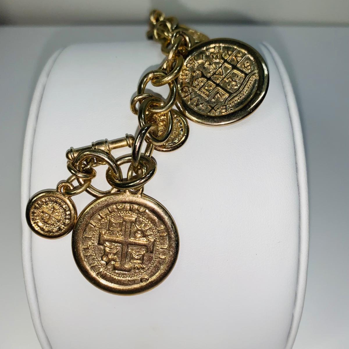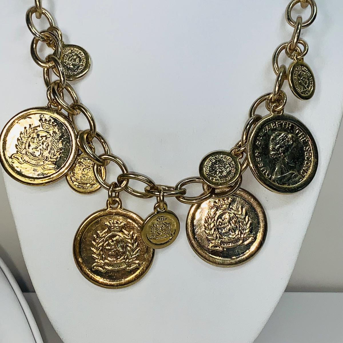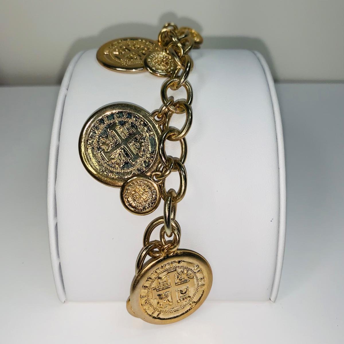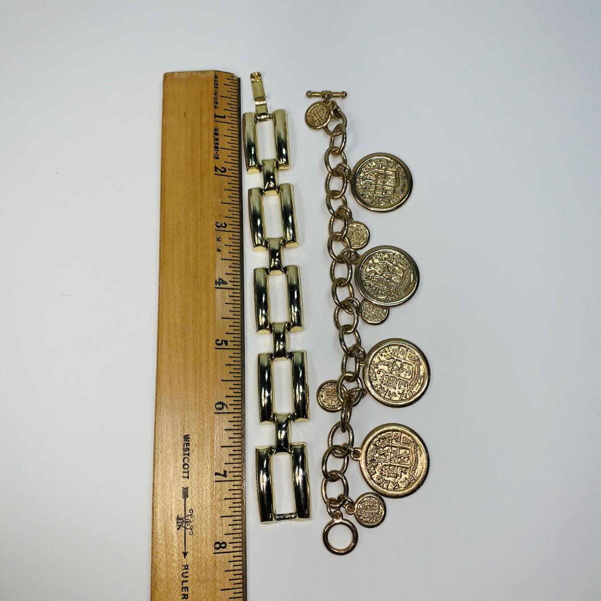LOT 2: Gold Tone Necklace & Bracelet Sets: Faux Coins Charms & Box Chain