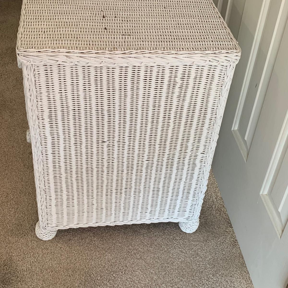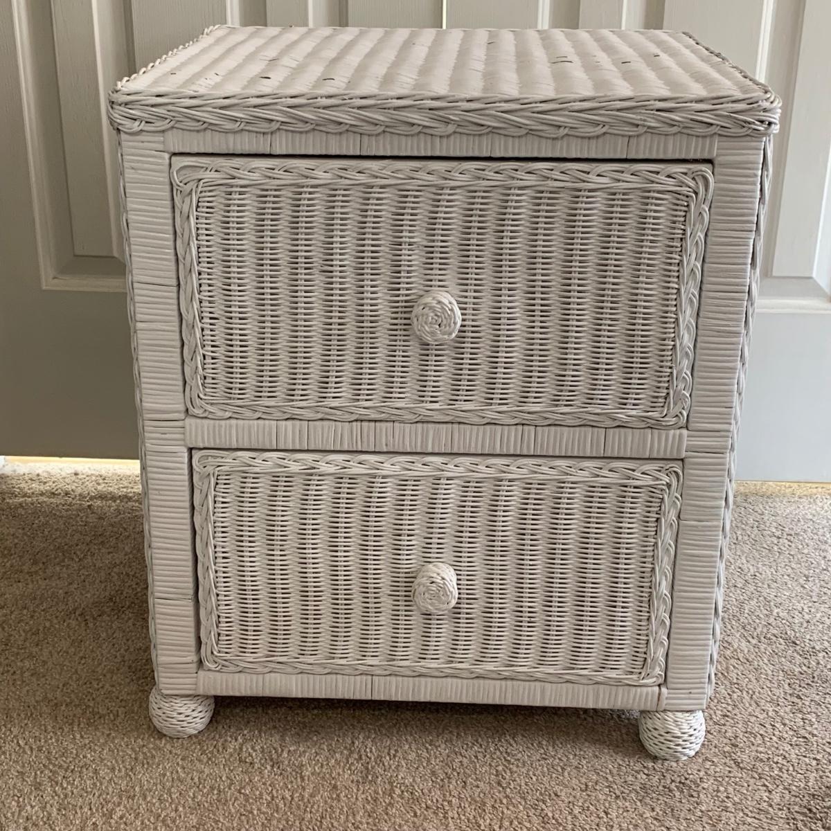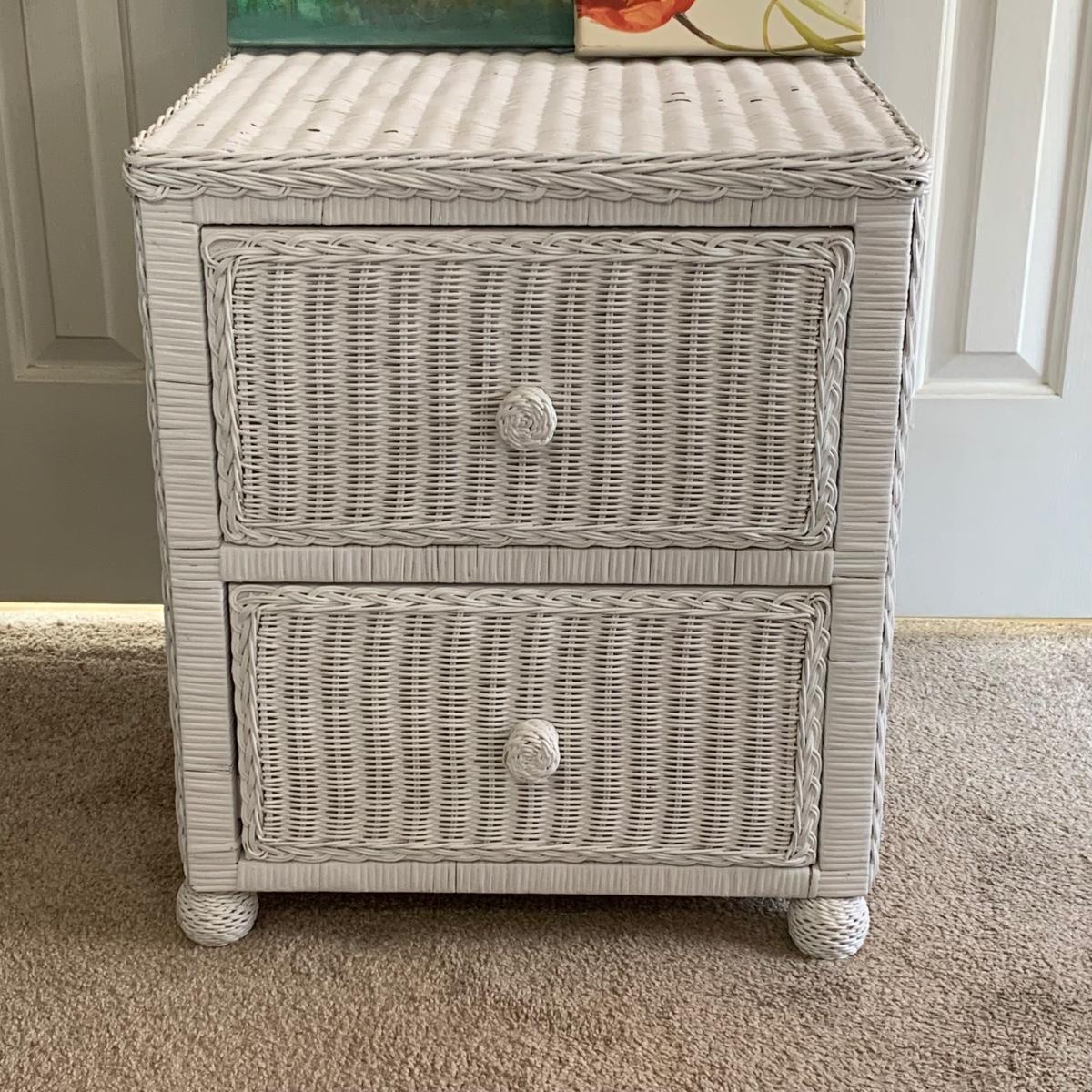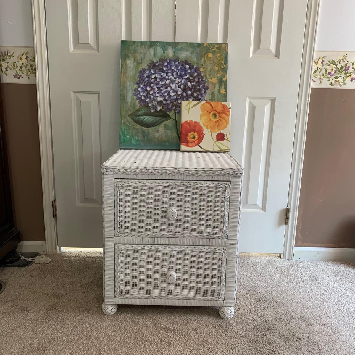 LOT 299R: White Wicker Nightstand & Floral Prints