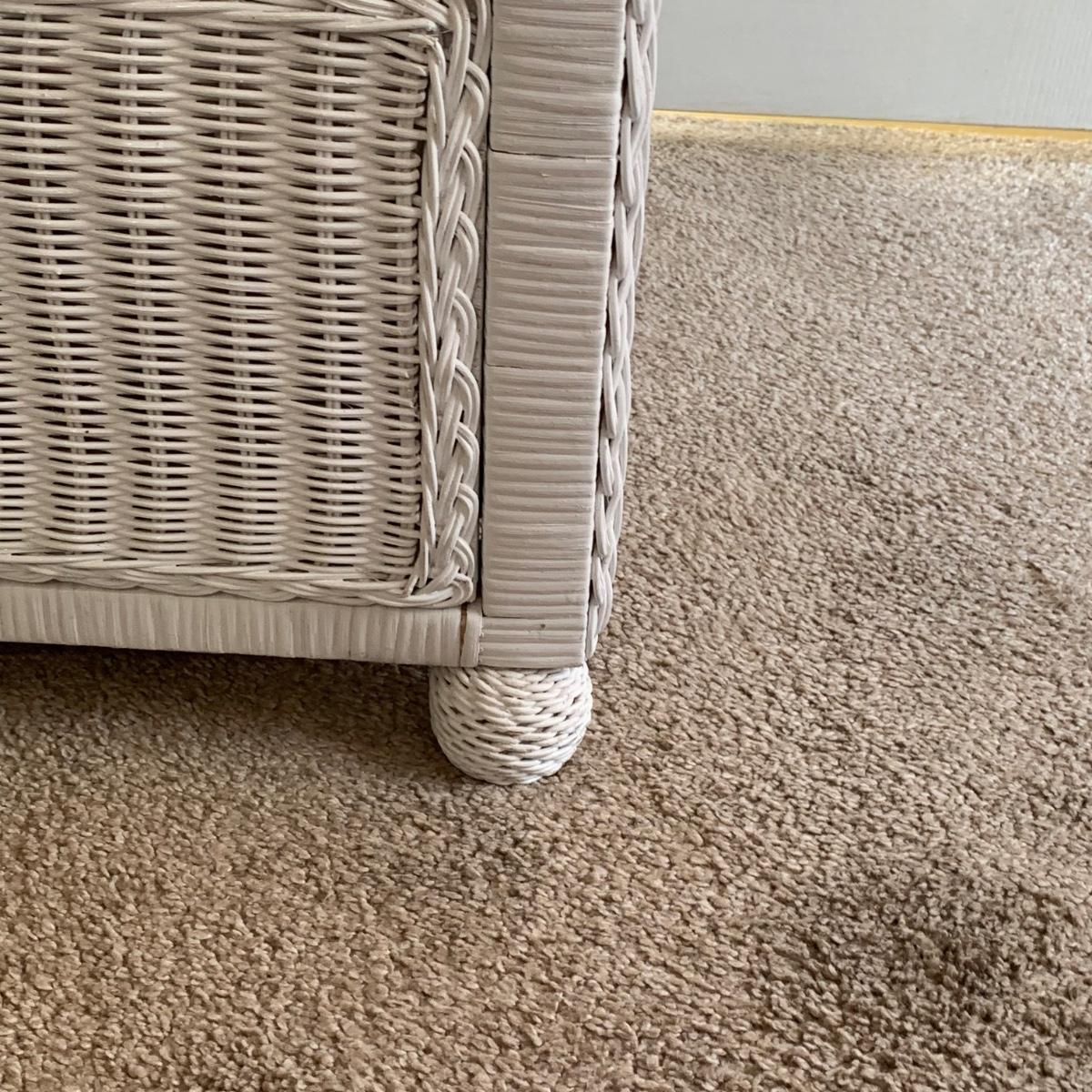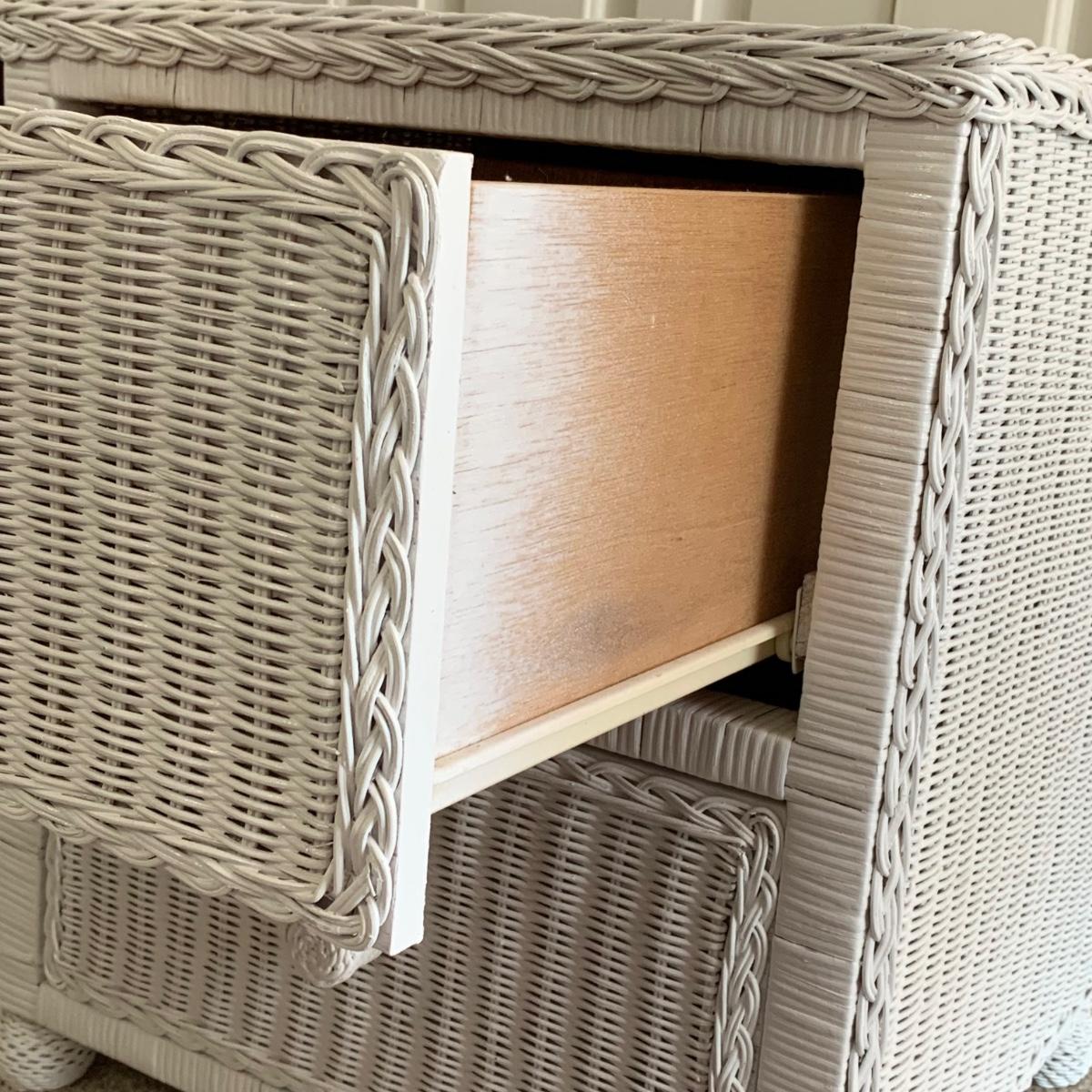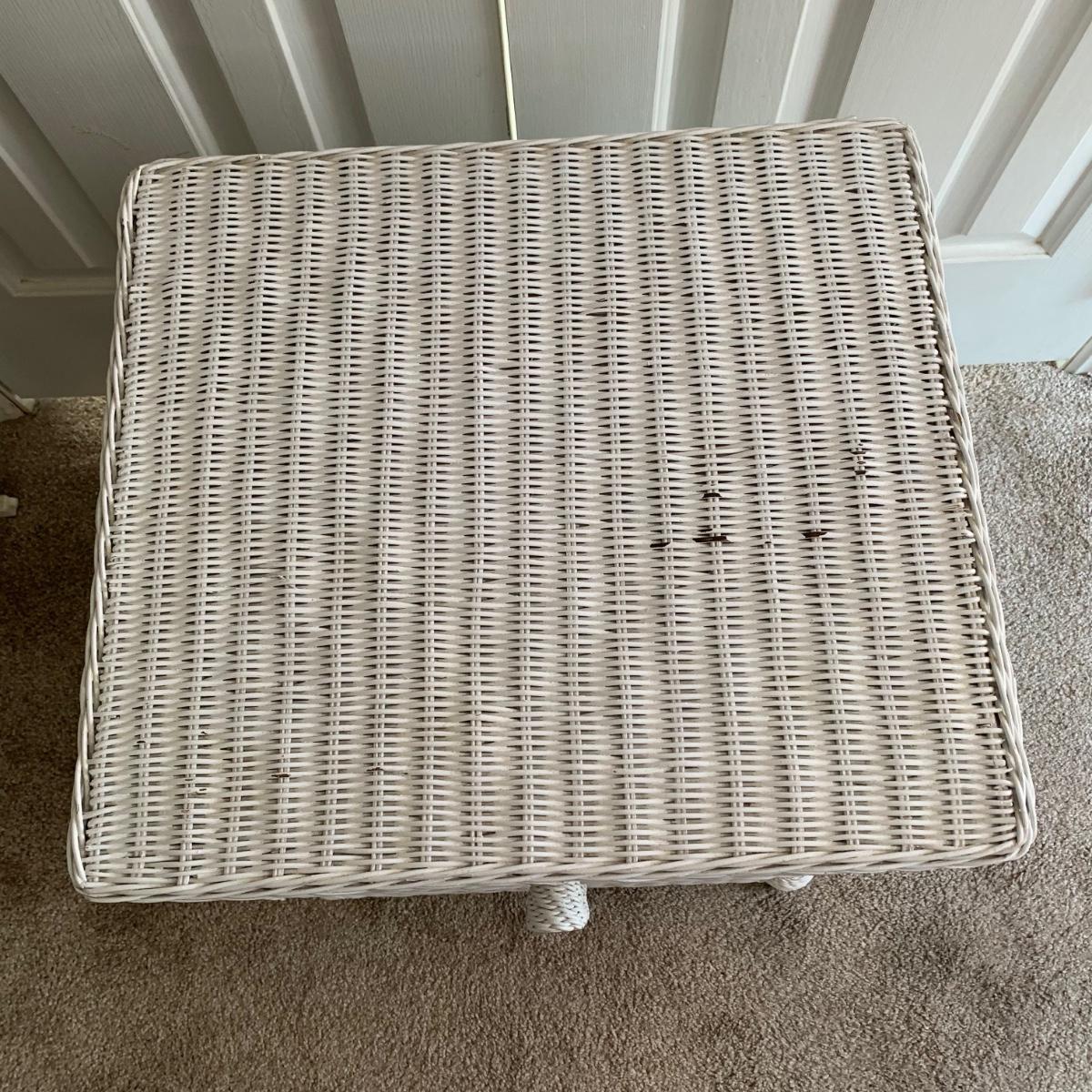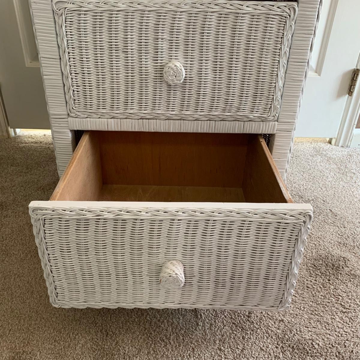 LOT 299R: White Wicker Nightstand & Floral Prints