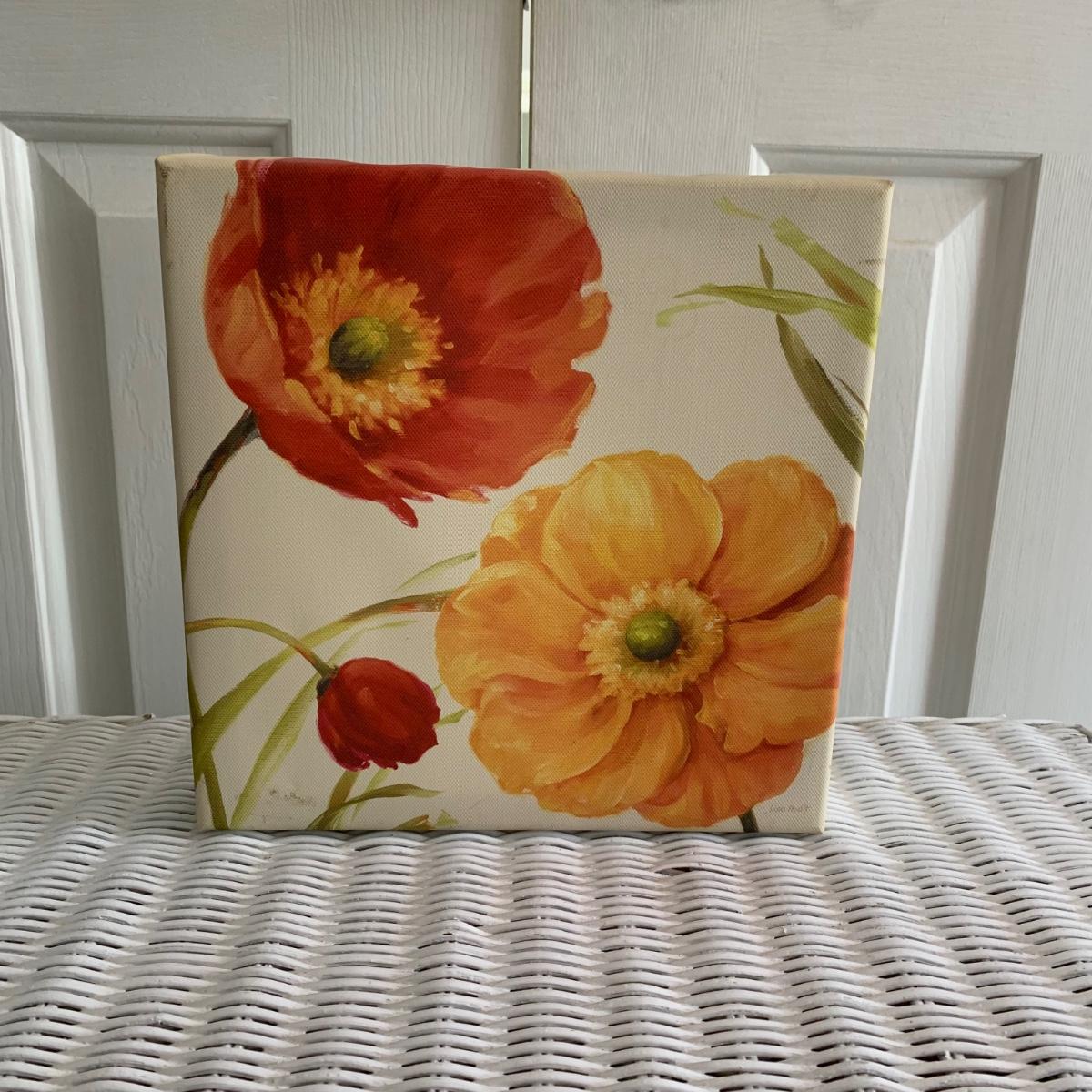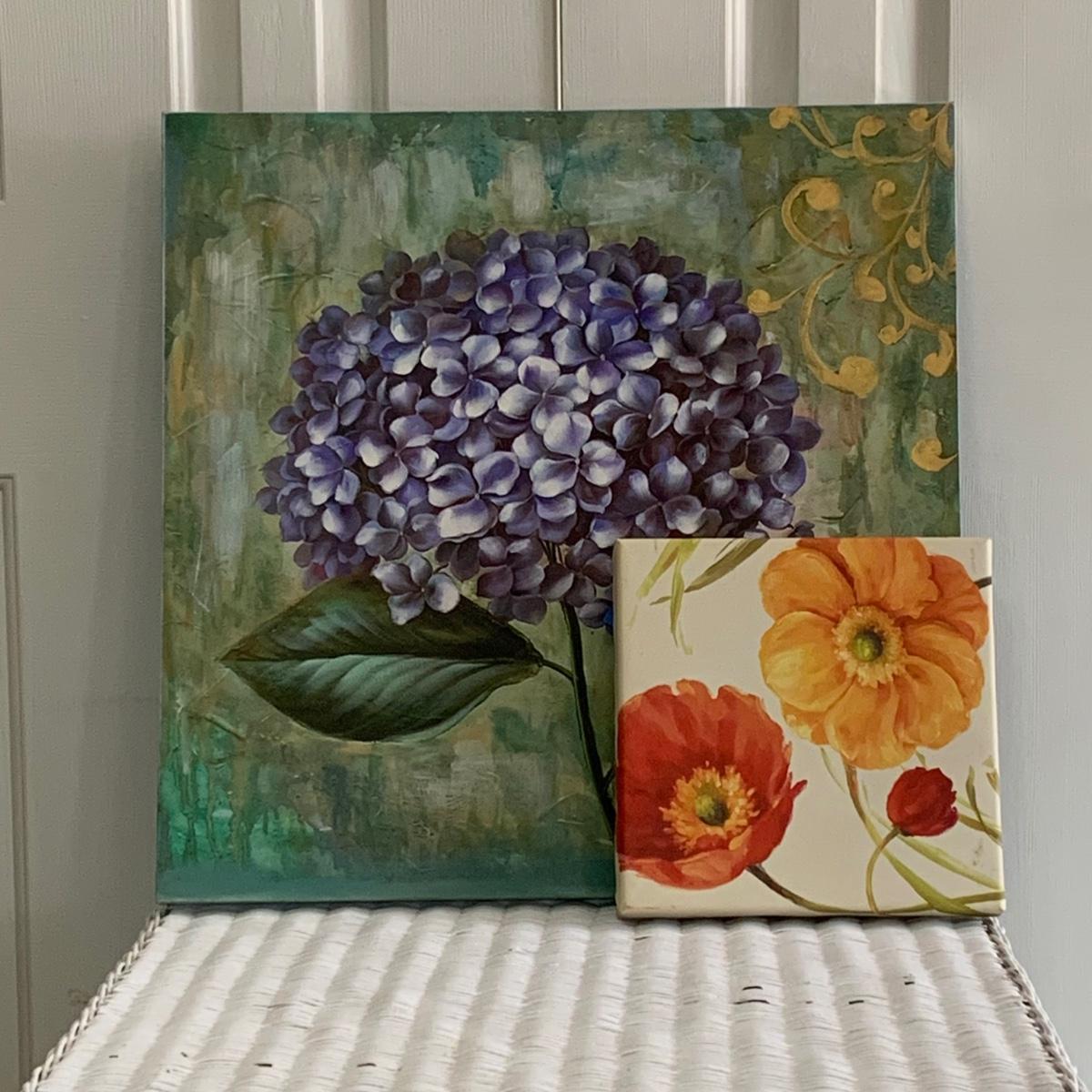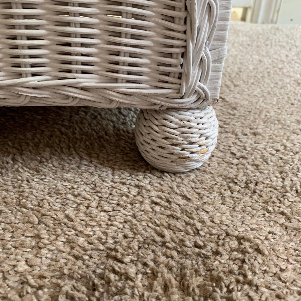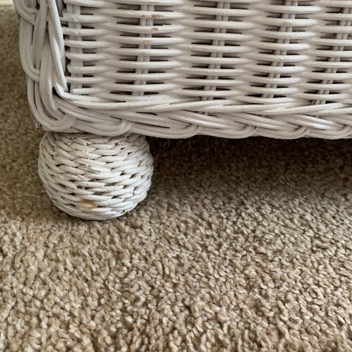 LOT 299R: White Wicker Nightstand & Floral Prints