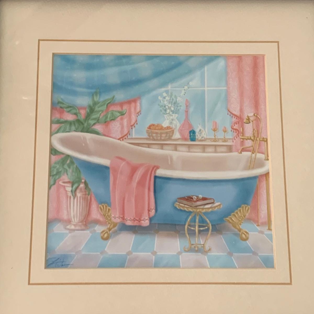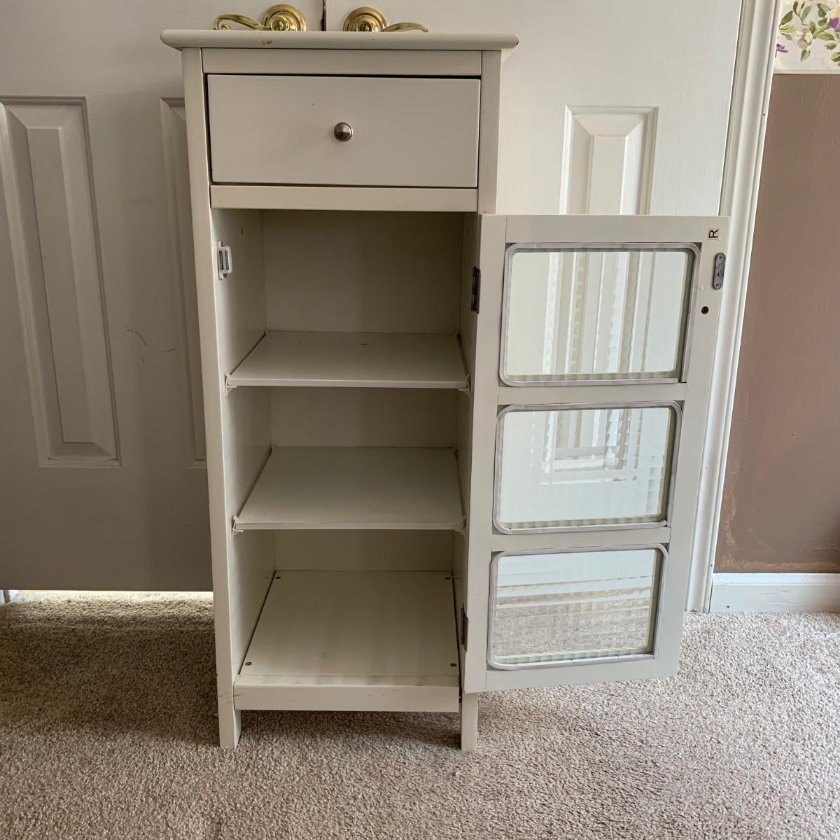 LOT 298R: White Beadboard & Glass Cabinet, Prints & More