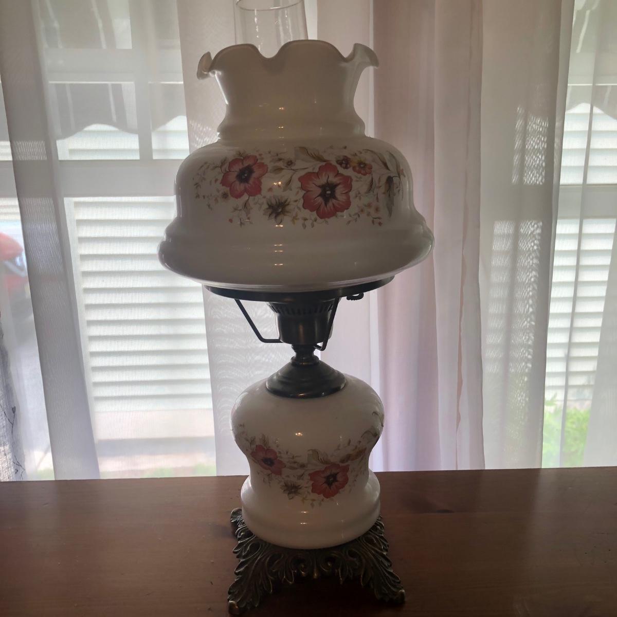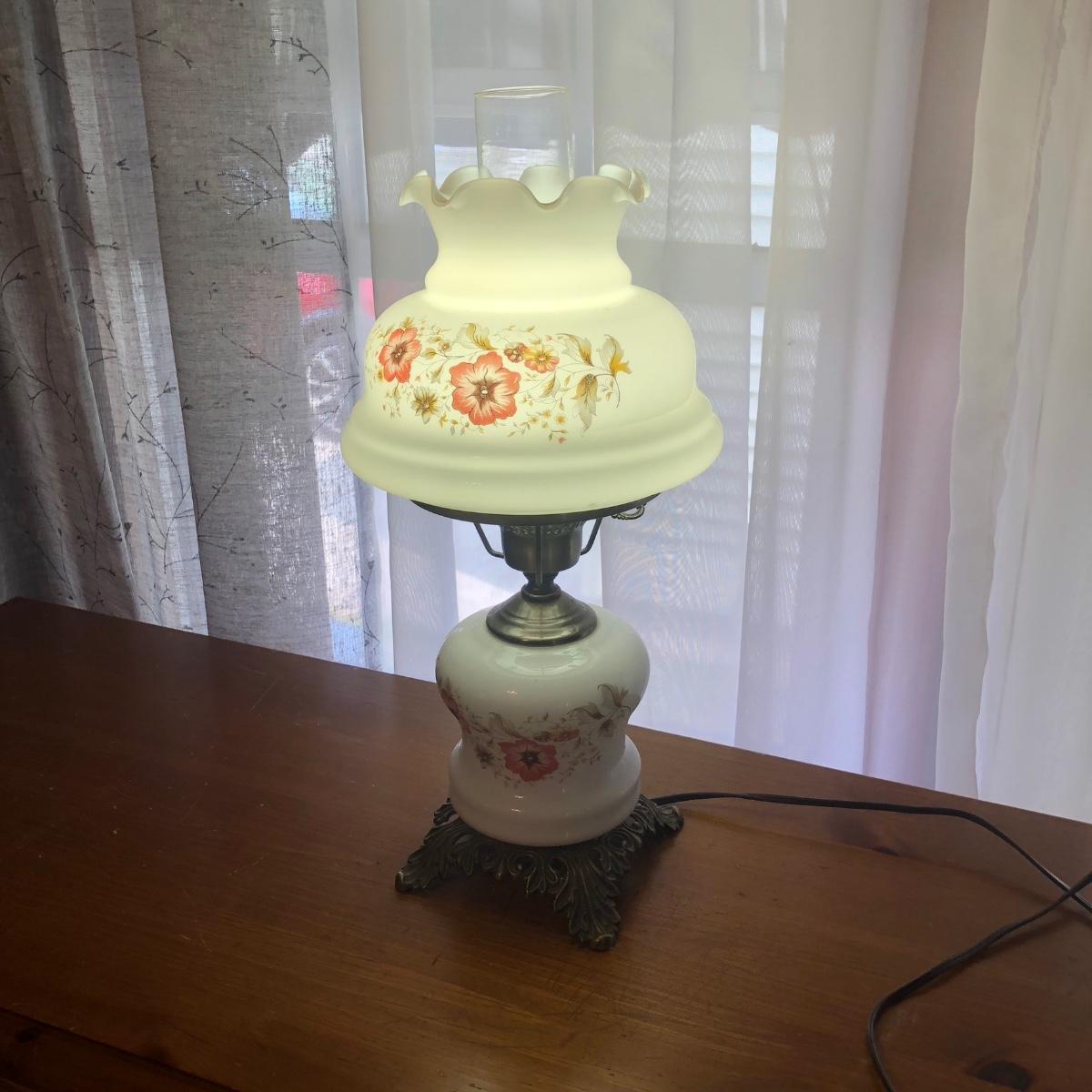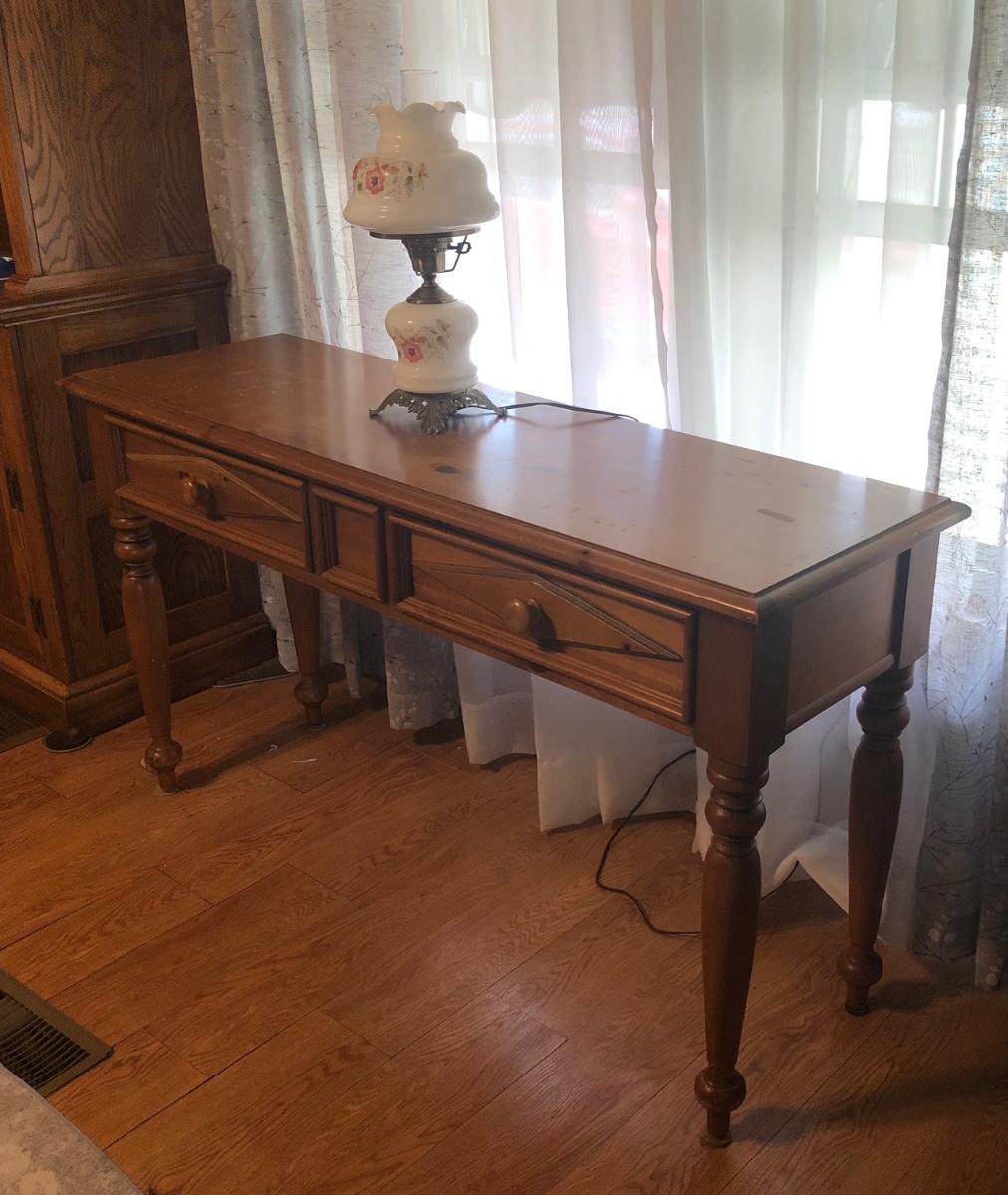 LOT 168M: Broyhill Furniture Console Table & Glass Lamp