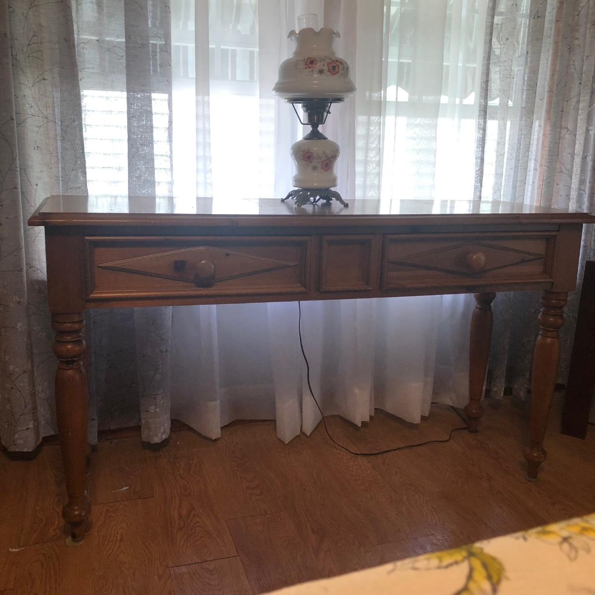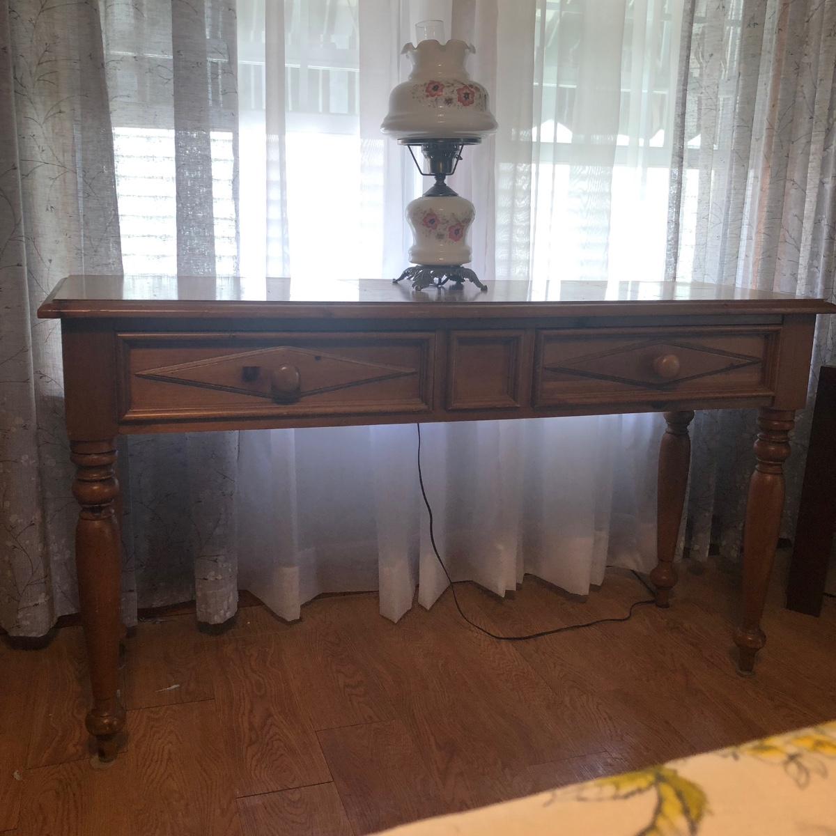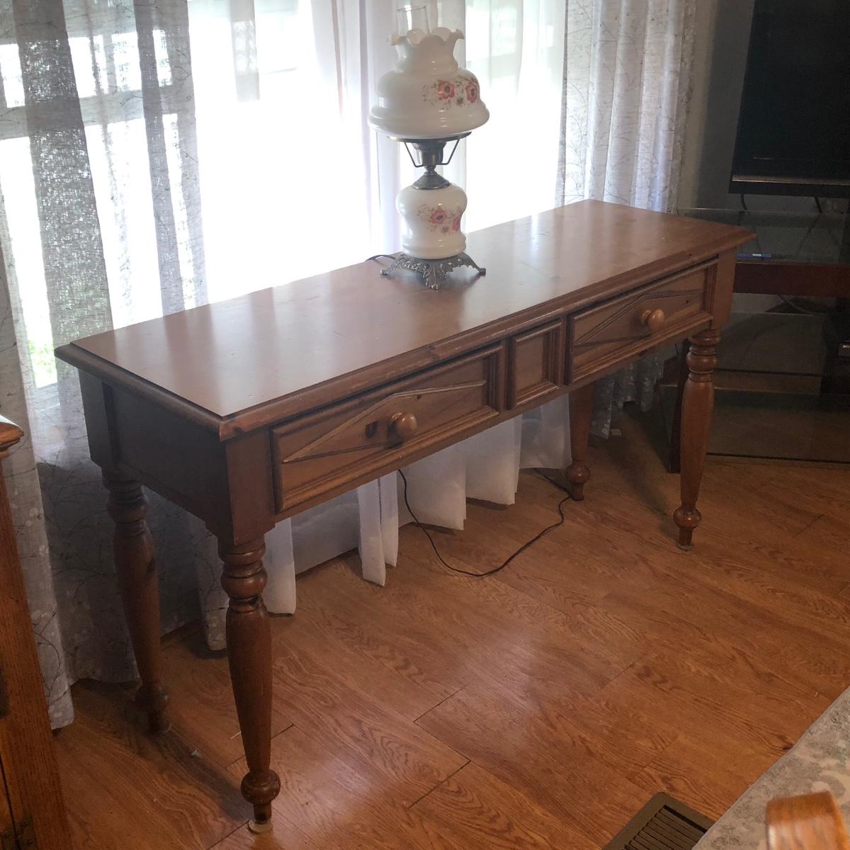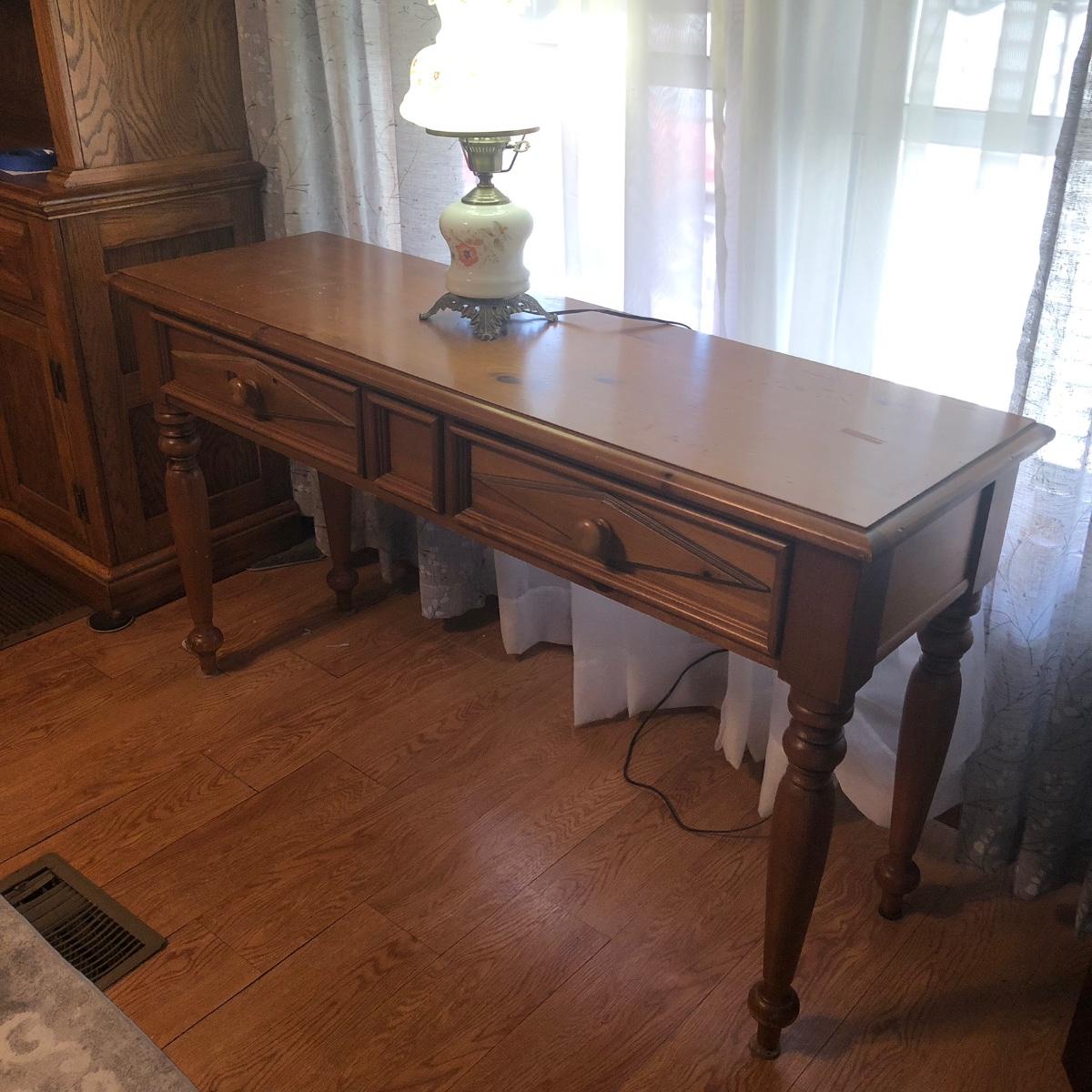 Table measures 52W x 17D x 29.5H. Lamp works.