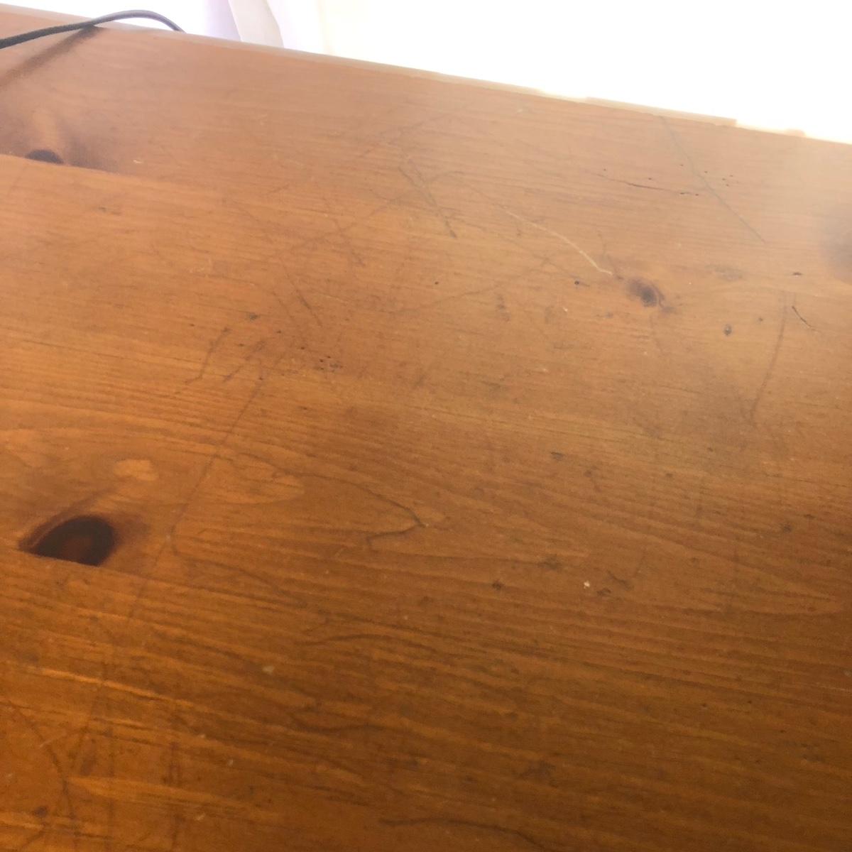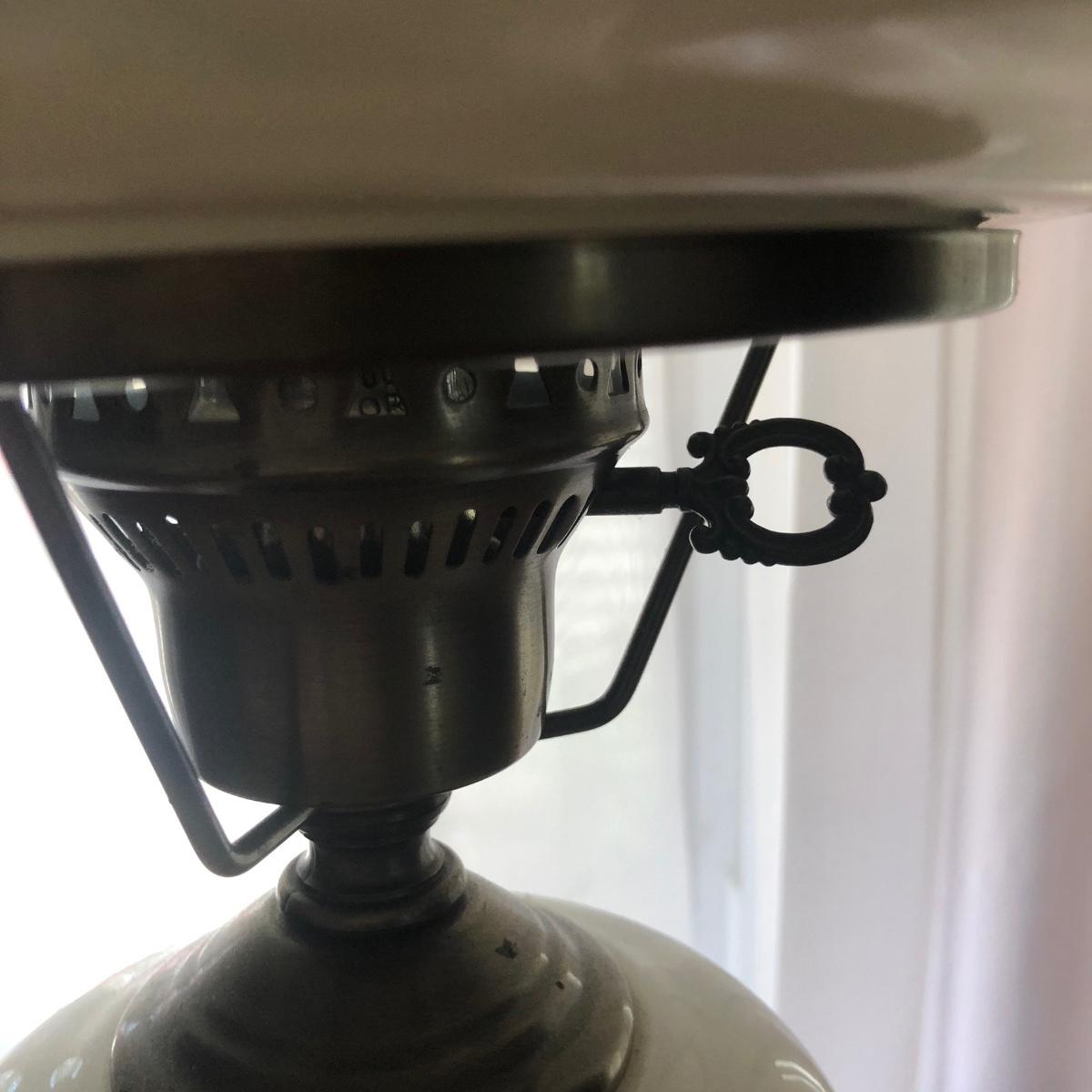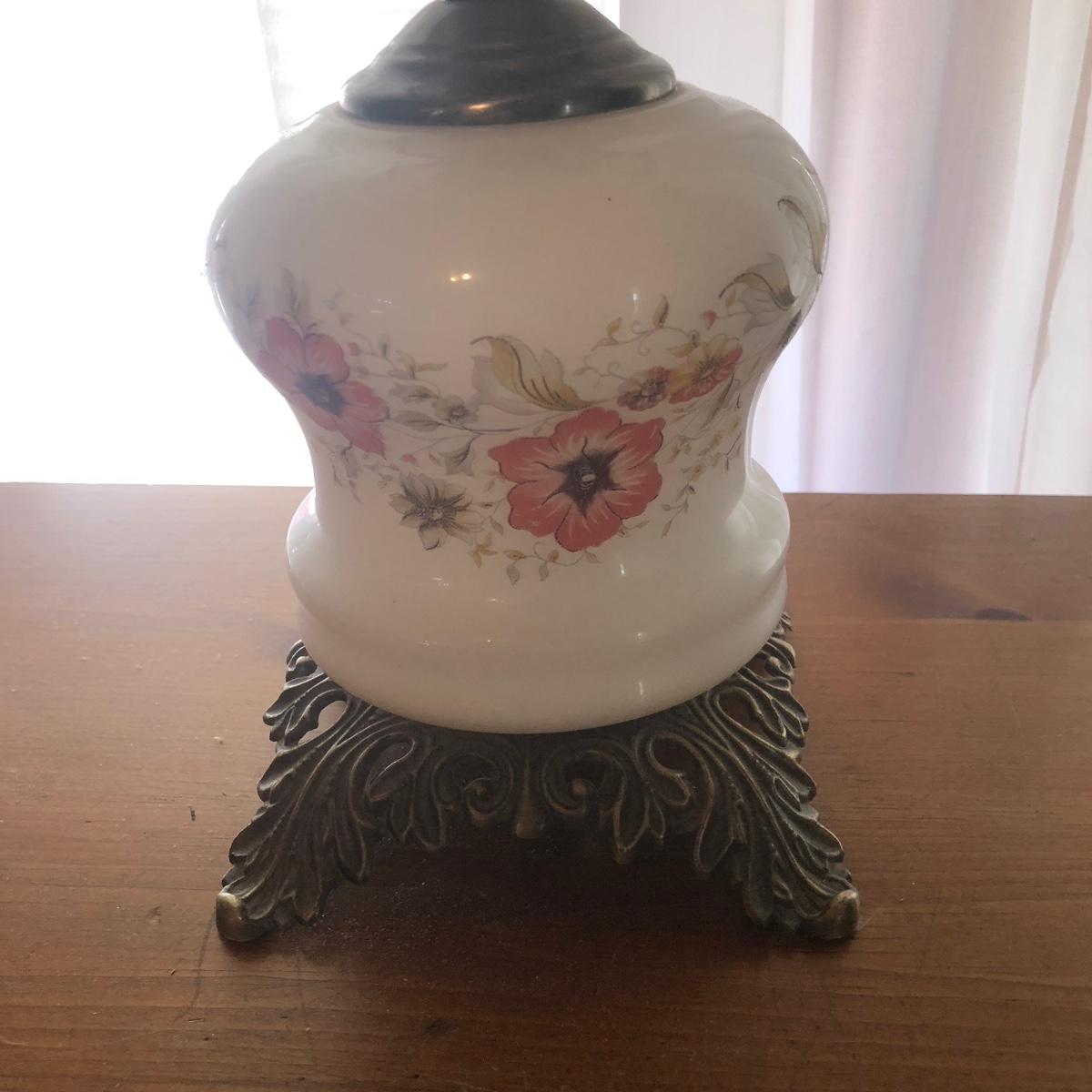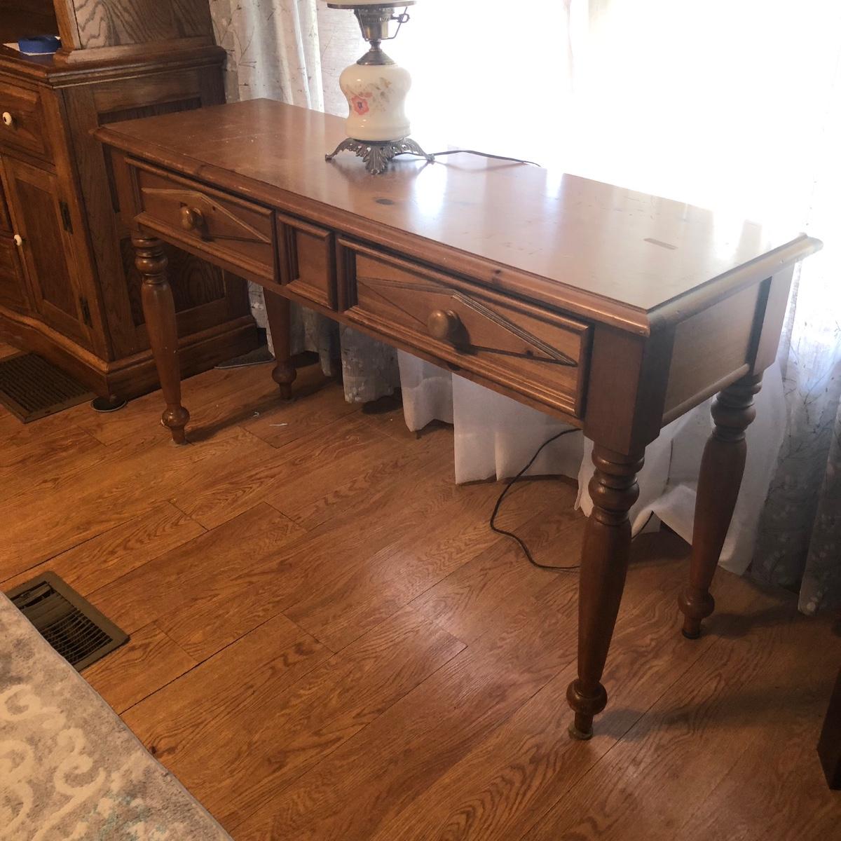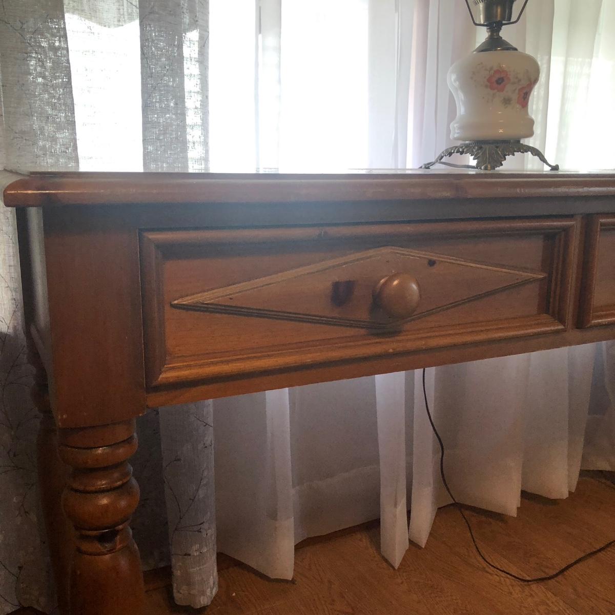 Table measures 52W x 17D x 29.5H. Lamp works.