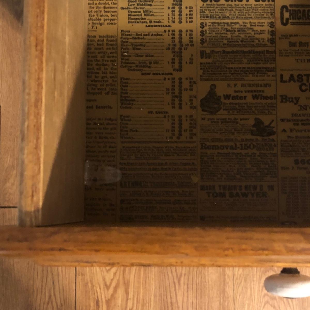LOT 166M: Wooden Hutch w/ Newspaper Pattern Drawers