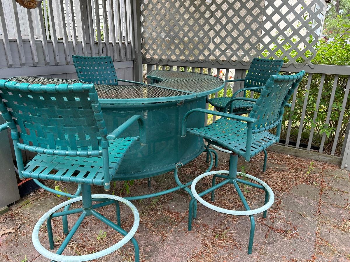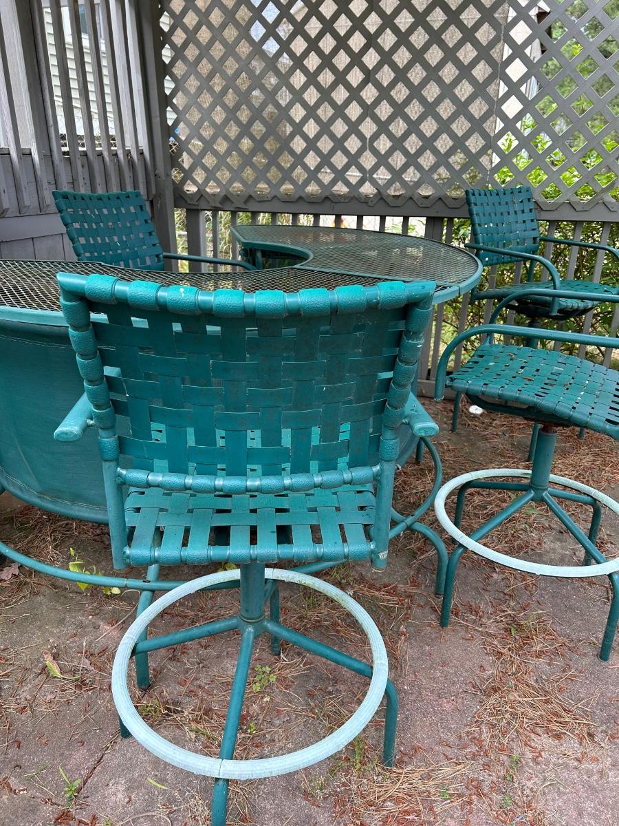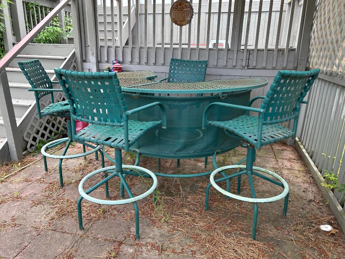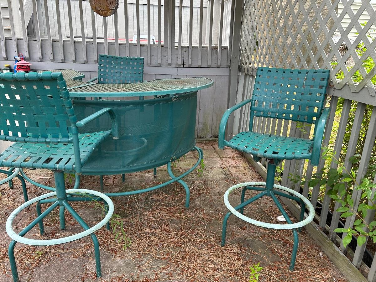 Perfect up-cycle project. Four swivel bar chairs and a bar.