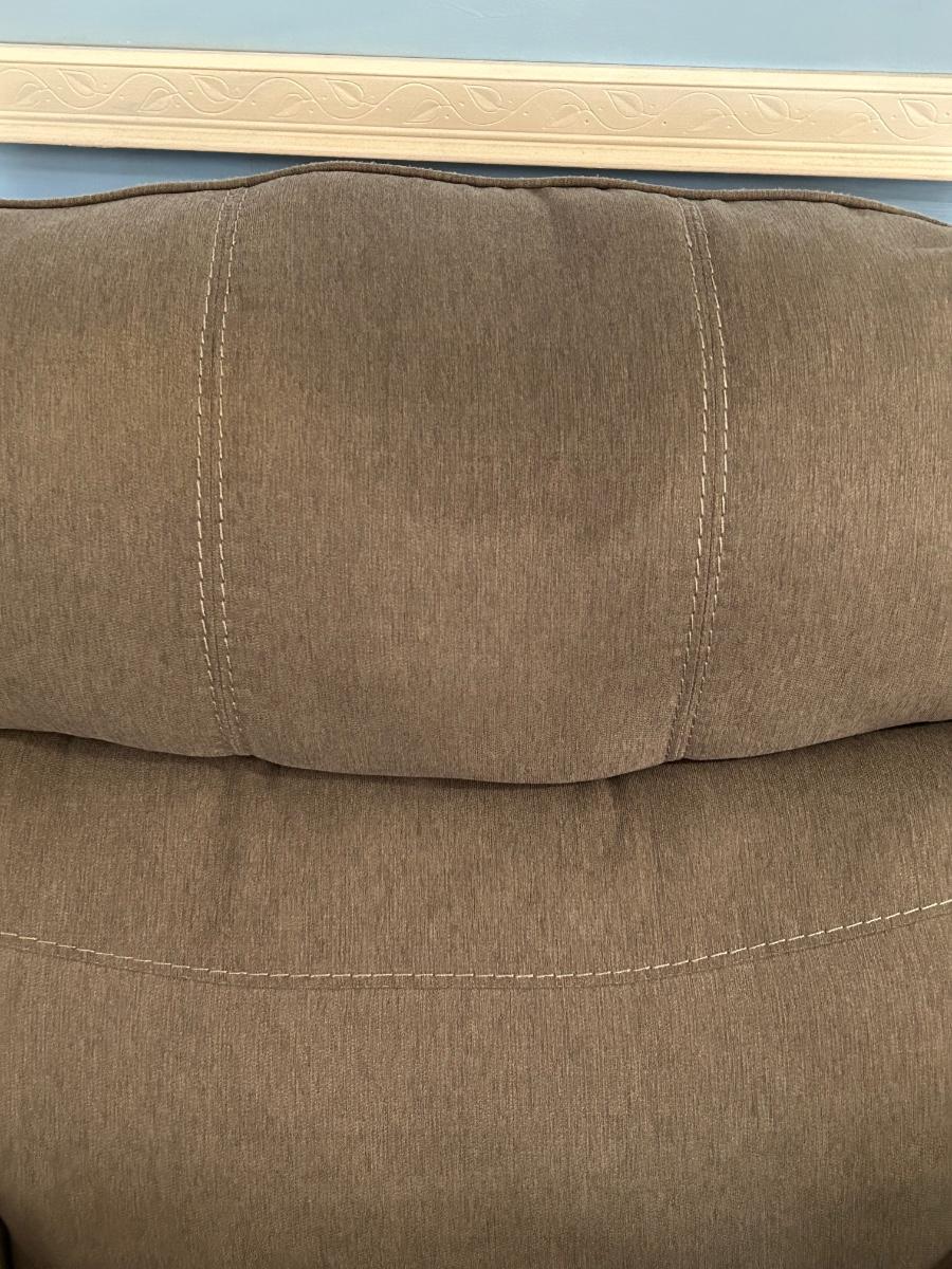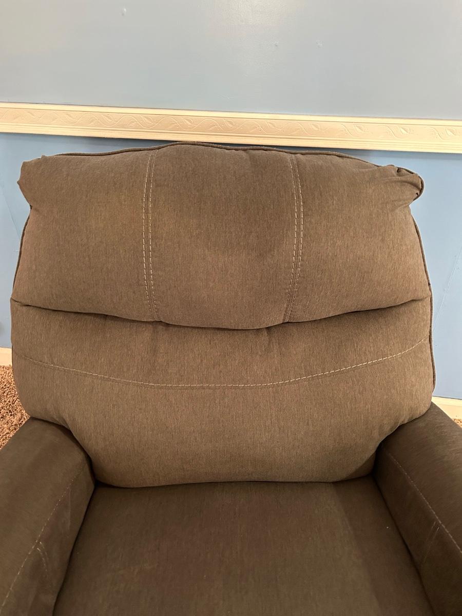Chair is in good used condition. No stains or rips. Color is brown with an olive green undertone.