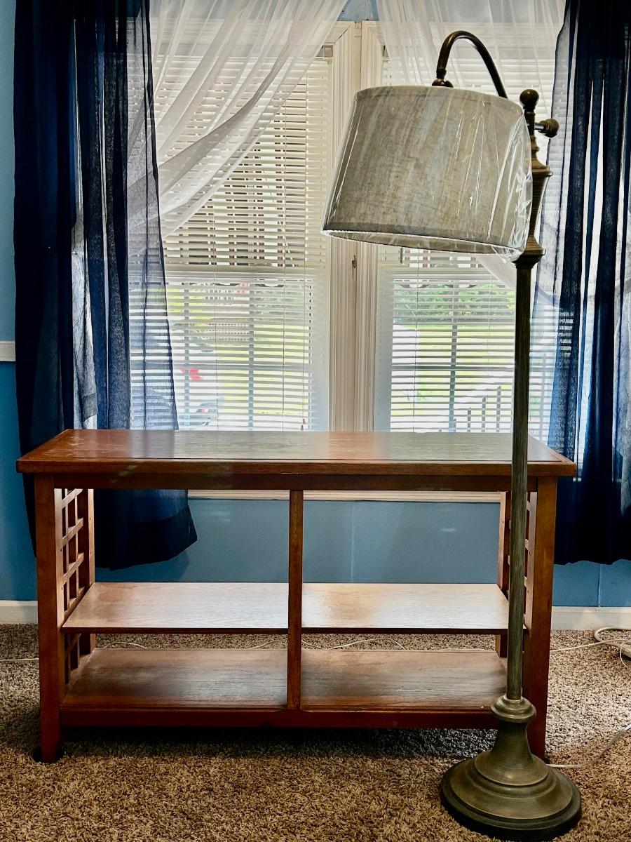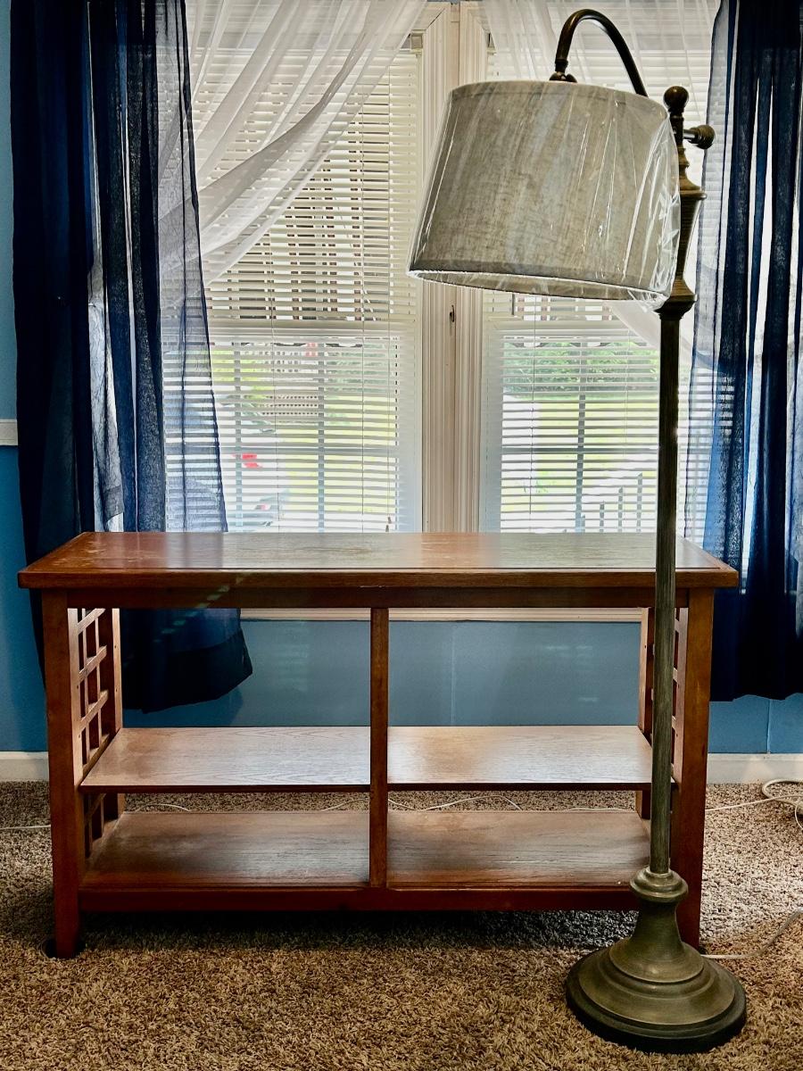 LOT 249: Wood Side Table & Floor Lamp
