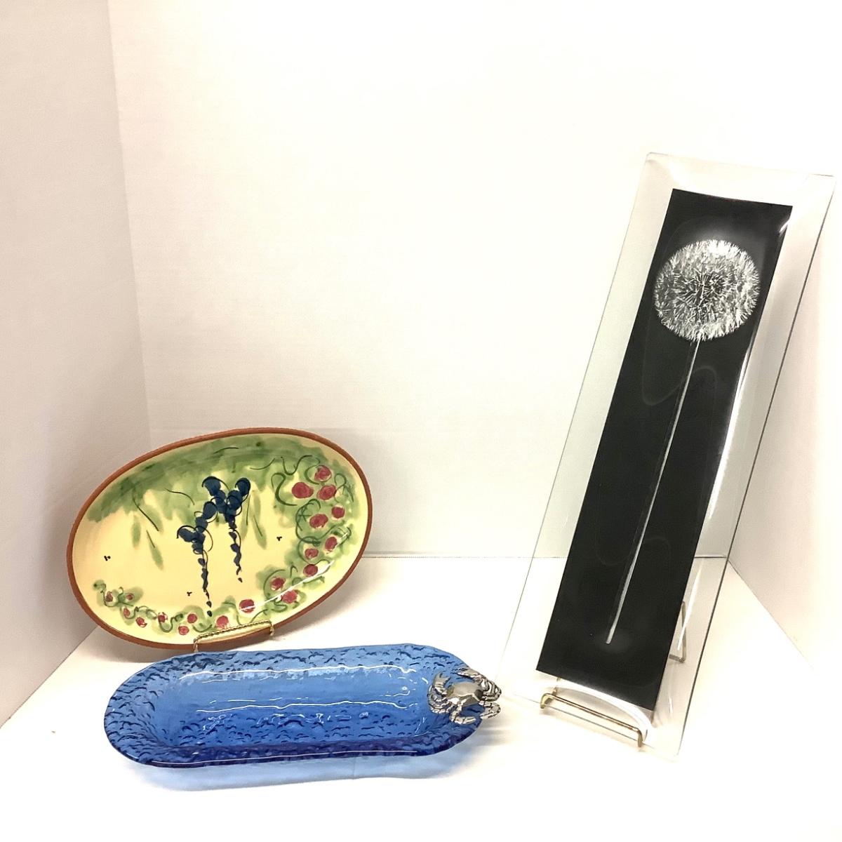 1 ) Blue Glass Tray with Silver Crab, measures 13" x 5.5"