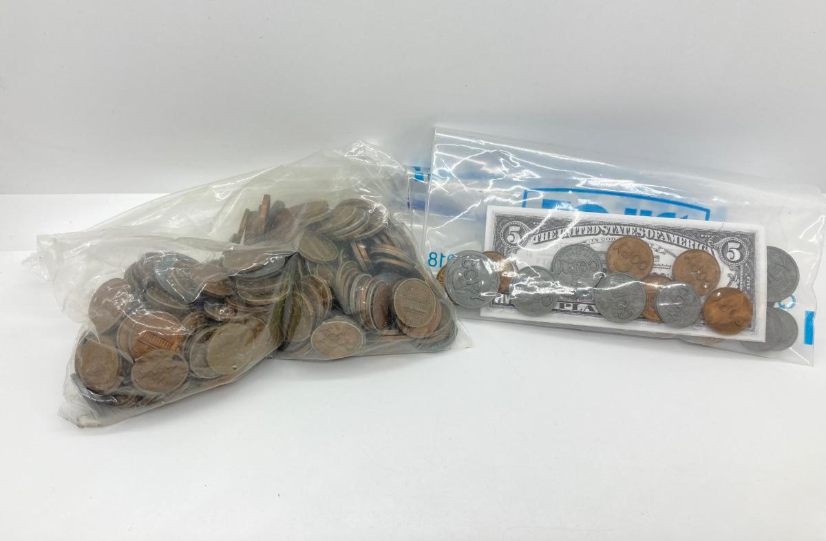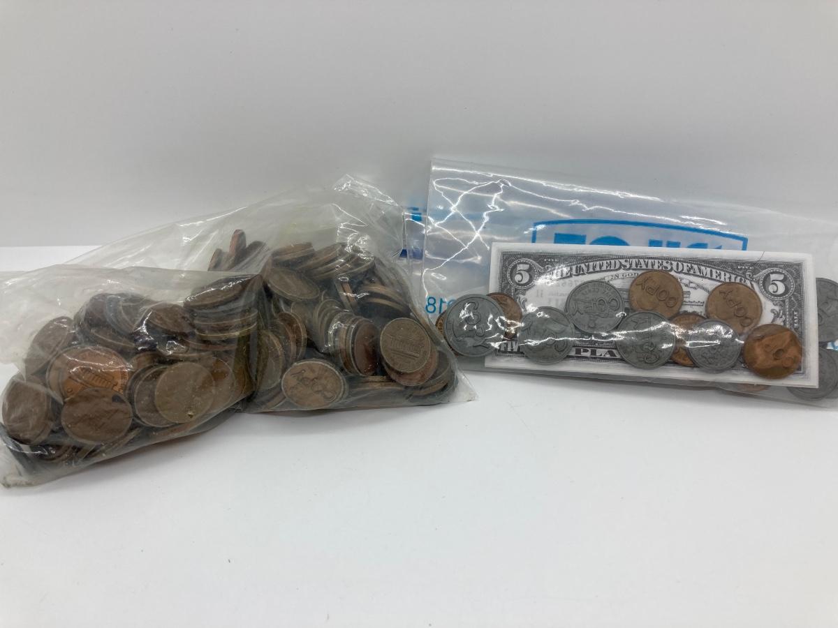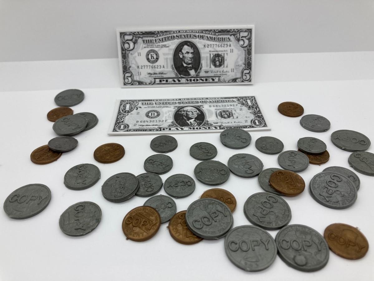 LOT 73: Play Money Lot - Plastic Coins and Paper Bills