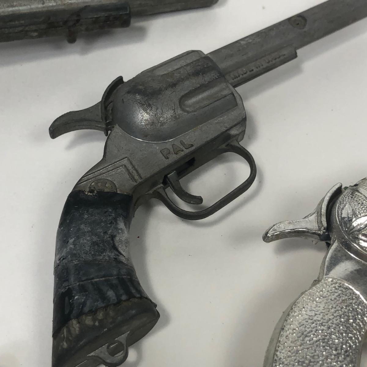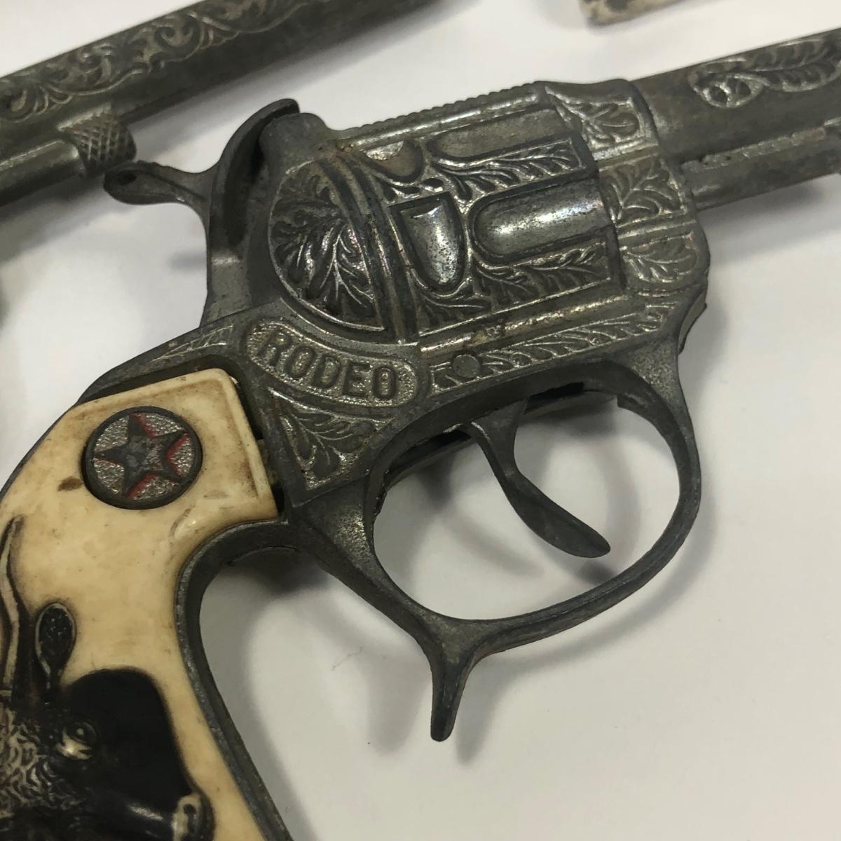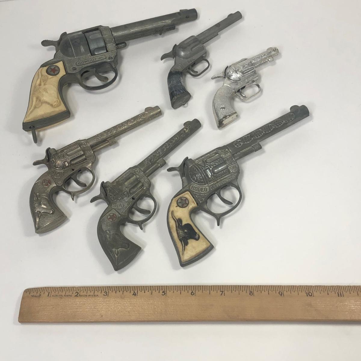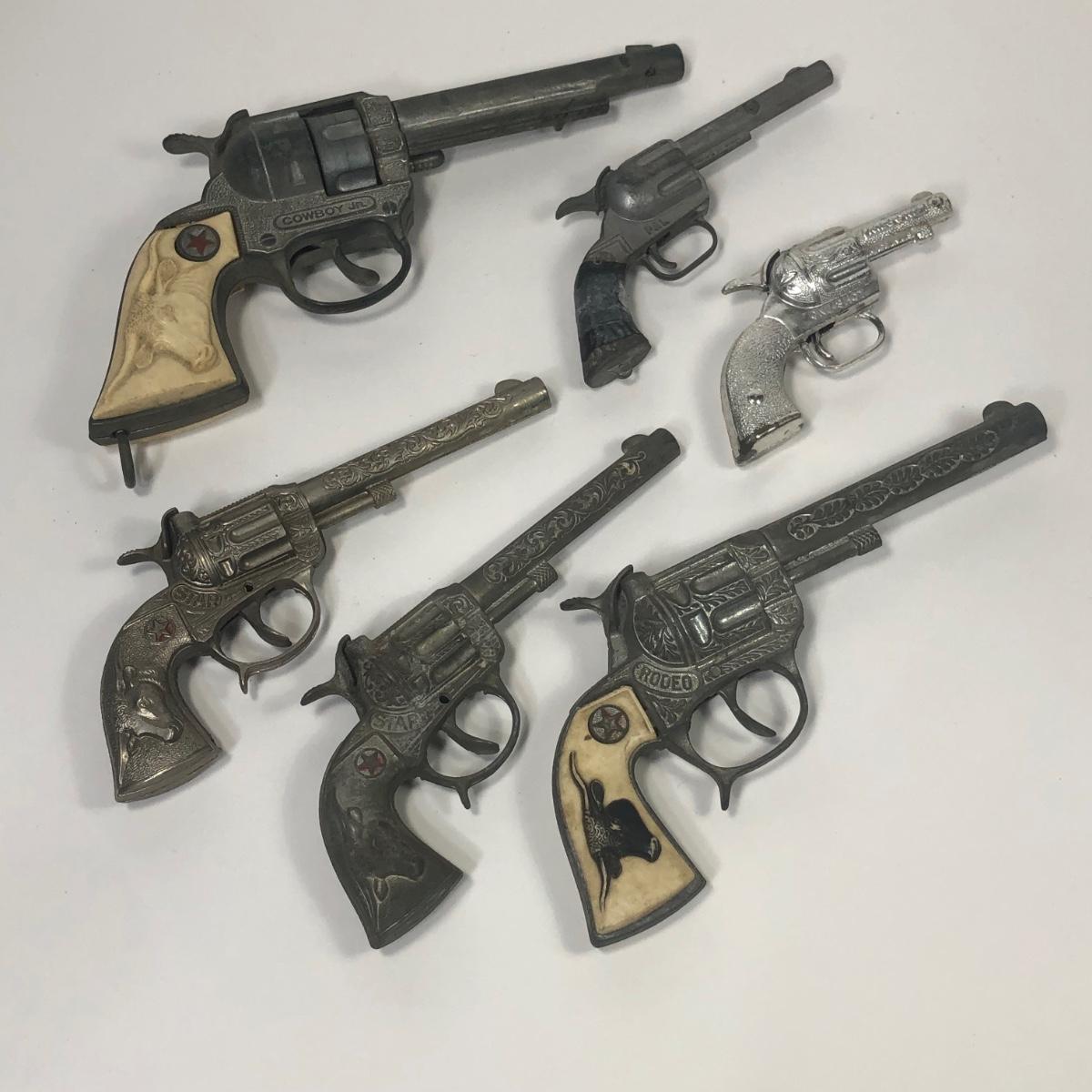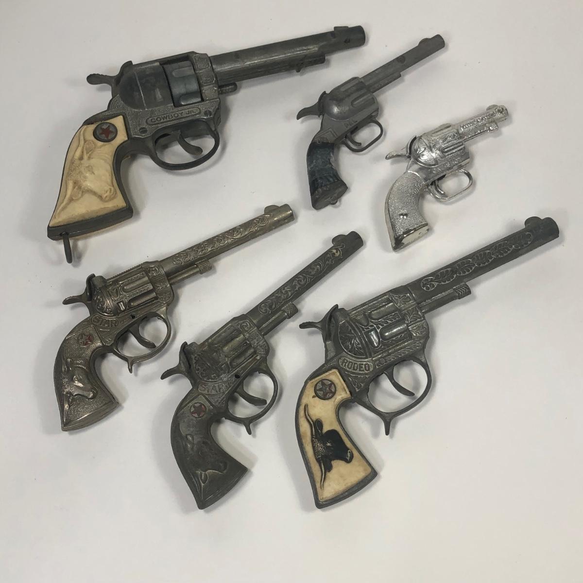 LOT 110: Vintage Toy Revolvers - 1950s Hubley Rodeo Toy Cap Gun, Mid-1950s Hubley Cowboy Jr Repeating Cap Pistol, 2 Star Cap Guns, Kilgore One-Shot & More