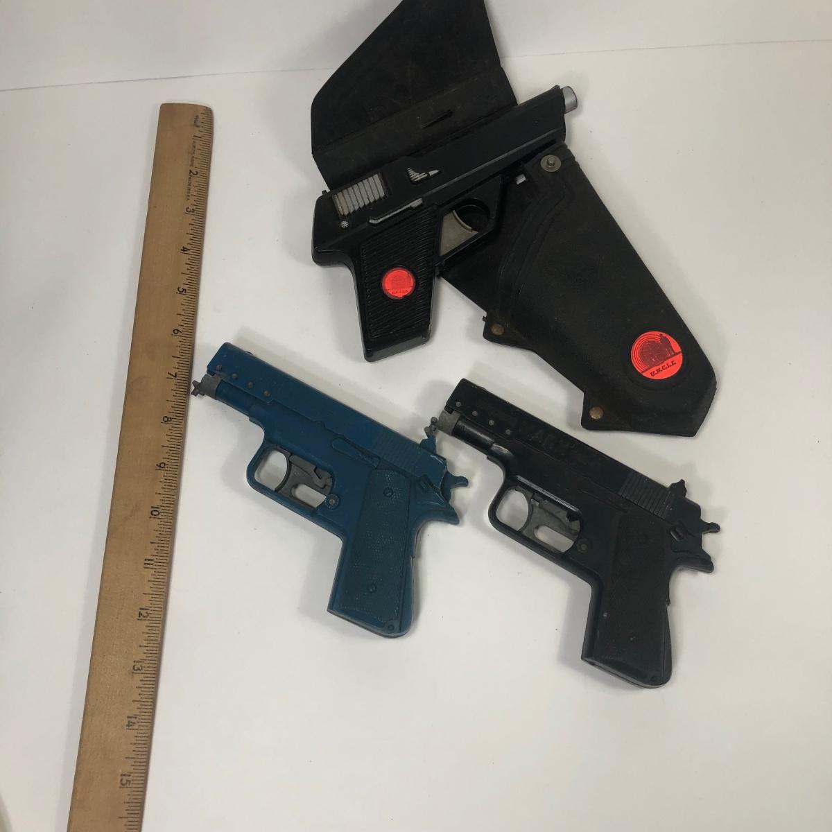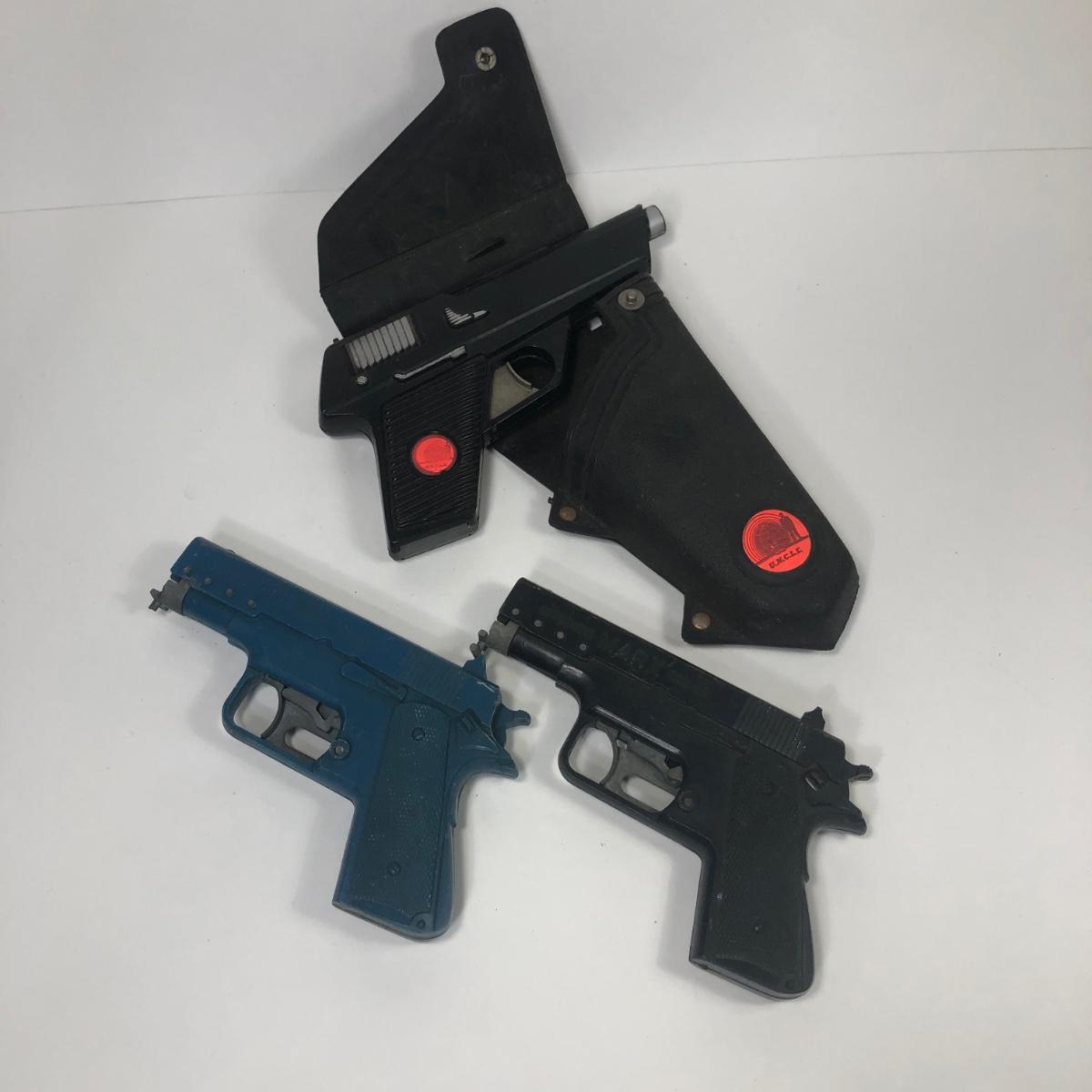 LOT 111: 1965 Ideal Toy Corp. ""Man from UNCLE" Illya Kuryakin Toy Pistol w/ Holster & 2 Vintage Automatic Marx Cal .45 Toys