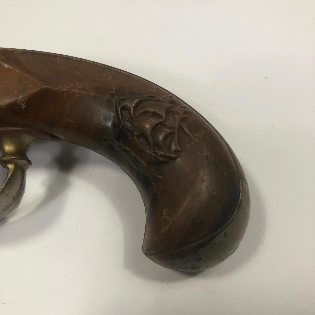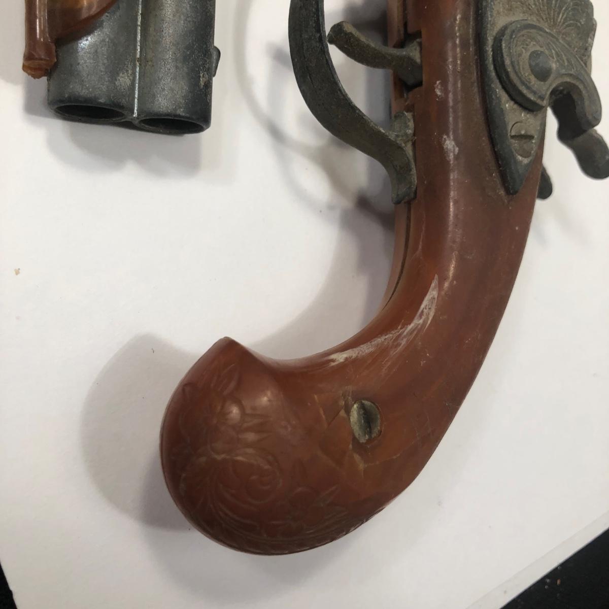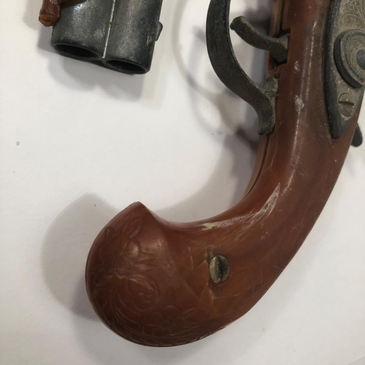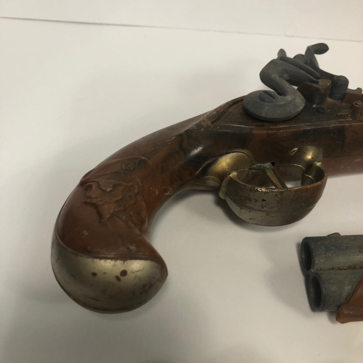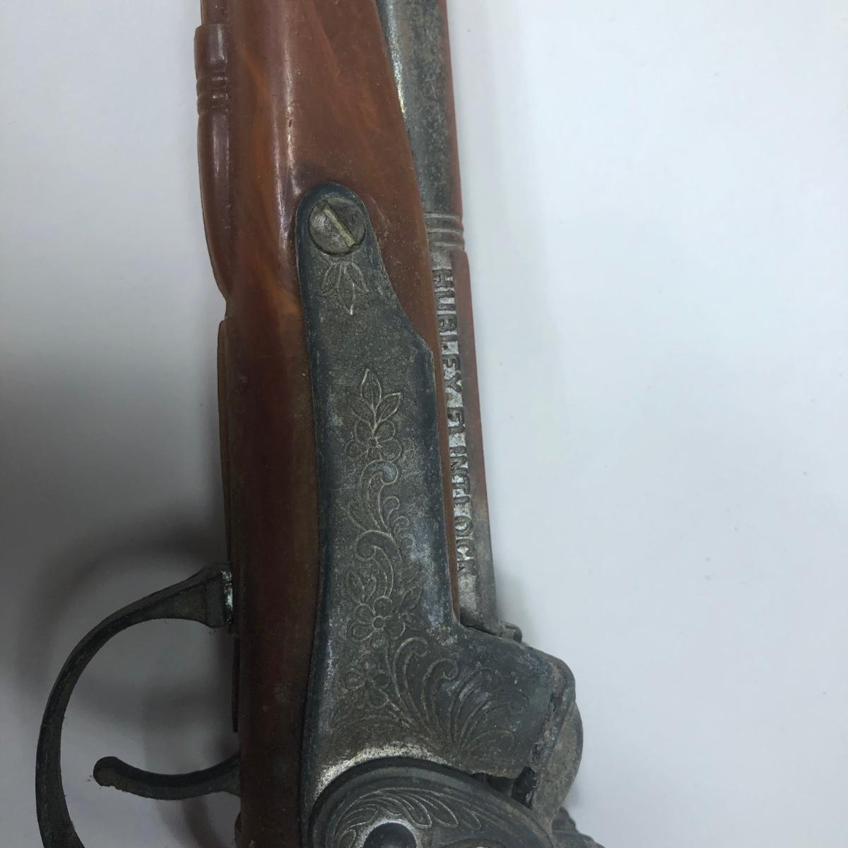 LOT 113: Two 1950s Hubley Flintlock Pistol Cap Guns, Davy Crockett Plastic Pistol Toy & More