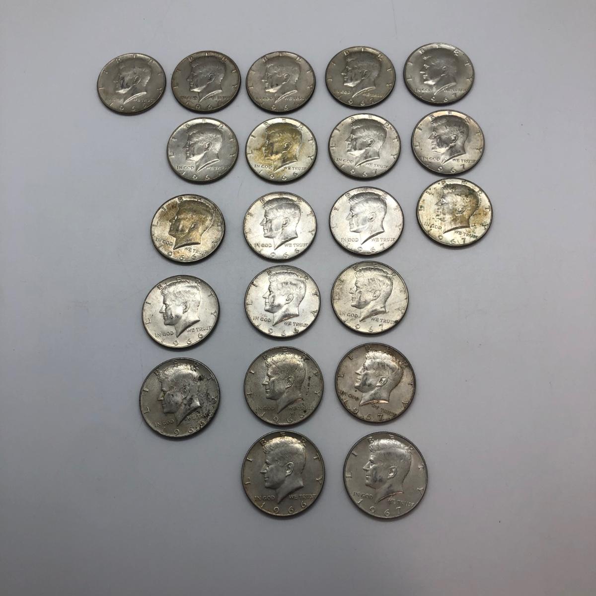 LOT 118: 21 John F. Kennedy 40% Silver Half Dollars (1965-1967)