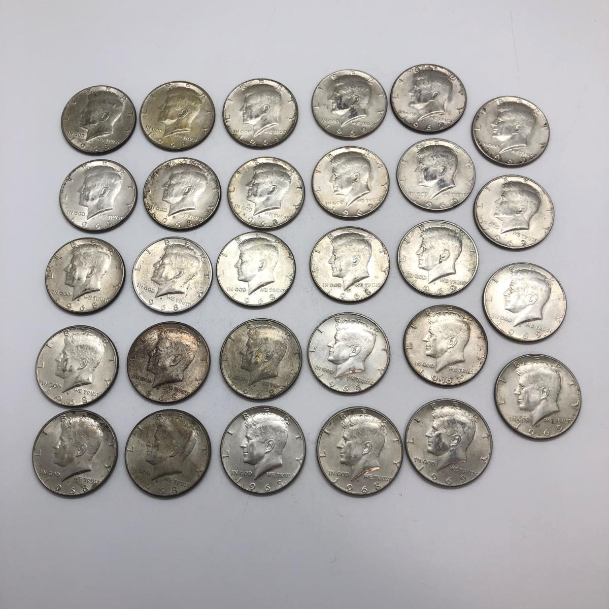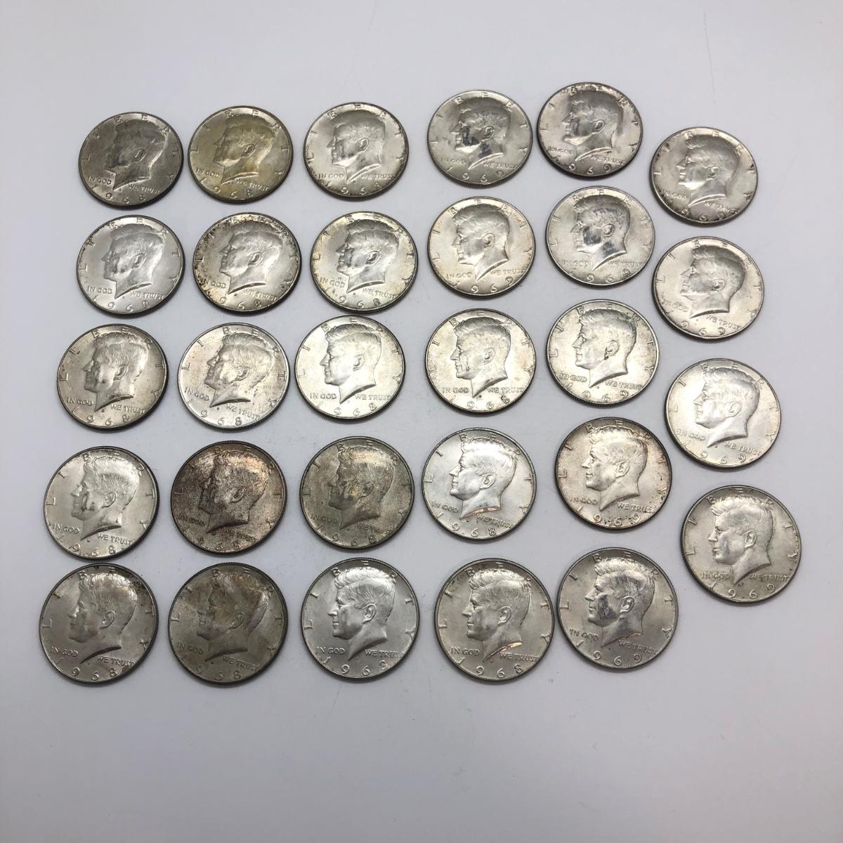 LOT 124: 29 John F. Kennedy 40% Silver Half Dollars (1968-1969)