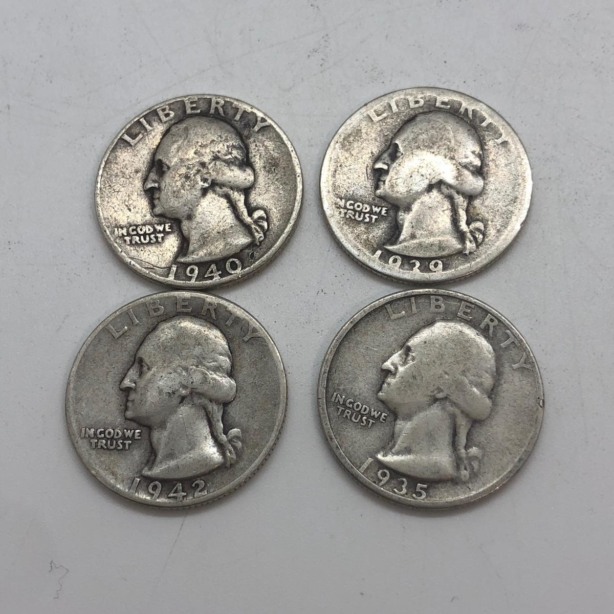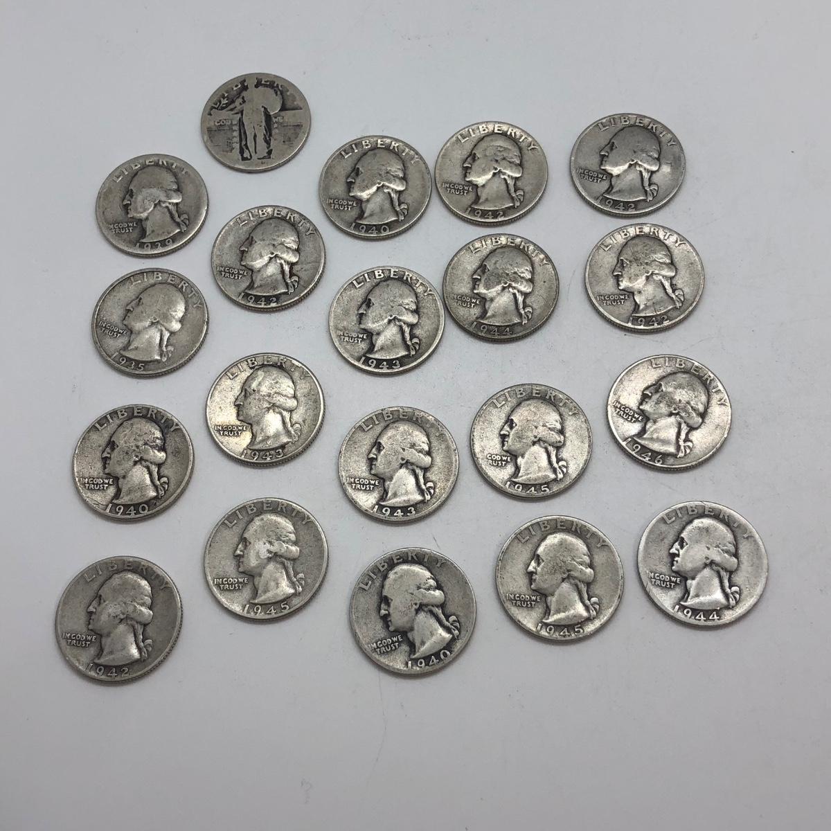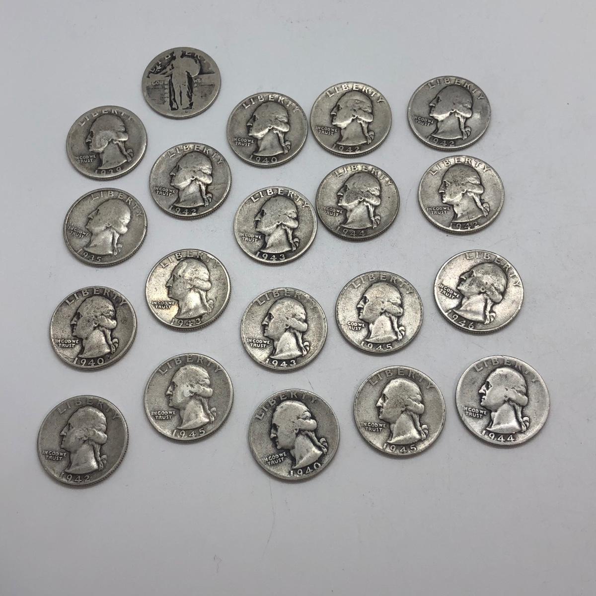 LOT 128: 18 US Quarters 90% Silver (1930s-40s) & Unreadable Standing Liberty Coin