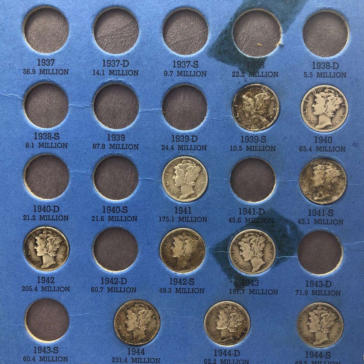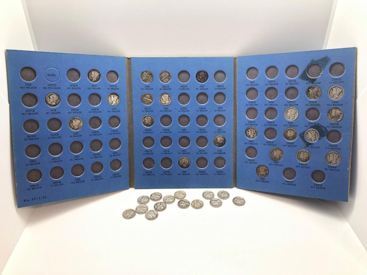 LOT 129: 1916-1945 Mercury Head Dimes w/ Collectors Book